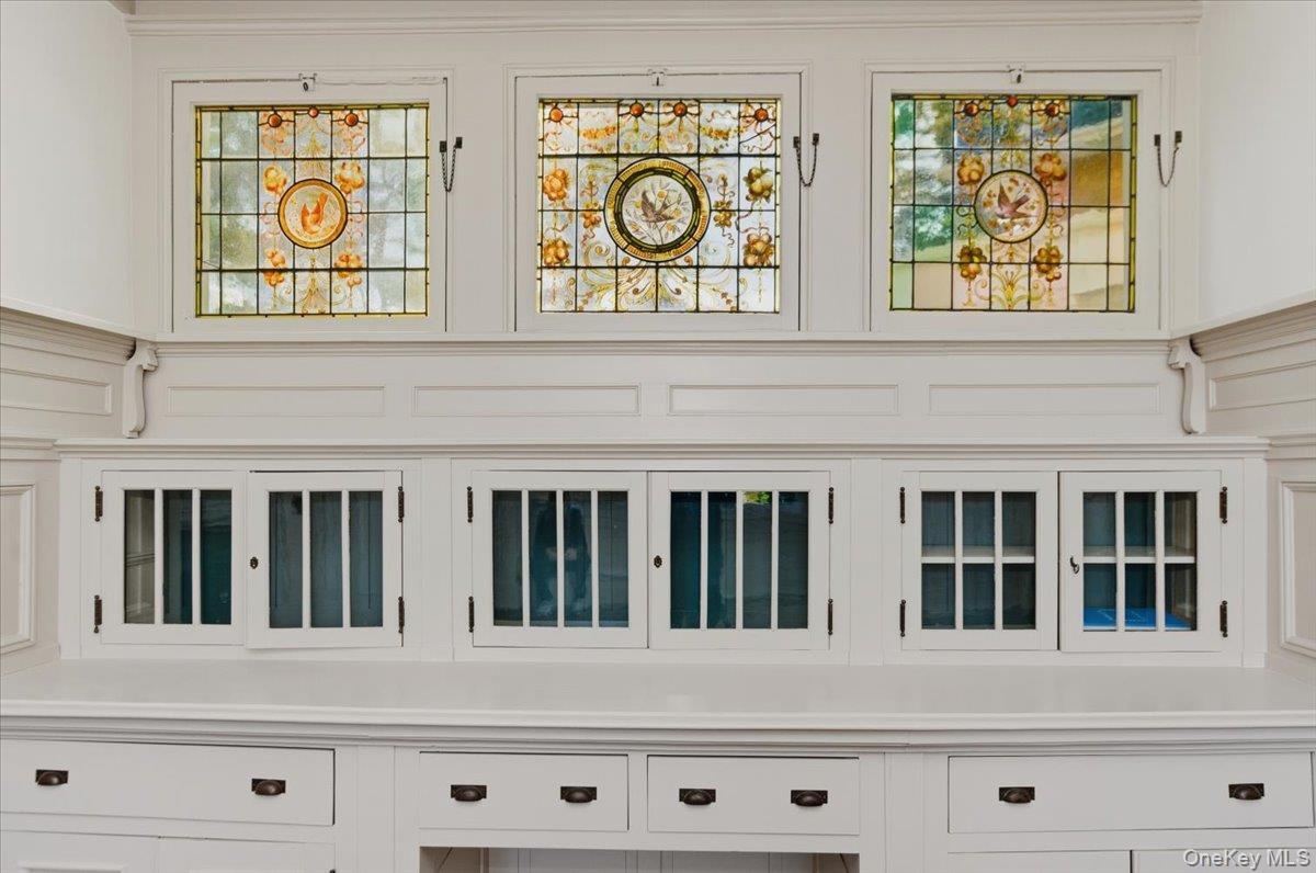 The main level features a front-to-back foyer with wood-burning fireplace, a custom kitchen with Montclair Danby marble, bespoke cabinetry, Wolf and Bosch stainless appliances, and access to both front and rear covered porches. A warm and inviting family room with fireplace, a banquet style dining room with original stained glass windows, fireplace, magnificent built-ins, woodworking, en-suite guest quarters, mudroom with laundry add both charm and function. The second floor offers a primary suite that truly impresses with a marble bath, soaking tub, double vanity, radiant heat and walk-in closet, plus three additional bedrooms, two with en-suite baths, as well as a second laundry room. A versatile third floor offers space for storage and so much more.