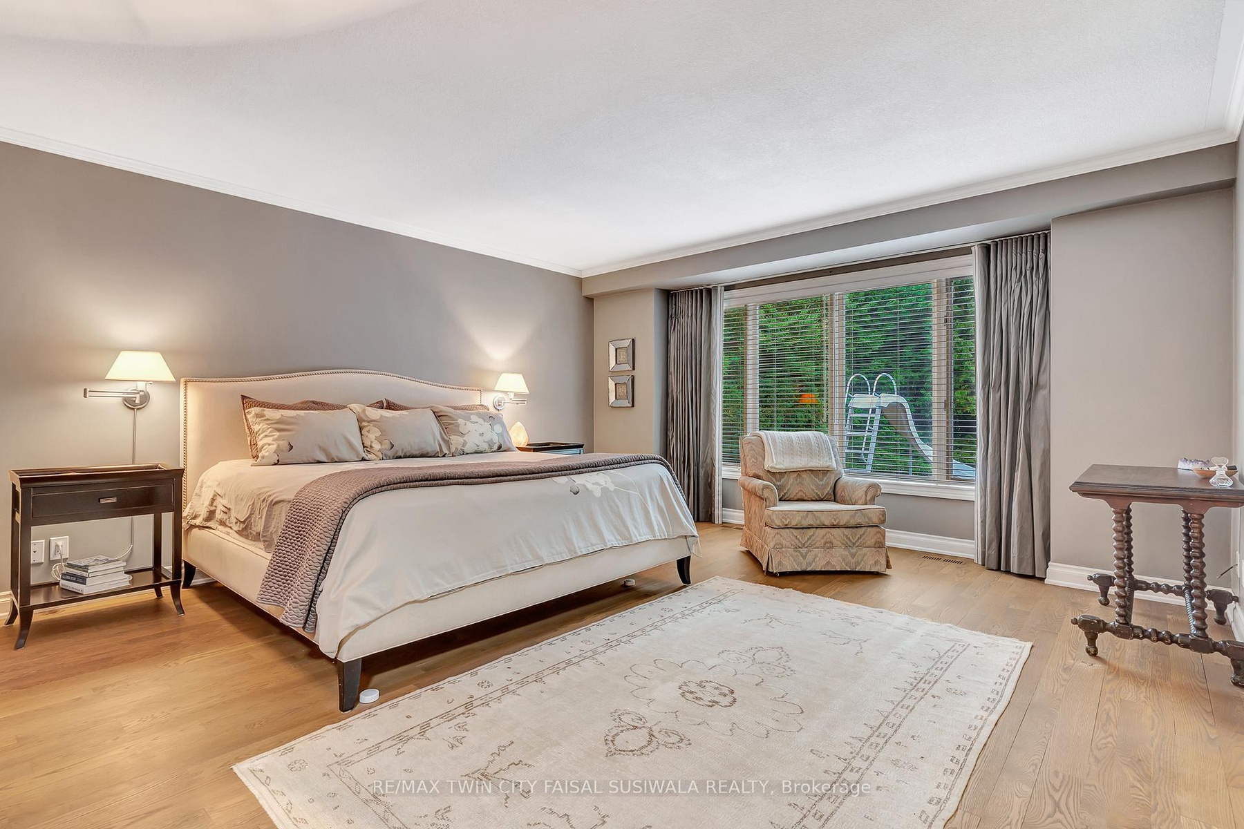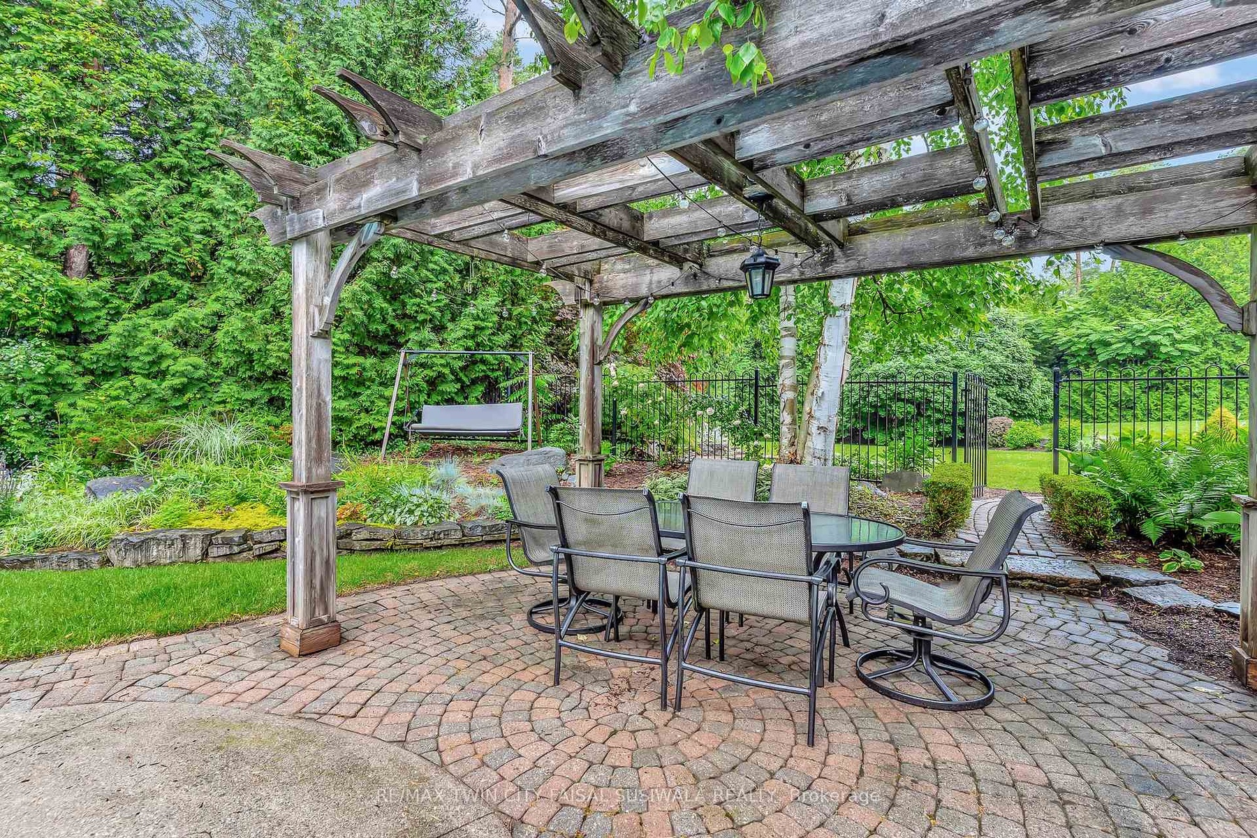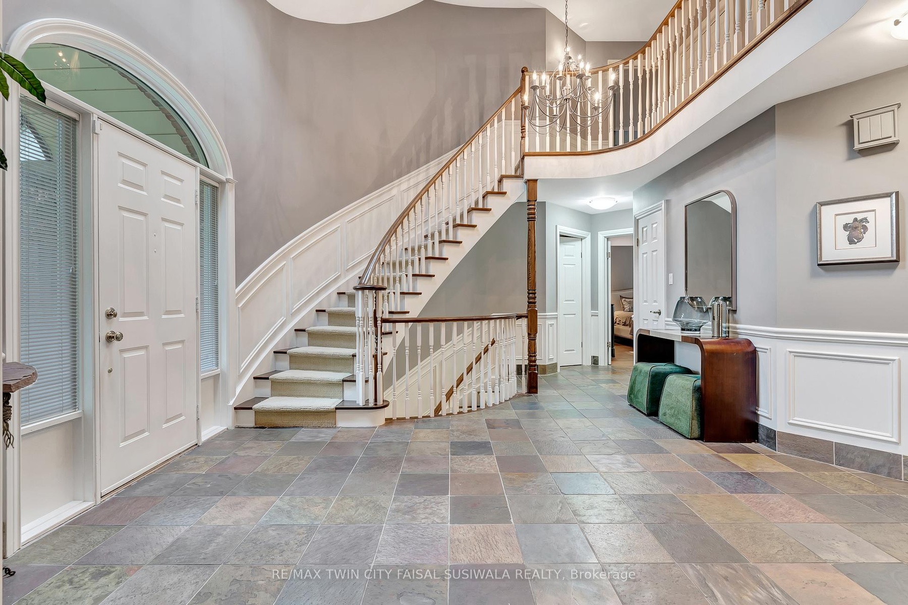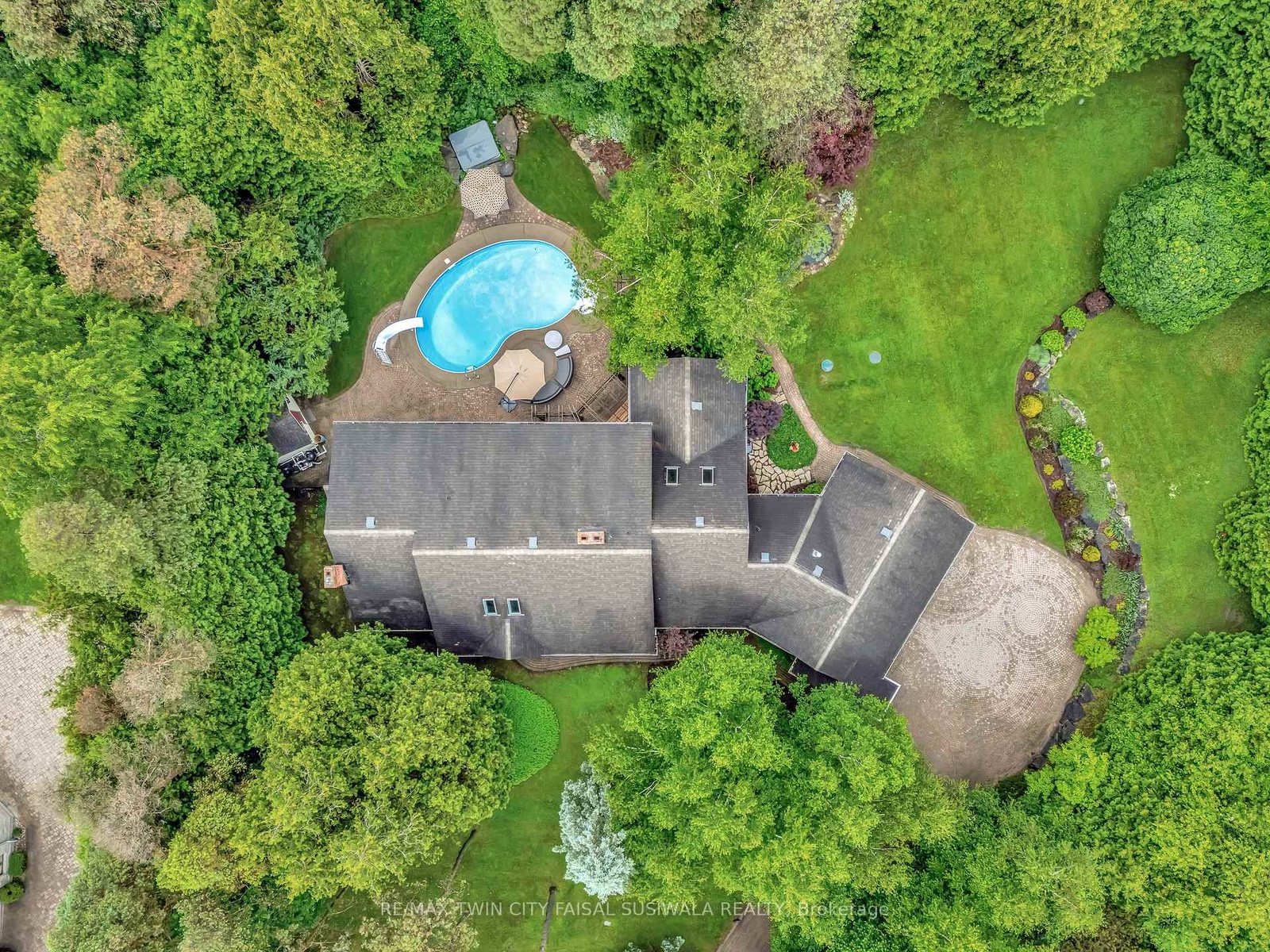PRIVATE ESTATE LIVING - 22 Deerpath Court, an extraordinary residence tucked away on a quiet cul-de-sac, surrounded by towering trees and beautifully landscaped grounds. Situated on 1.17 private acres, resort-like property, this custom home offers over 5,018 sq ft of living space across 3 meticulously designed levels. The long, rounded driveway flows effortlessly toward an impressive 3-car garage & inviting covered front porch. Step inside the grand foyer, where a sweeping staircase, slate floors, and intricate trim work set the tone for timeless elegance. To your right, the formal living room offers rich herringbone hardwood floors & a statement fireplace-perfect for hosting guests or quiet evenings by the fire. The heart of the home is the magazine-worthy kitchen, featuring custom cabinetry, luxury appliances, stone counters, and a butcher block island. The bright breakfast area & family room are wrapped in windows with incredible views of the backyard retreat. Sunlight pours into the bonus sitting room-an ideal space to curl up with a coffee and take in the peaceful, natural surroundings. The main floor also offers a private office with fireplace, a spacious formal dining room, & a luxurious primary suite with double walk-in closets & spa-like ensuite overlooking the pool. Upstairs, you'll find 3 generous bedrooms, 2 full bathrooms, & ample storage. The fully finished basement expands your living space with a rec room, bedroom, 3pc bathroom, and abundant storage, plus direct garage access-perfect for multi-generational living or future in-law potential. Step outside and discover your private oasis: an inground pool with slide, hot tub, lounging areas, and manicured gardens create the ultimate space for summer entertaining. This home truly combines luxury, privacy, and function in one of Cambridge's most desirable enclaves, just minutes to shopping, trails, golf, & highway access. Welcome to your forever home on Deerpath Court-where every day feels like a getaway.