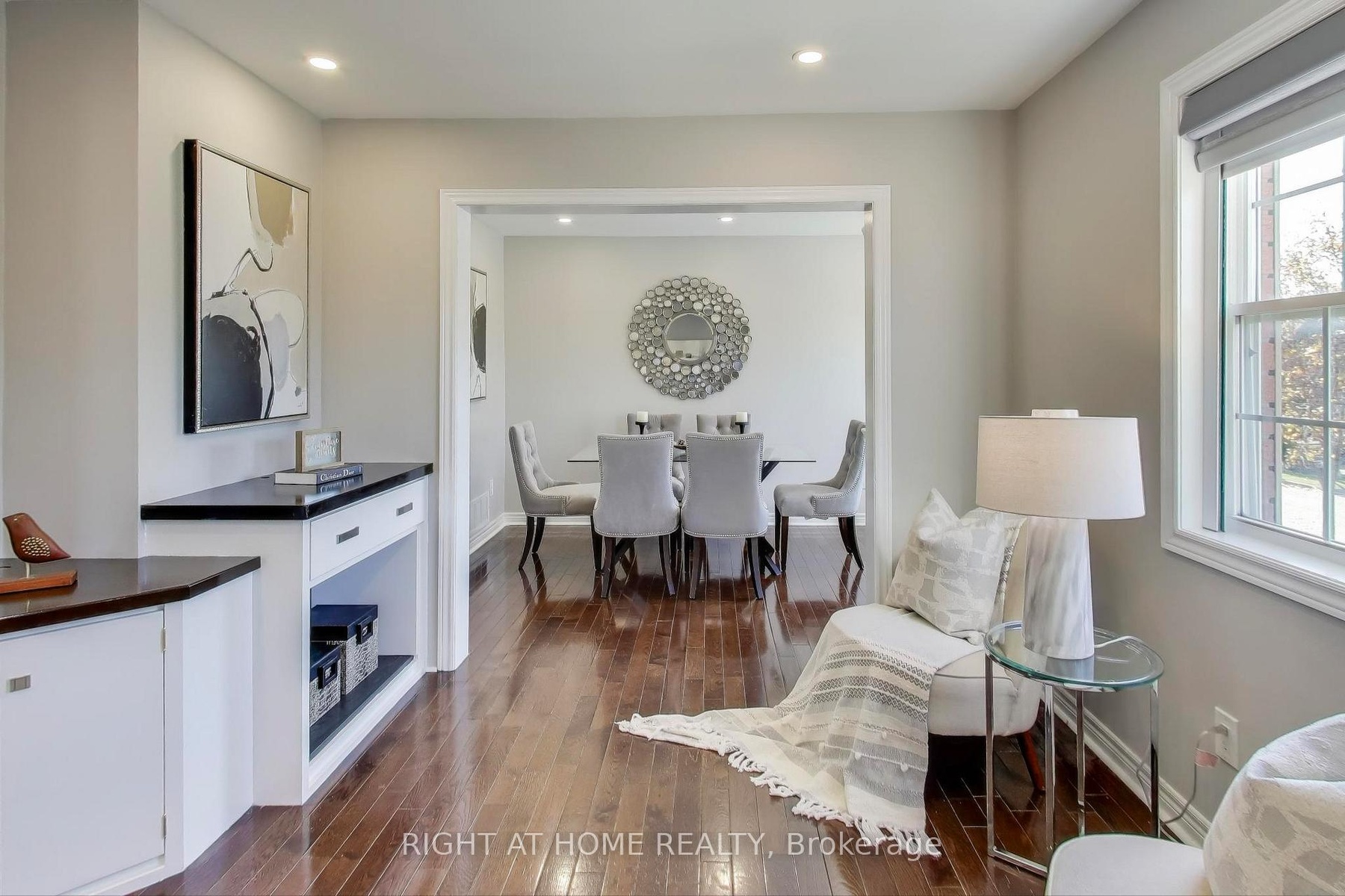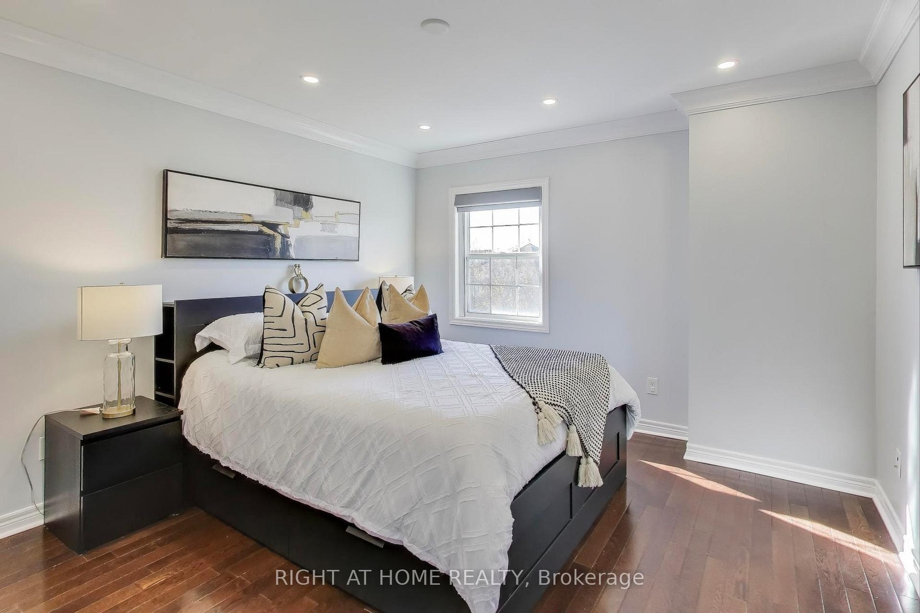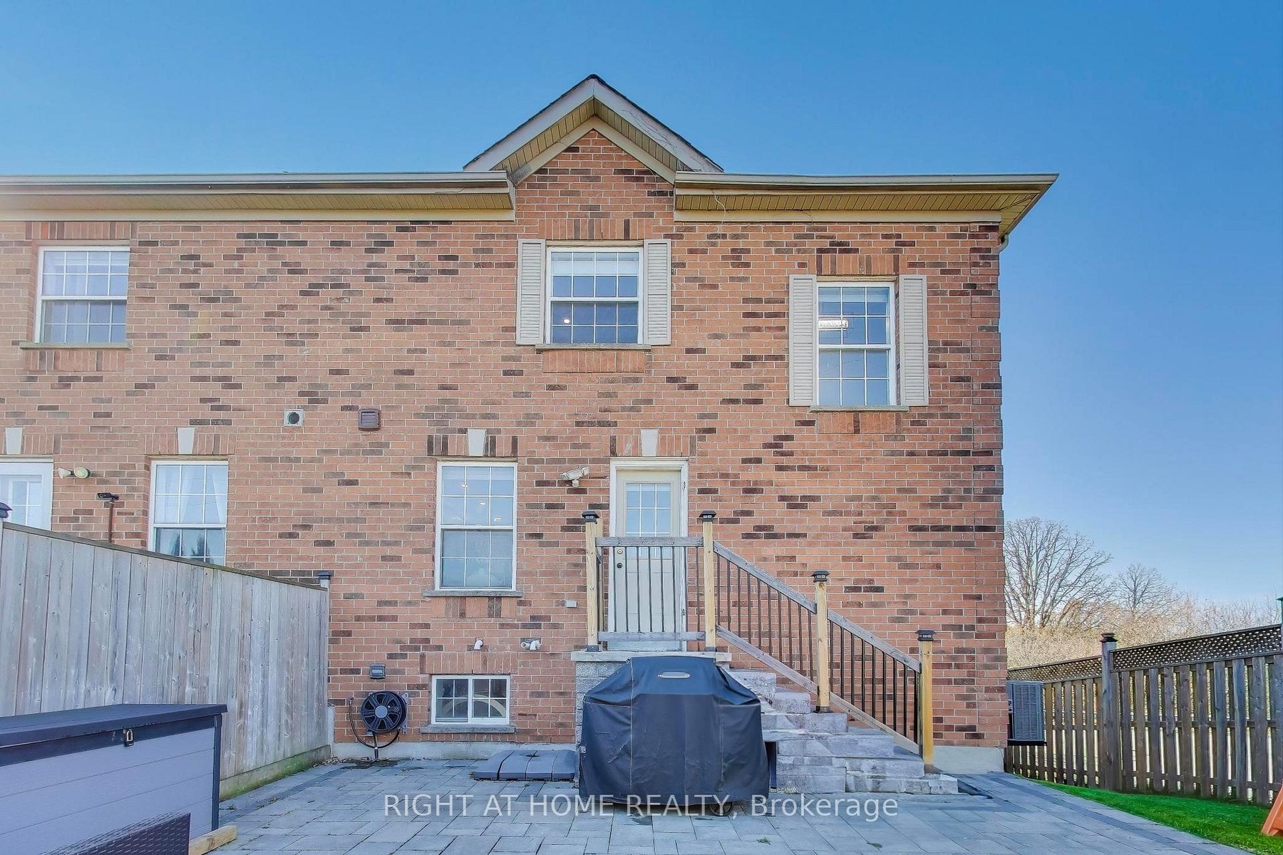 Stunning 3-Bedroom End-Unit Townhome Backing Onto Green Space in Sought-After Aurora Grove. Welcome to this beautifully maintained freehold end-unit townhome tucked away on a quiet, family-friendly cul-de-sac in the heart of Aurora Grove. Offering rare privacy with green-space views and only one neighbour, this home combines thoughtful upgrades with inviting natural light and an open, functional layout with Flat ceilings throughout and pot lights.Step inside to a bright and elegant main level, hardwood flooring, and a stylish living and dining area with custom built-ins - ideal for both everyday living and entertaining. The spacious eat-in kitchen overlooks the serene backyard and features stainless steel appliances, ample cabinetry, updated counters, and a walkout to your raised deck and private fenced yard.Upstairs, you'll find three generous bedrooms, including a relaxing primary suite complete with a walk-in closet and 3-piece ensuite. Additional bedrooms offer charming treed views and flexible space for family, guests, or a nursery/home office.A lower-level bonus room provides a perfect work-from-home nook, play area, or fitness space, plus a large laundry room with extra storage. Retractable stairs lead to a spacious finished attic loft - a unique feature offering exceptional storage or a fun hideaway space.Outdoor living shines here with a private backyard, side-yard access, garden shed, and parking for two vehicles plus a direct-entry garage.