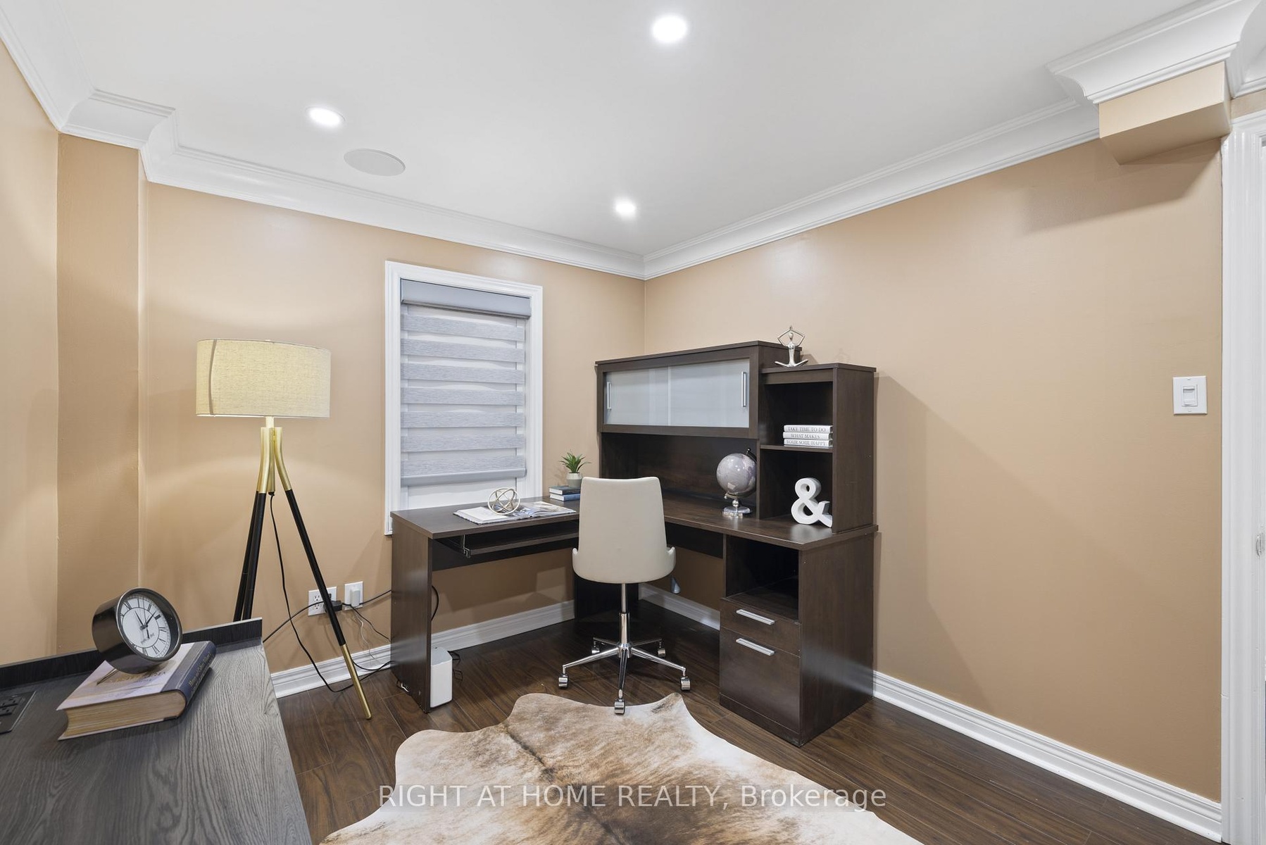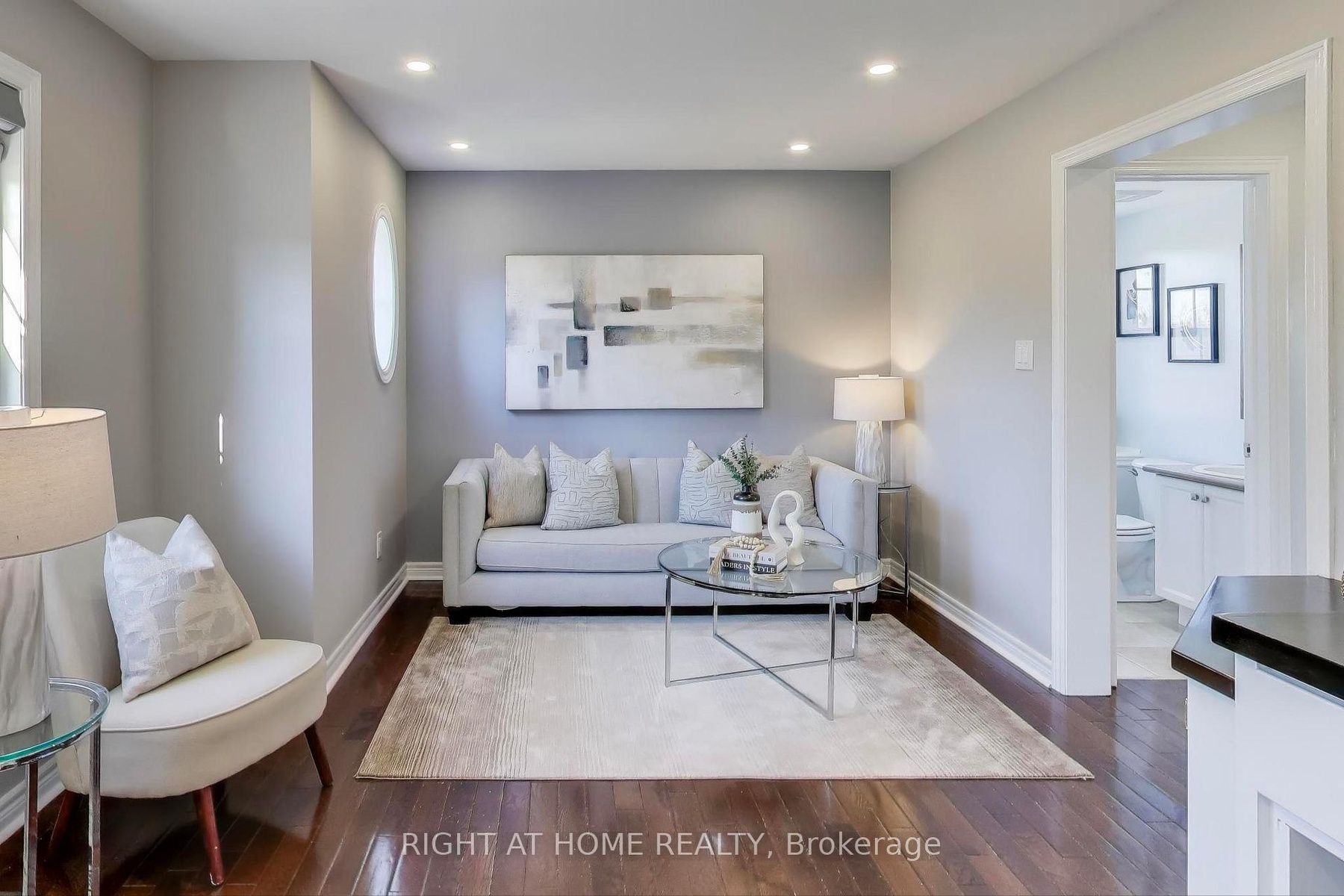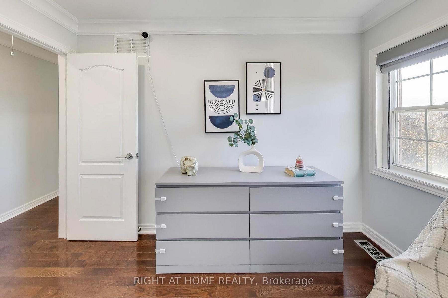 Stunning 3-Bedroom End-Unit Townhome Backing Onto Green Space in Sought-After Aurora Grove. Welcome to this beautifully maintained freehold end-unit townhome tucked away on a quiet, family-friendly cul-de-sac in the heart of Aurora Grove. Offering rare privacy with green-space views and only one neighbour, this home combines thoughtful upgrades with inviting natural light and an open, functional layout with Flat ceilings throughout and pot lights.Step inside to a bright and elegant main level, hardwood flooring, and a stylish living and dining area with custom built-ins - ideal for both everyday living and entertaining. The spacious eat-in kitchen overlooks the serene backyard and features stainless steel appliances, ample cabinetry, updated counters, and a walkout to your raised deck and private fenced yard.Upstairs, you'll find three generous bedrooms, including a relaxing primary suite complete with a walk-in closet and 3-piece ensuite. Additional bedrooms offer charming treed views and flexible space for family, guests, or a nursery/home office.A lower-level bonus room provides a perfect work-from-home nook, play area, or fitness space, plus a large laundry room with extra storage. Retractable stairs lead to a spacious finished attic loft - a unique feature offering exceptional storage or a fun hideaway space.Outdoor living shines here with a private backyard, side-yard access, garden shed, and parking for two vehicles plus a direct-entry garage.