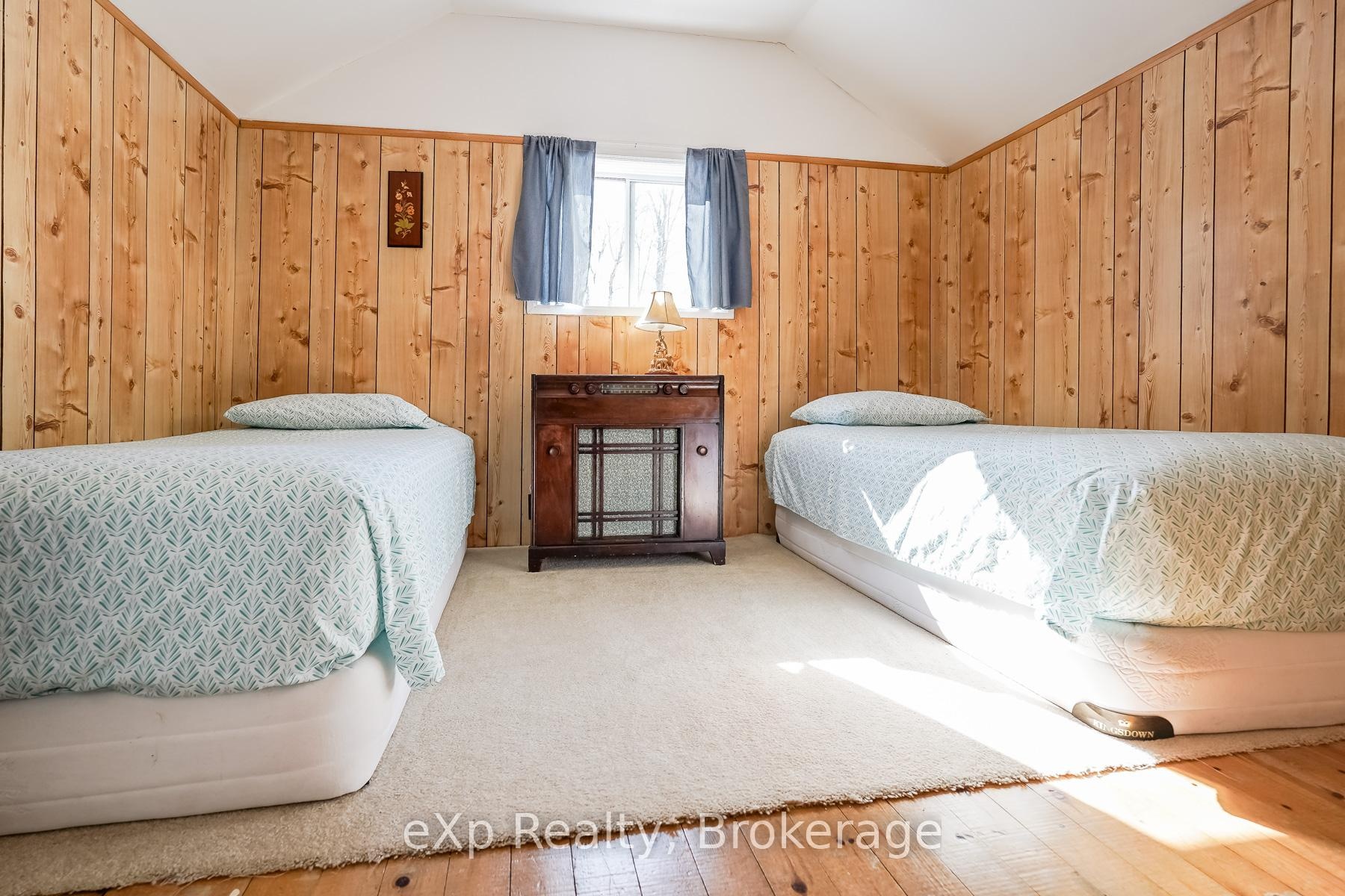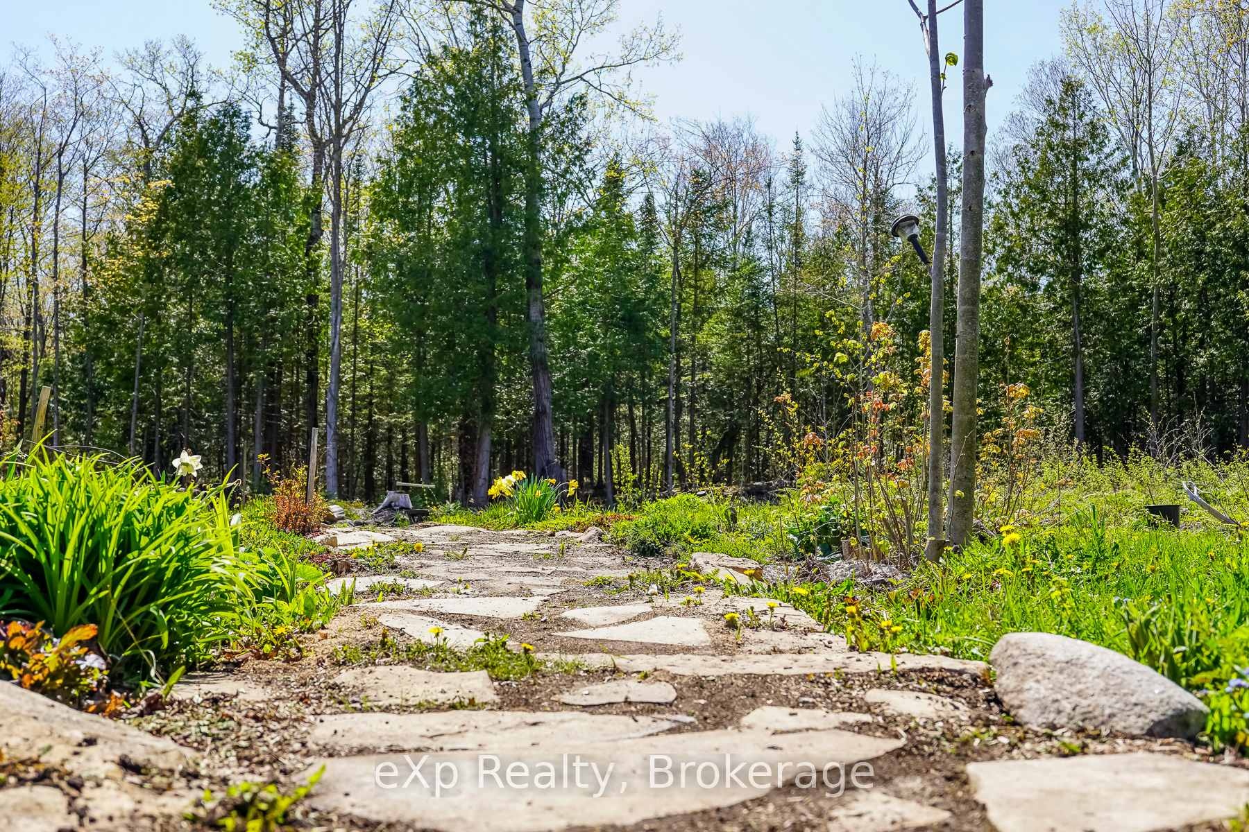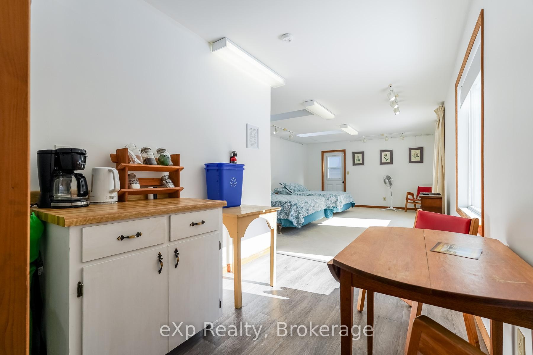 Live and Earn on 10 Private Acres on the Bruce Peninsula. Tucked into a quiet, wooded 10-acre lot is a striking log home, warm, light-filled, and beautifully maintained. The great room with cathedral ceilings and a stone fireplace is flanked by two sunrooms with skylights and flagstone floors. The handsome kitchen is modern and spacious with a large island and plenty of natural light. There's a main floor bedroom and full bath, with two more bedrooms upstairs, one with its own balcony, and another full bath. Altogether, a gorgeous home on landscaped grounds surrounded by woods. Set well apart from the house is a separate rental building, a converted bungalow with three fully independent units. One is a two-bedroom 'cottage' with full eat-in kitchen and large living area. The other two are efficient, open-concept guest suites, each with coffee bar, dining area, two queen beds, and their own private bath. All units are clean, bright, and sold fully furnished. Located just off Hwy 6 in a prime tourism area known for hiking, beaches, and Georgian Bay access. A smart setup for anyone looking to run a business from home while enjoying the beauty of the Bruce. Just a short drive to Wiarton and its amenities including shopping, restaurants, hospital, and school.