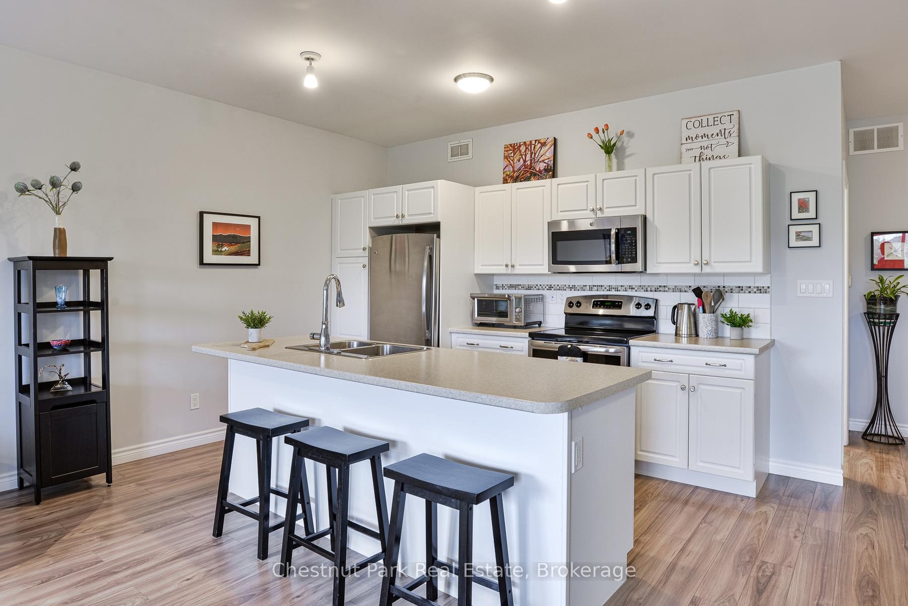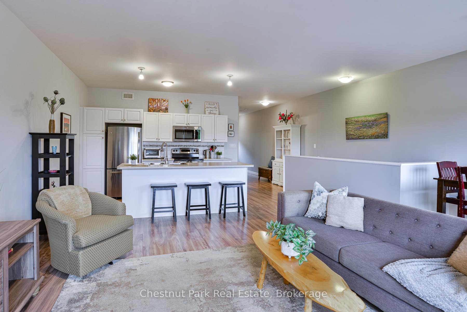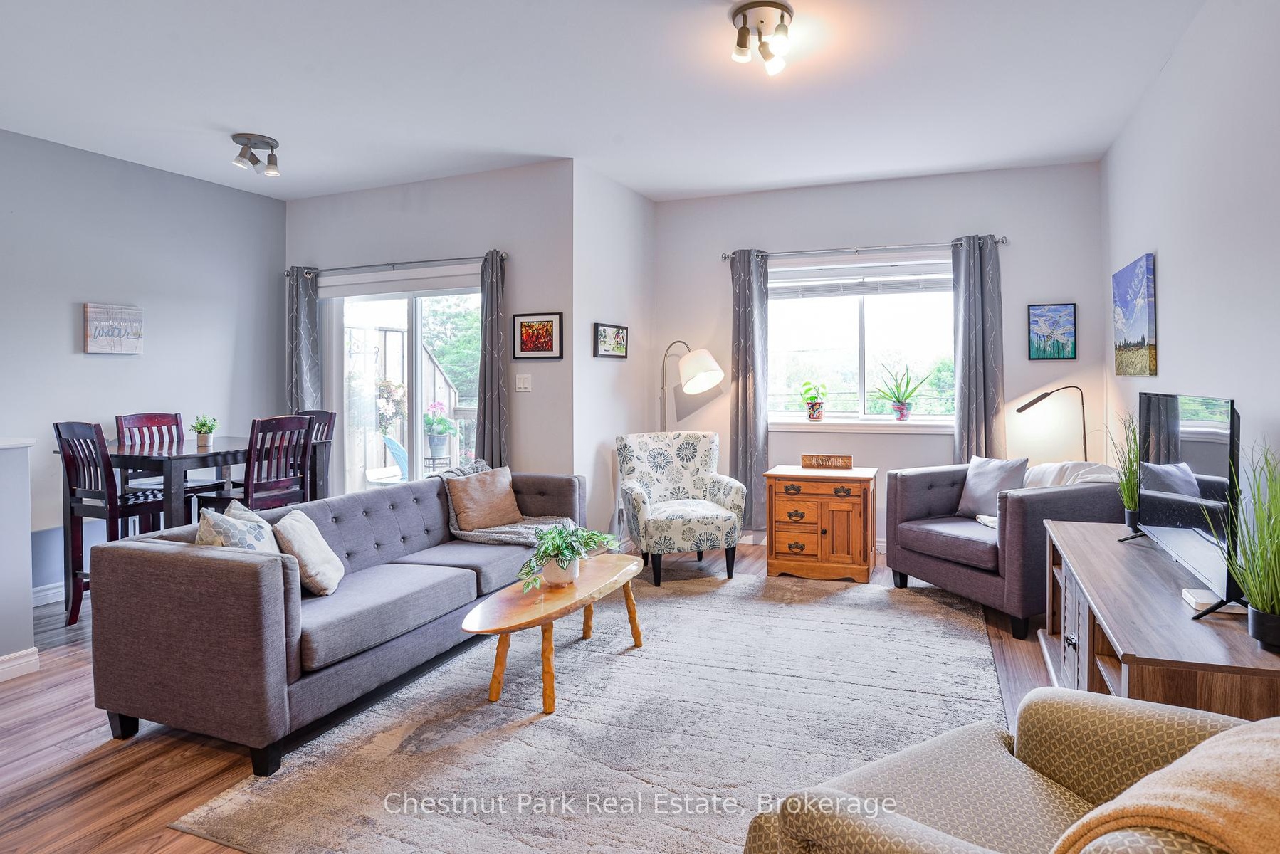 MOVE-IN READY TOWNHOME, located close to downtown Huntsville, offers the perfect mix of MUSKOKA CHARM, modern comfort, and everyday CONVENIENCE. Enjoy picturesque WATERFRONT VIEWS of Hunters Bay in this unbeatable location - just a short walk to Avery Beach and the Hunters Bay Trail - its so easy to enjoy the best of both nature and edge of town living. Inside, the home features a thoughtful layout with a bright and spacious 2-bedroom, 1-bath arrangement on the main floor, complemented by an additional bedroom with ensuite bathroom upstairs. The flexible floor plan works beautifully for families, first-time buyers, or those looking to downsize into a low-maintenance space without sacrificing comfort. Built with ICF construction for lasting durability and energy efficiency, the home has been well maintained and clearly cared for. The backyard has been transformed into a charming garden space, fully fenced for privacy, and perfect for outdoor enjoyment along with dedicated space for cultivating your own vegetables and flowers. Additional conveniences include on-site parking to accommodate 2 vehicles for extended family and friends (or renters if desired), plus the garage for inside parking and extra storage, all in a location that makes everyday errands and recreation effortless. From leisurely walks along the Hunters Bay Trail to evenings by the water, this property places you right at the centre of it all. With its rare combination of prime location, versatile layout, and low-maintenance lifestyle, this Main Street townhouse is an excellent choice for buyers seeking a home, a Muskoka retreat, or a smart investment in one of the regions most desirable communities. Call today for more information or to book your private tour of this absolute gem. Flexible closing available.