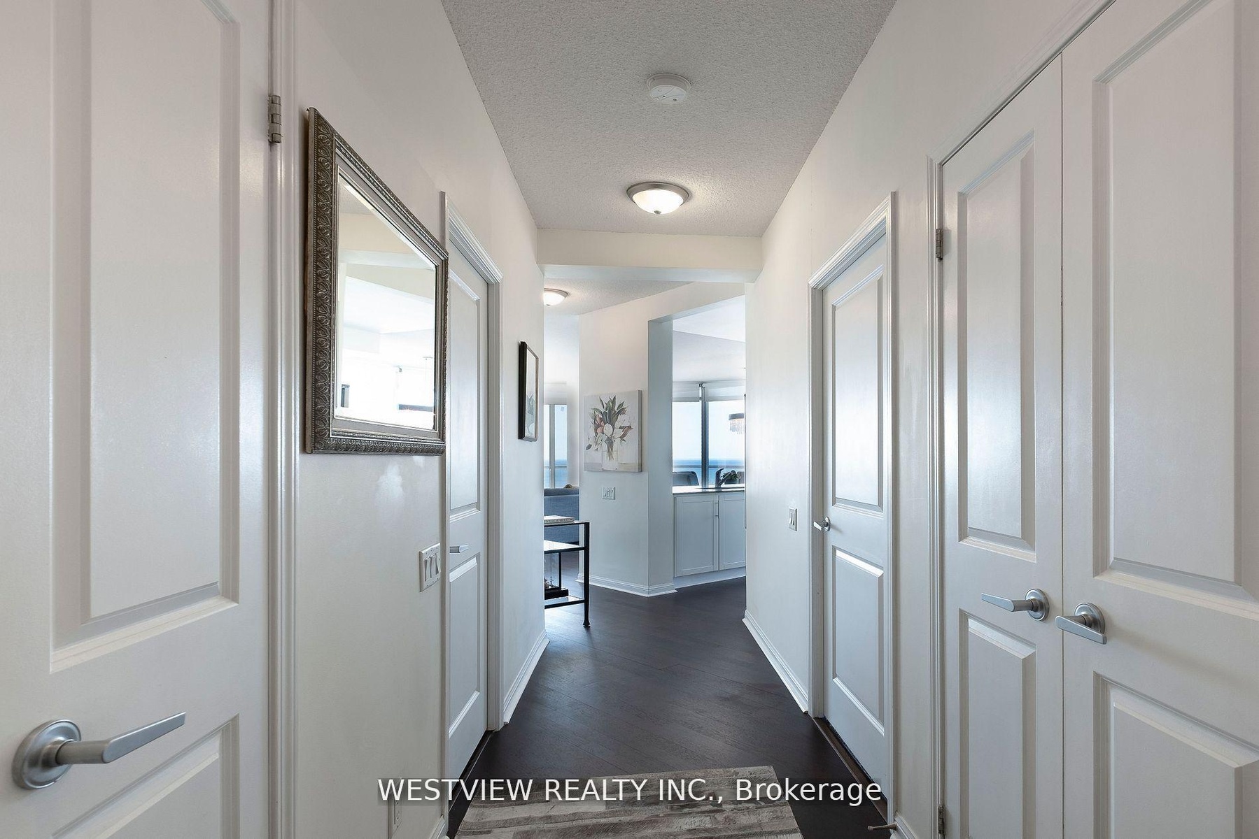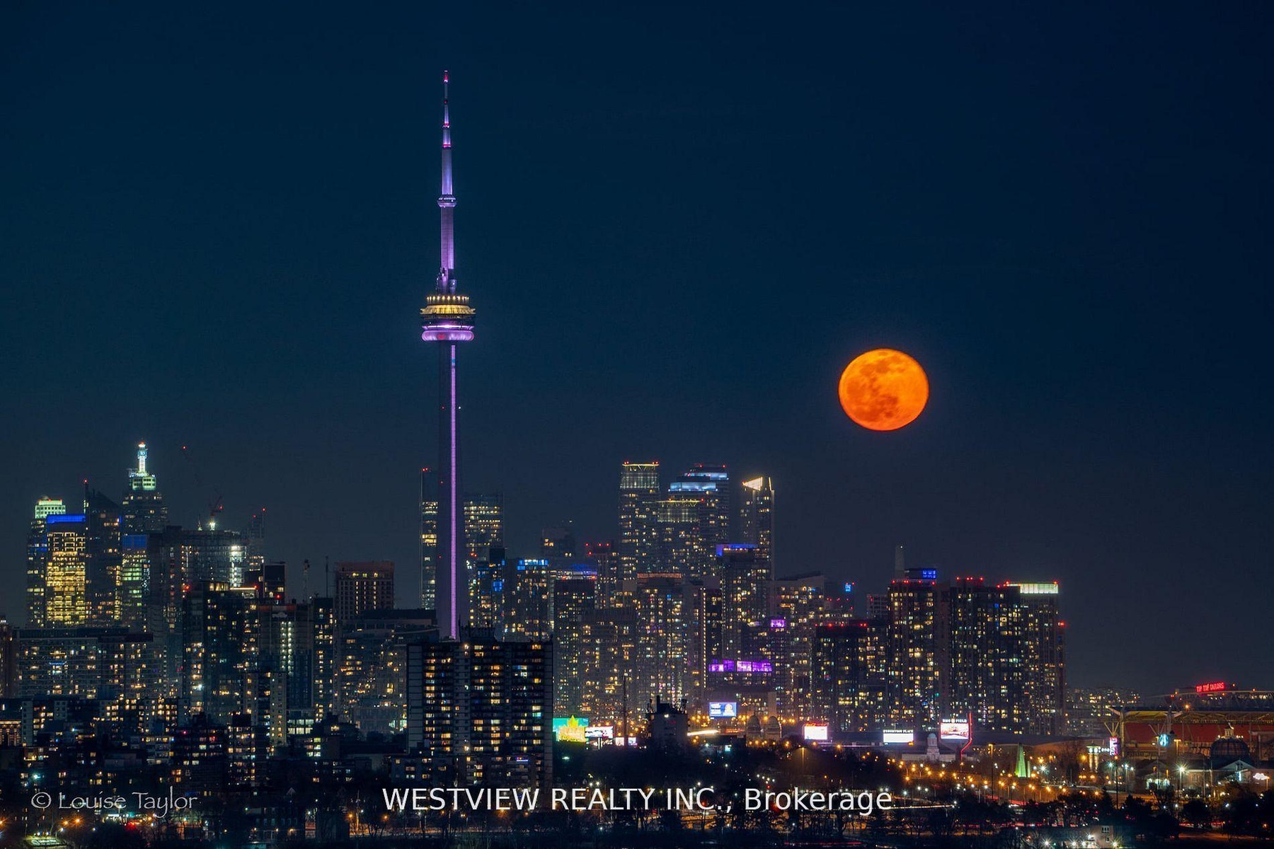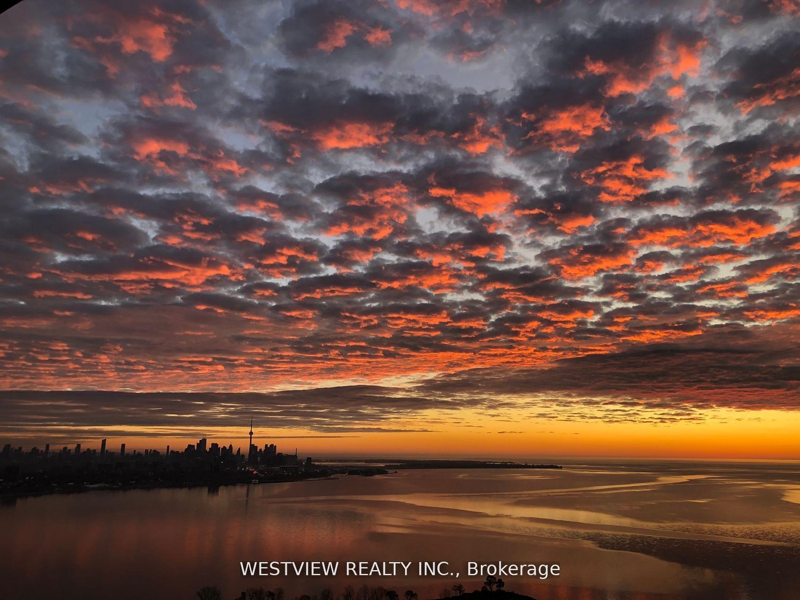 Good morning, Good afternoon & Good evening! That is what you can expect from this sun drenched two bedroom plus den waterfront gem, two floors from the top. Spanning over 1100 sqft of luxurious living space, offering very rare 270 degrees of stunning panoramic views. From the picturesque downtown skyline extending to Humber Bay, Grenadier pond and beyond. Enjoy both the colourful sunrises & sunsets along with watching planes come and go from both airports at a distance. All of which can be managed with your custom automated blinds. This is a Beautifully appointed condo, with post card views from all principal rooms. The modern kitchen features a large breakfast bar that overlooks the spacious living area & bright blue water of the lake. The bright den (potential office space) fit for any executive, features wrap around windows overlooking the Toronto downtown city-skyline as well as the lake to the west. Living in "Windermere By The Lake" you will be within steps to the miles of waterfront walking/ biking paths, High Park, Roncesvalles, Bloor West village, shopping, public transit & many more amenities. Building maint fee is all inclusive of utilities. New Electric vehicle charging station has also been installed for your parking spot, for your convenience, storage locker on 2nd floor. You will look forward to coming home here!
