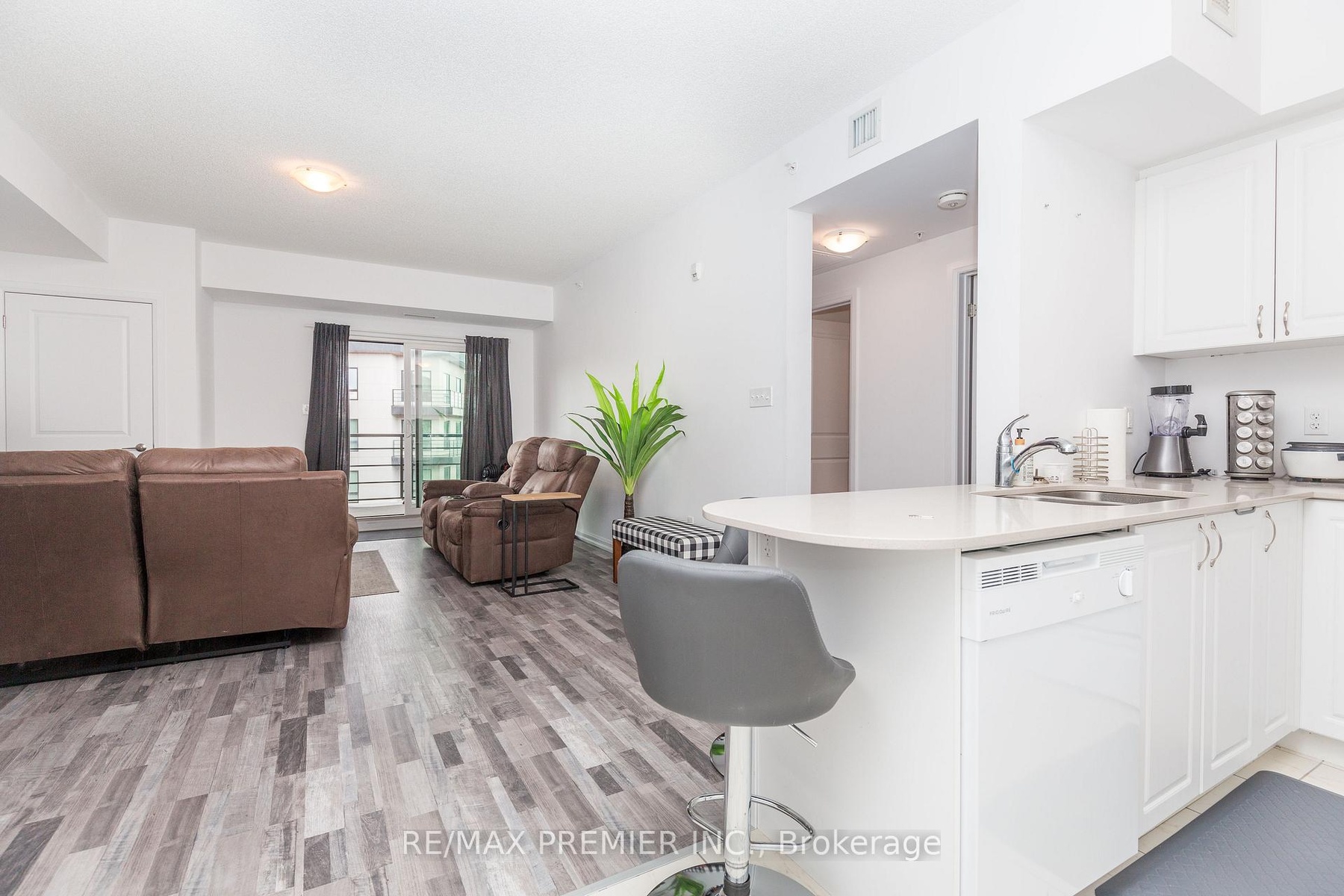 Welcome To The Gallery Condominiums In The Heart Of Barrie! Centrally Located And Right Beside The Highway 400 - The Location Of This Unit Is Unparalleled! Rarely Offered Oversized 1 Bedroom + 1 Den Unit Features Over 800+ Square Feet Of Living Space. The Open Concept Living Room Has A Beautiful Walk Out To A Large Balcony That Allows For Bbq's. Walking Distance To Trails And Amenities! Primary Bedroom Features A Double Closet For Ample Storage Space - Ensuite Stackable Washer And Dryer, Generously Sized Parking Spot And Locker Included!