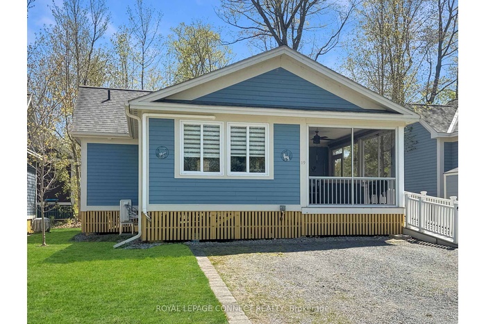 Bright, Accessible Cottage with Sunset Views on East Lake! Welcome to 19 Farm View Lane, a beautiful Milford model cottage in the peaceful Woodlands area of East Lake Shores-an inviting seasonal, gated waterfront community on East Lake in Prince Edward County. This 2-bedroom, 2-bath layout is perfect for hosting family and friends, with bedrooms on opposite sides of the living space for extra privacy. The main bedroom features a 2-piece ensuite, while the second bedroom includes in-suite laundry, plus a nearby 3-piece bath with a walk-in shower.Enjoy west-facing sunsets from the large screened porch, complete with ceiling fan and roll-down shades-perfect for summer evenings. The cottage is wheelchair accessible, with a front ramp and walk-in shower, and climate-controlled with a 3-head heat pump for efficient heating and cooling. The open kitchen, dining, and living area feels bright and inviting, featuring a cathedral ceiling and plenty of natural light. Freshly painted and fully furnished, the cottage is move-in ready. Additional features include a storage shed, two-car private parking, and an EV charger so you can plug in and explore the County. Ideally located steps from the beach and East Lake, and a short walk to the adult pool, gym, Owner's Lodge, and lakeside patio deck.East Lake Shores offers 80 acres of park-like grounds, 1,500 feet of shoreline, two pools, sports courts, playground, dog park, trails, and free use of canoes, kayaks, and paddleboards. A full calendar of activities-yoga, aquafit, live music, crafts, and more-makes it easy to connect and unwind. Open April-October. Monthly condo fees of $669.70 include TV, internet, water, sewer, maintenance, snow removal, and amenities. You own both the cottage and the land. Rentals optional-join the on-site corporate program or manage your own.19 Farm View Lane is a low-maintenance County escape designed for easy living and relaxed summer days, complete with beautiful sunset views over East Lake.