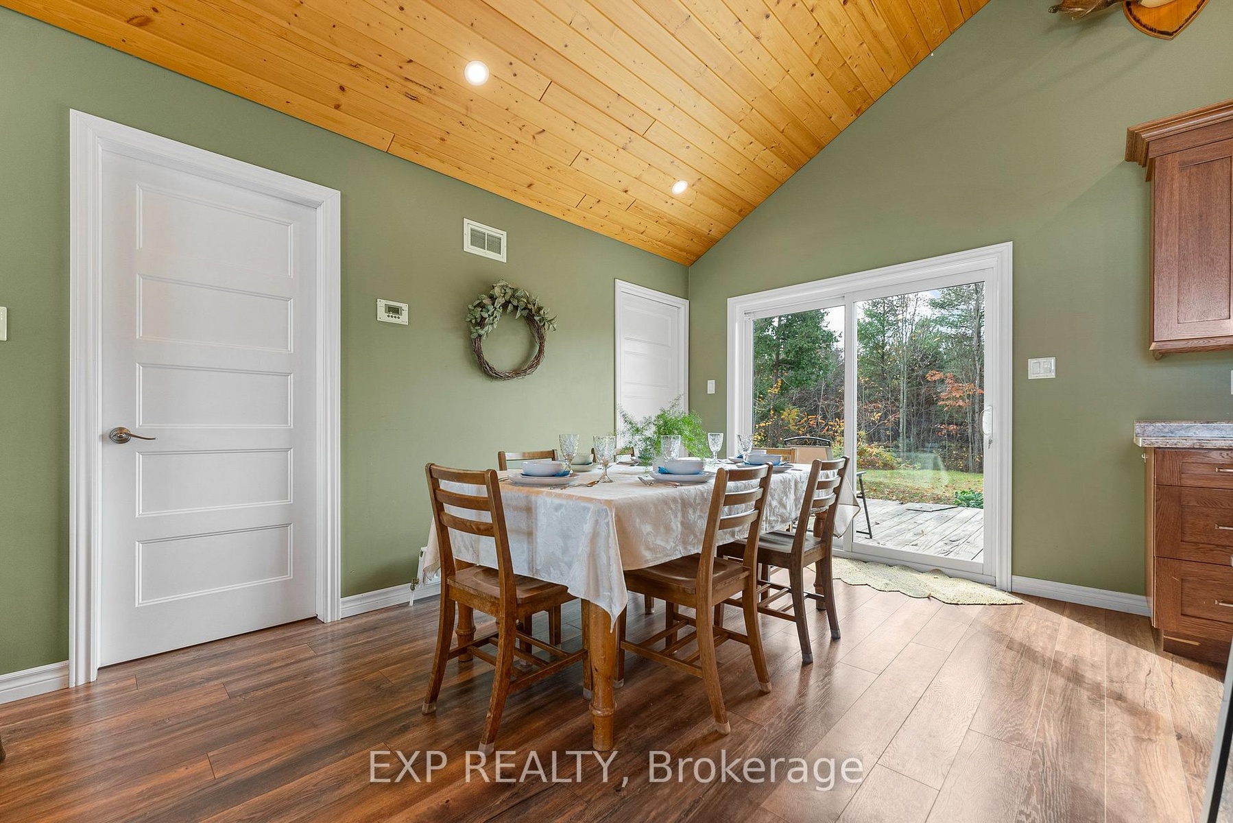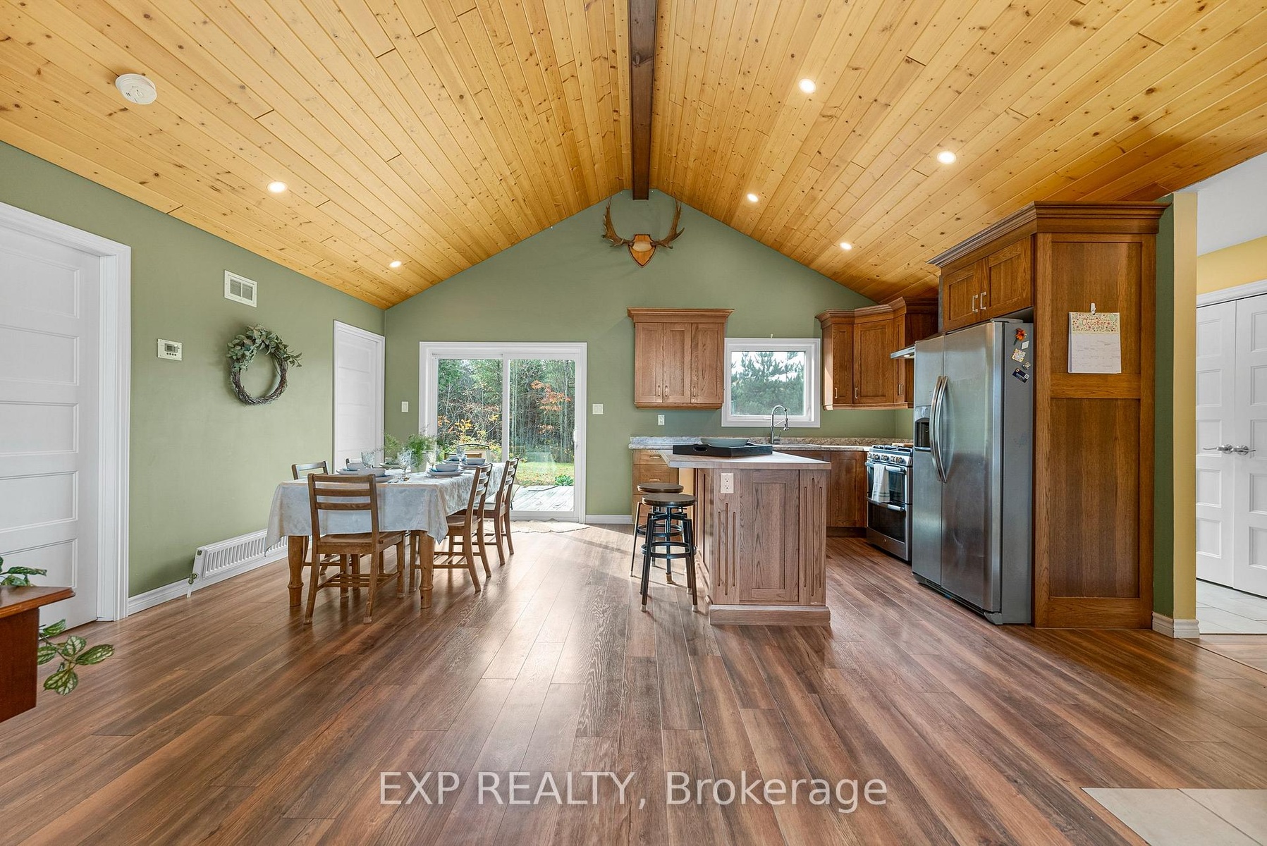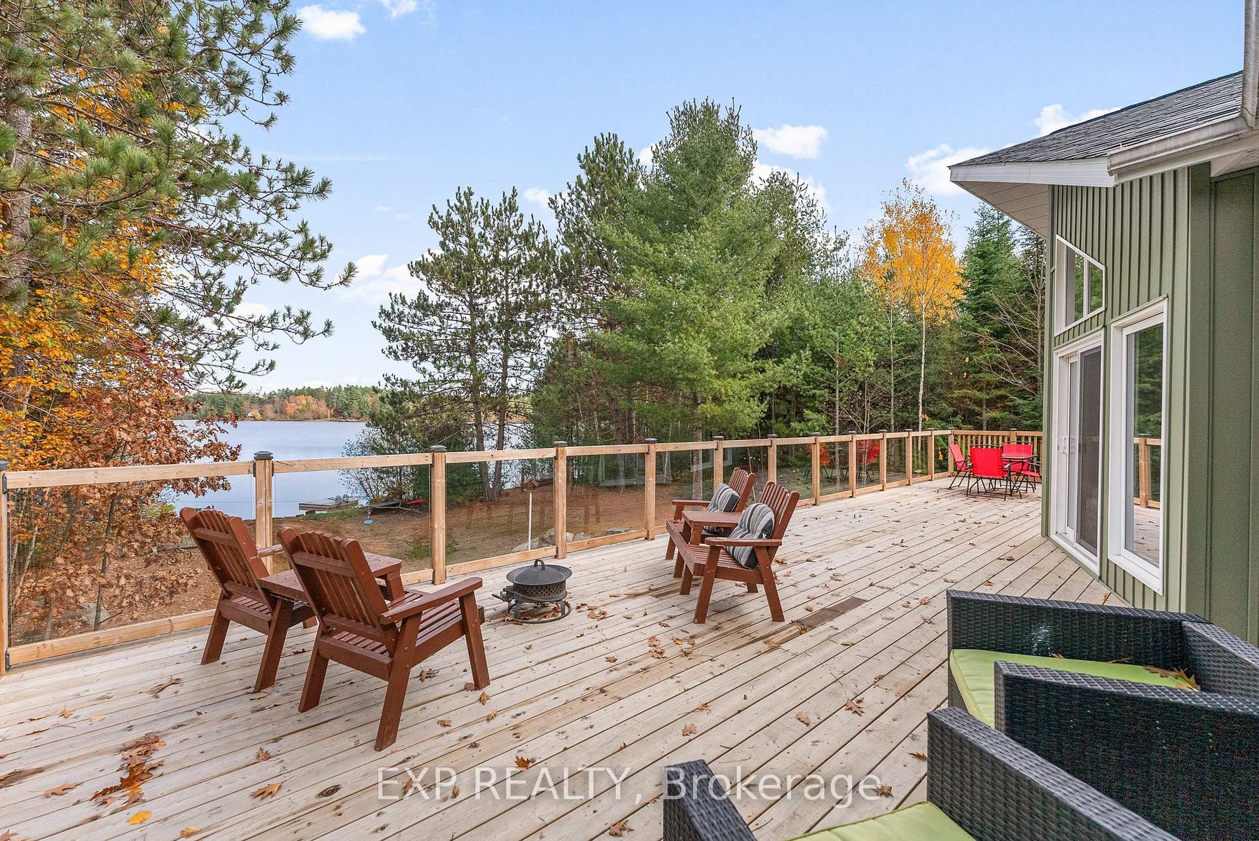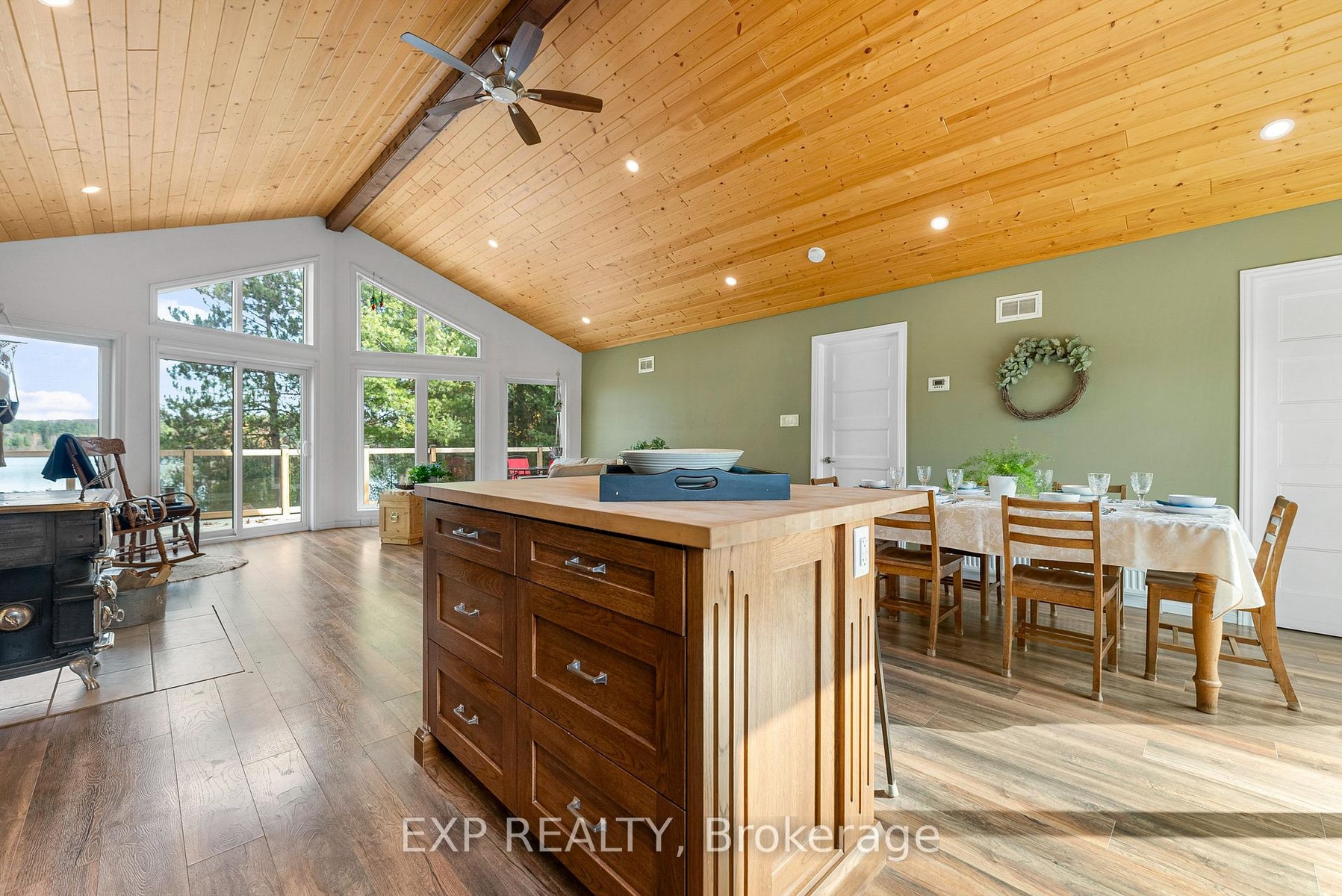 Newly built in 2019, 79 Warbler Way offers the perfect blend of comfort, craftsmanship, and natural beauty. This quiet oasis sits along the scenic shores of the Madawaska River, part of the sought-after Kamaniskeg Lake system offering over 90 km of boating, dining, and exploring opportunities.Step inside this 4-bedroom, 1.5-bath home and experience open-concept living at its finest. The vaulted ceilings, custom walnut kitchen with island, and timeless wood fire cookstove create a warm and inviting space filled with natural light. Walk out onto the sprawling deck and take in the tranquil waterfront views-ideal for morning coffee or evening sunsets. The primary bedroom features a convenient ensuite, already roughed-in for a shower of your choice. The main floor also offers laundry facilities, two additional bedrooms, and radiant heating for year-round comfort.The lower level, with towering ceilings and in-floor heat, doesn't feel like a basement. It includes a large recreation area with a walkout to the waterfront, a fourth bedroom, and a plumbed bathroom ready for your finishing touches.This home is off-grid solar powered with generator backup and the option to connect to hydro. Heating is provided by an outdoor wood furnace, supplemented by propane for efficiency. Beautiful landscaping leads to a sandy beach with a gentle slope into the water-perfect for swimming and family fun.To make this opportunity even better, the sale includes an additional vacant lot (MLS #X12499588), offering space to expand, build, or simply enjoy as a private buffer. Whether you're seeking a peaceful retreat or an active lifestyle on the water, 79 Warbler Way delivers it all.