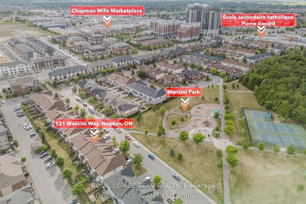Welcome to 121 Mancini Way, a beautifully maintained 3-bedroom, 2.5-bath home nestled in the heart of Barrhaven, directly facing a peaceful park and just minutes from Barrhaven Marketplace, top-rated schools, and public transit. This bright and inviting home features an open-concept main floor with hardwood flooring in the living and dining areas, and a well-designed kitchen with ample cabinetry and a cozy breakfast nook. Upstairs, you'll find a spacious primary bedroom with a walk-in closet and private ensuite, along with two additional bedrooms and a full main bath. The fully finished basement offers a versatile recreation space perfect for relaxing, entertaining, or working from home. With a partially fenced backyard and beautiful views of the park, this home offers the perfect balance of nature and convenience in one of Barrhaven's most desirable neighbourhoods. Book your showing today!
