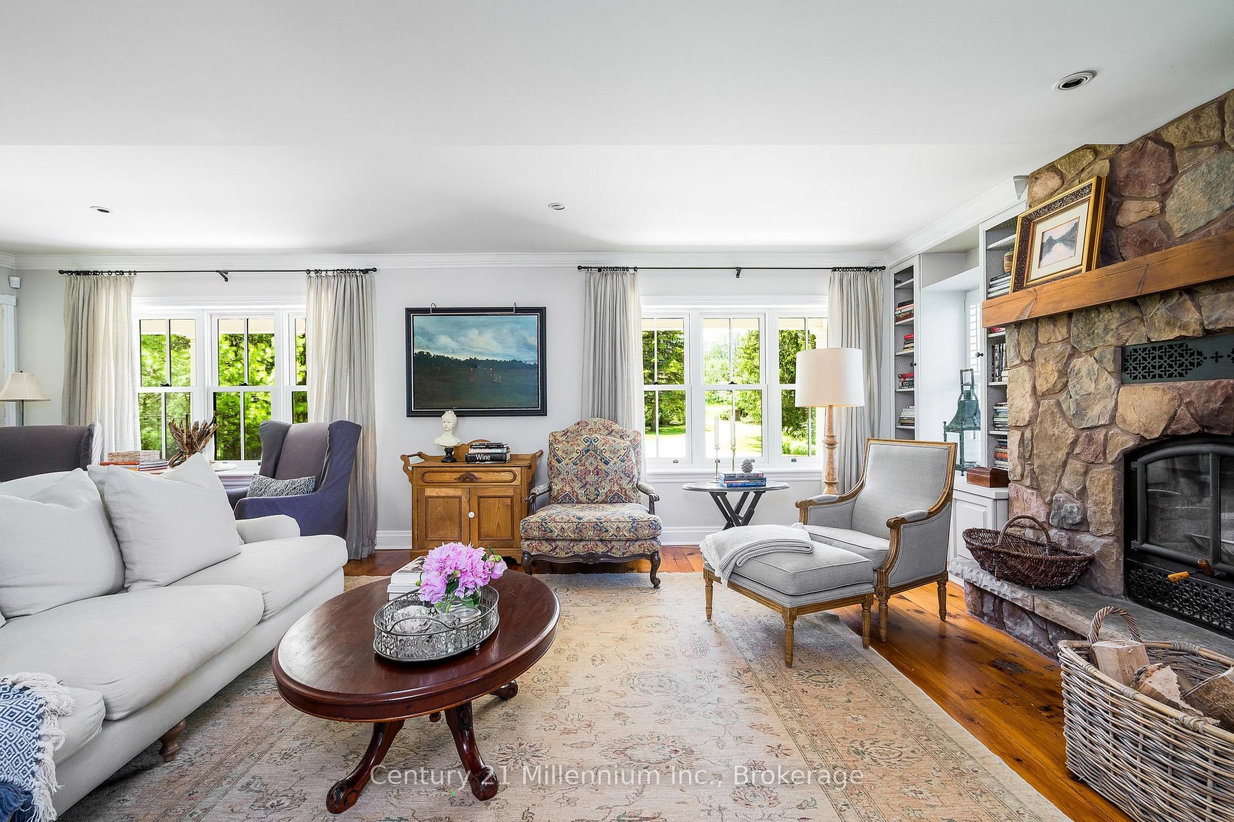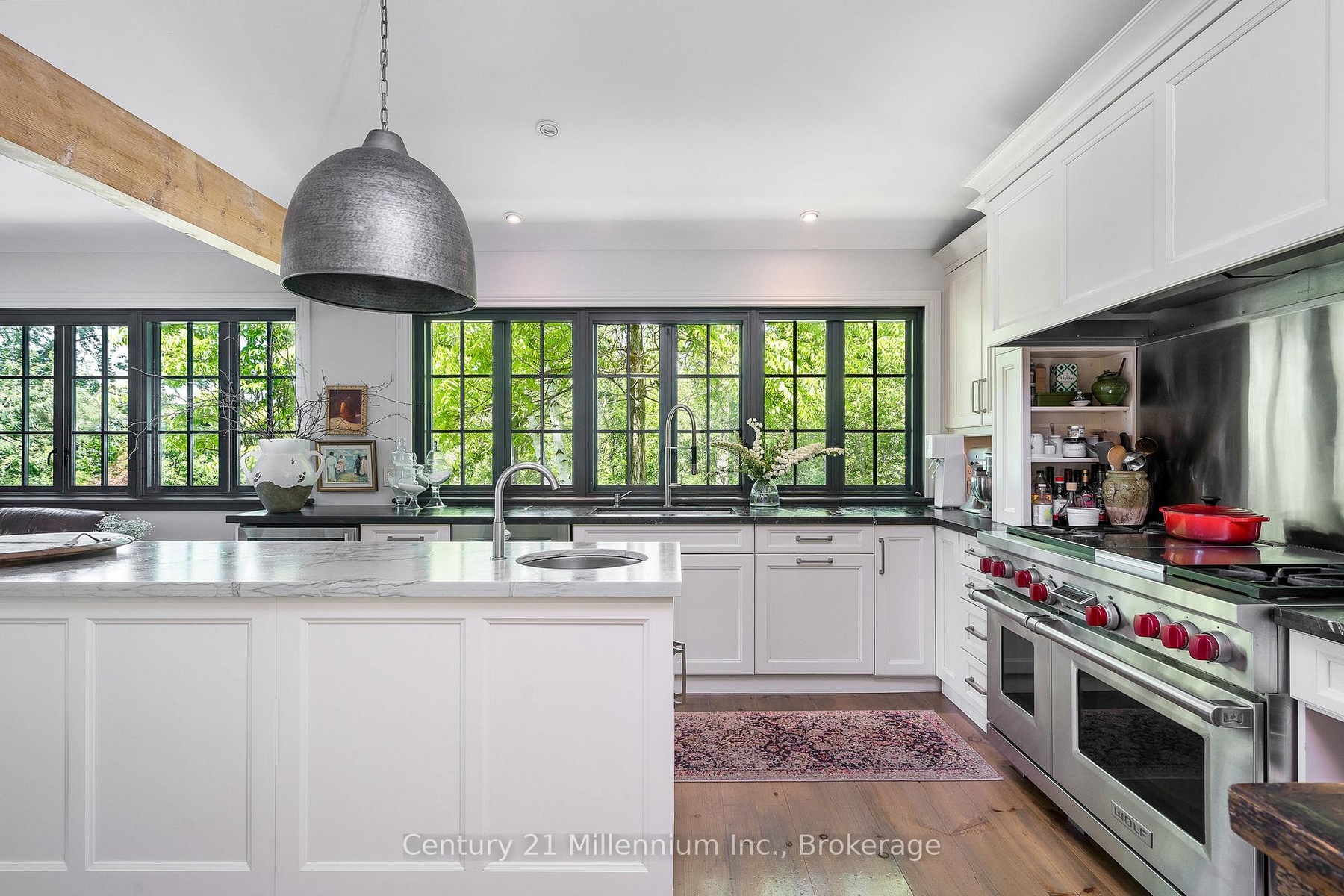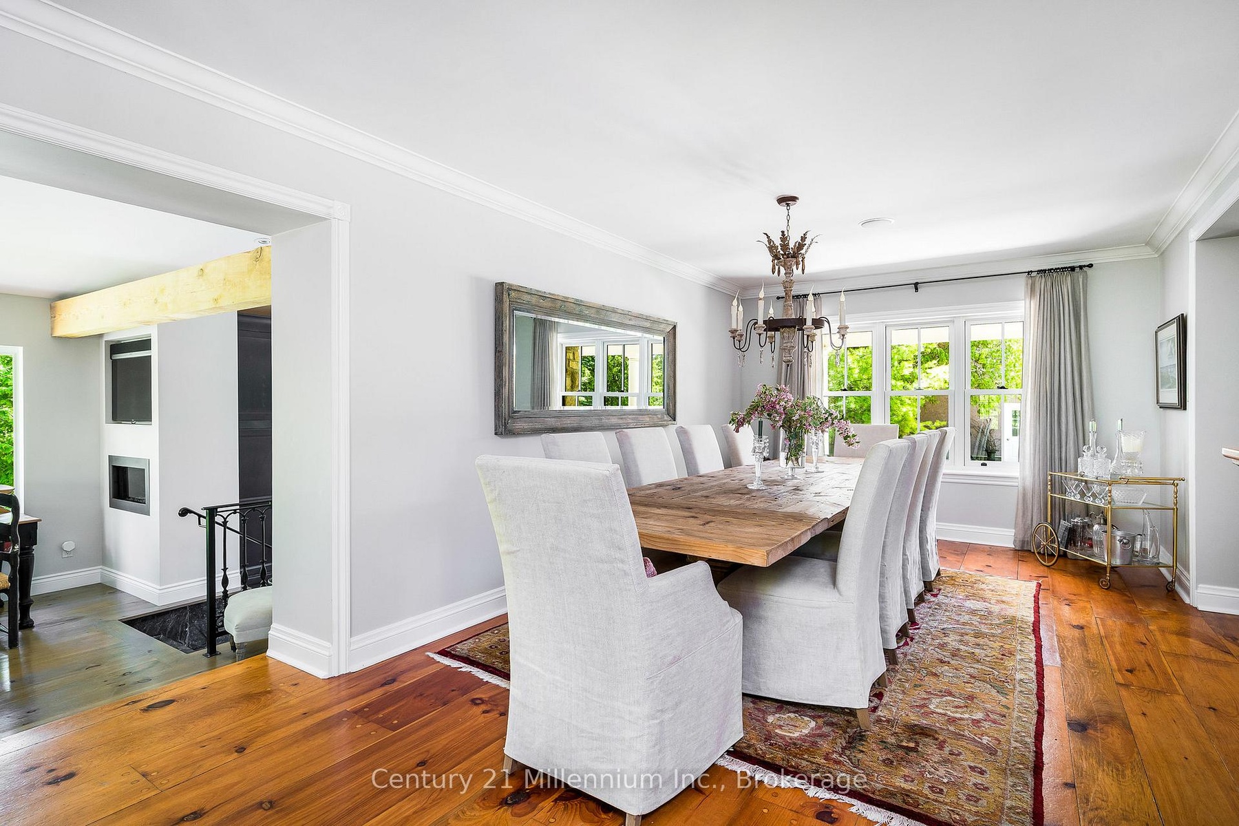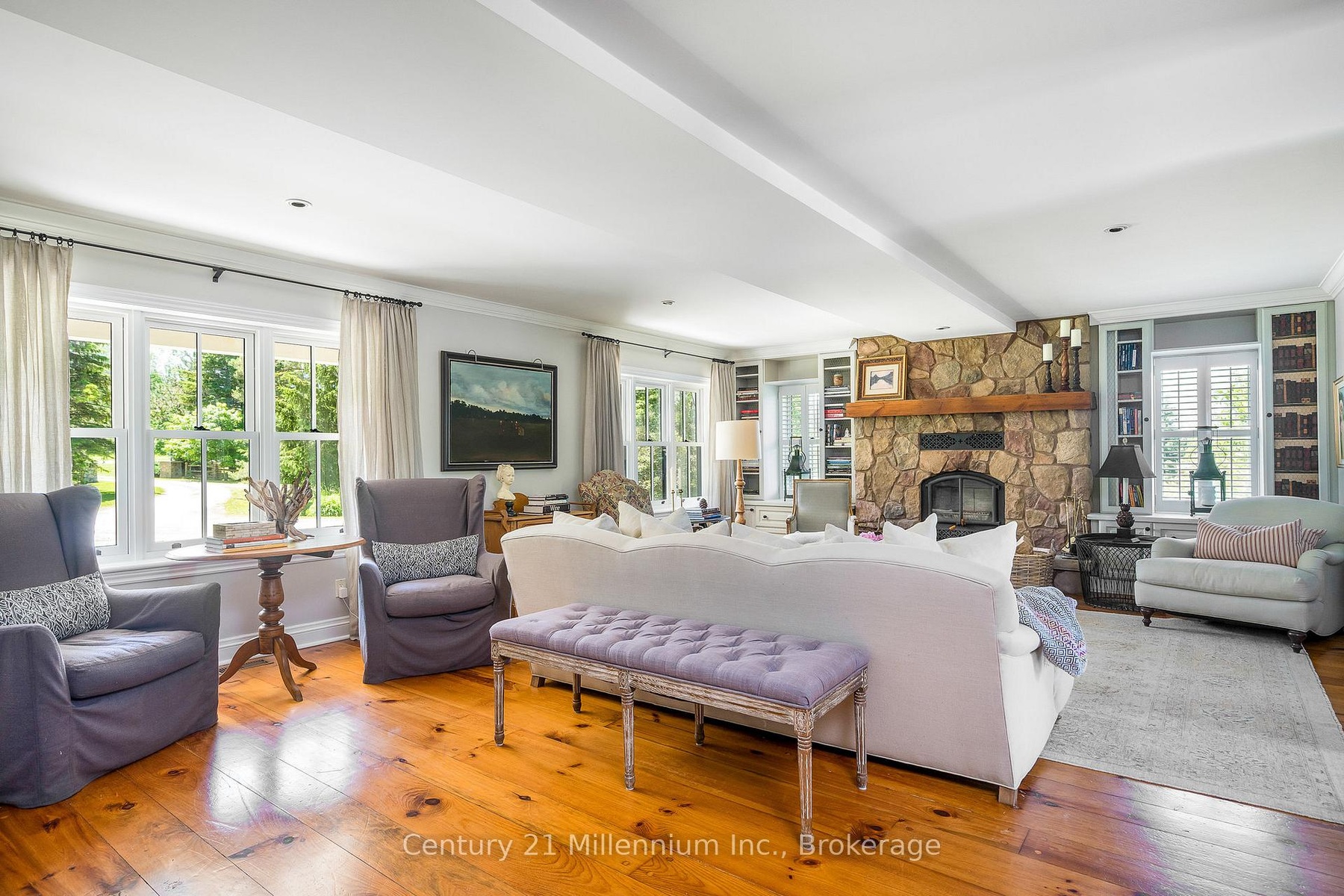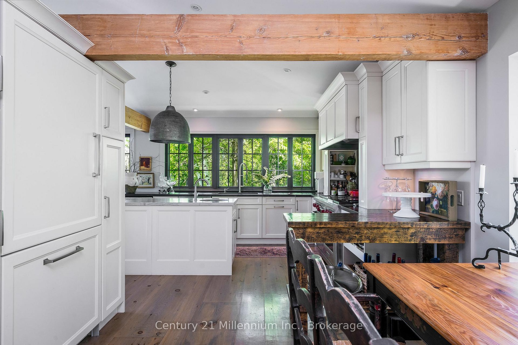 SKI SEASON RENTAL 4 BEDS/4 BATH -Welcome to the historic Camperdown Sandhill Estate, a truly unique country retreat set on 2.5 private acres with panoramic views of the Niagara Escarpment and Georgian Bay. Perfectly positioned just minutes from the area's top ski clubs and the vibrant communities of Thornbury and Collingwood, this exceptional property blends rural charm with refined living. Lovingly and fully restored over the years, the home combines timeless character with modern comfort. Beyond the front entrance lies a gourmet kitchen with picture-perfect views of the English gardens. The bespoke dining room is designed for entertaining, comfortably accommodating up to 12 guests. The living room features a wood-burning fireplace, creating a warm and inviting space for gatherings with family and friends. Upstairs, the second level hosts four spacious bedrooms and two bathrooms. The primary suite offers a private hallway entry, delivering a peaceful, retreat-like escape. The third floor adds a versatile living space ideal for a kids' zone, guest overflow, or a cozy recreational lounge. The fully finished lower level features a large recreation room, a fitness area with a sauna, and a full three-piece bath. A separate entrance provides convenient access to the gardens for guests or easy transition from outdoor to indoor living. Outside, the property is nothing short of a showstopper. Spend your apre enjoying evenings around the fire pit, with the soothing sound of the nearby creek in the background. Two outbuildings provide generous storage for vehicles, tools, or recreational gear. This is a rare opportunity to experience the best of country living, privacy, beauty, and proximity to everything that makes the Blue Mountains region so special. Utilities/Snow removal Extra