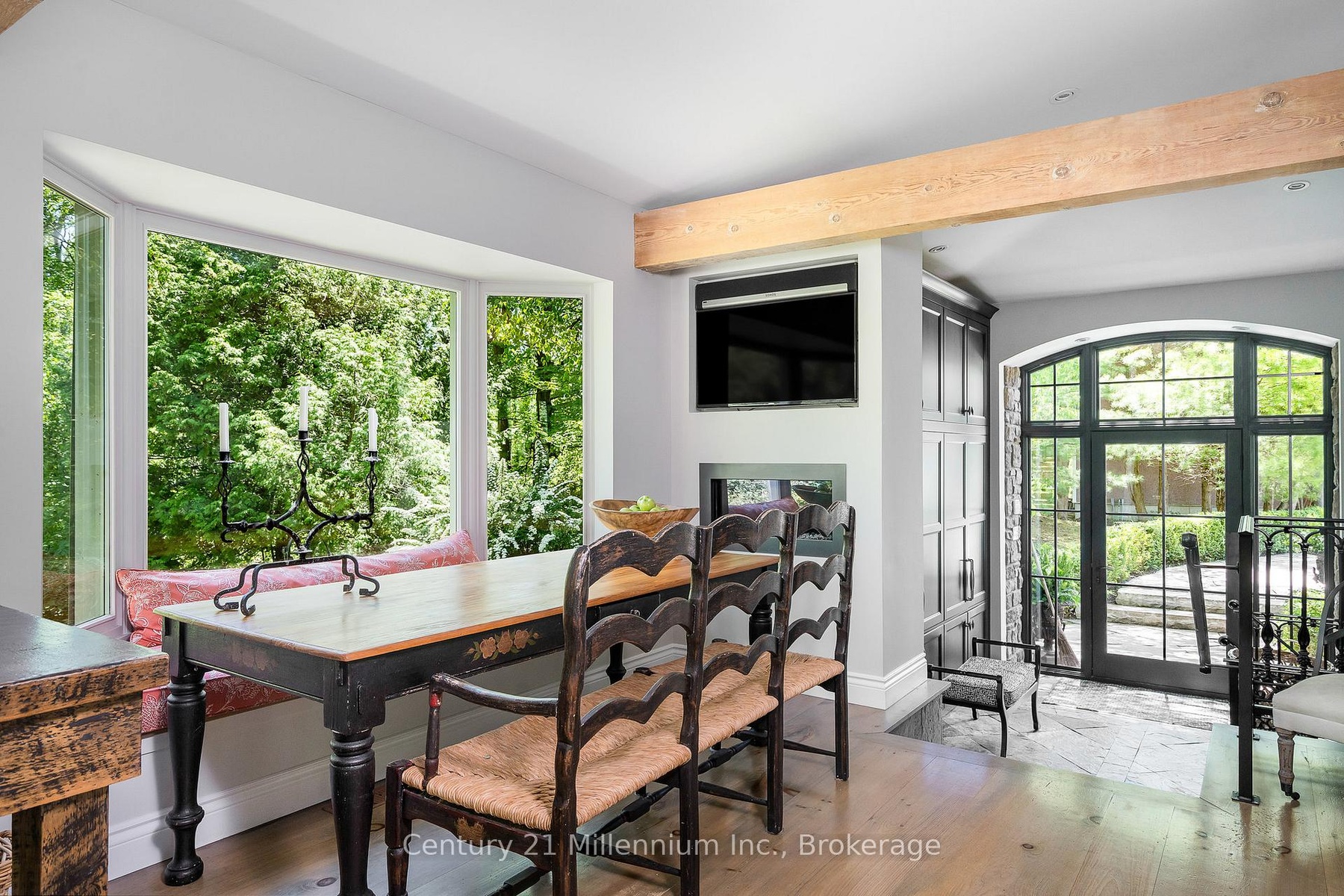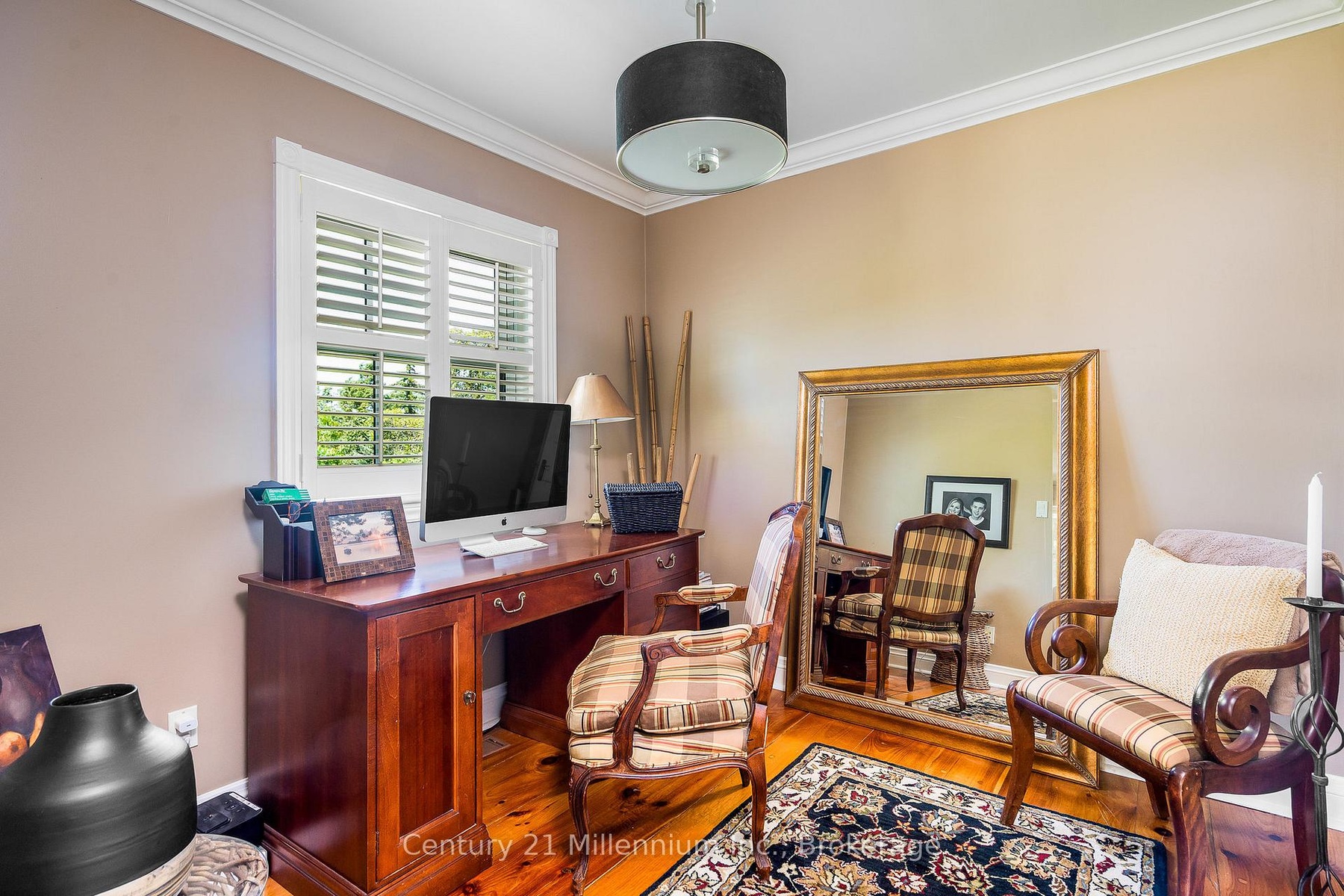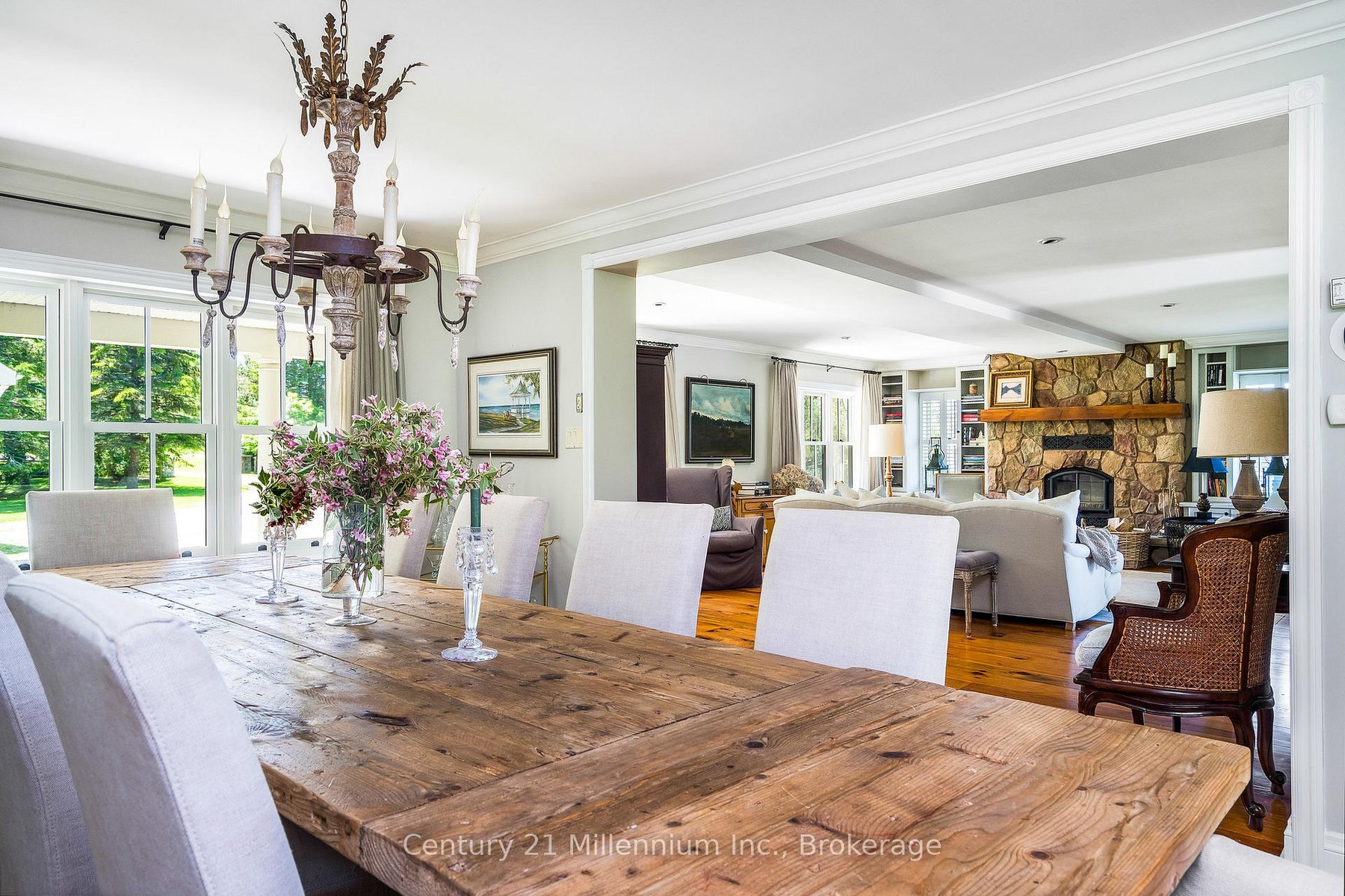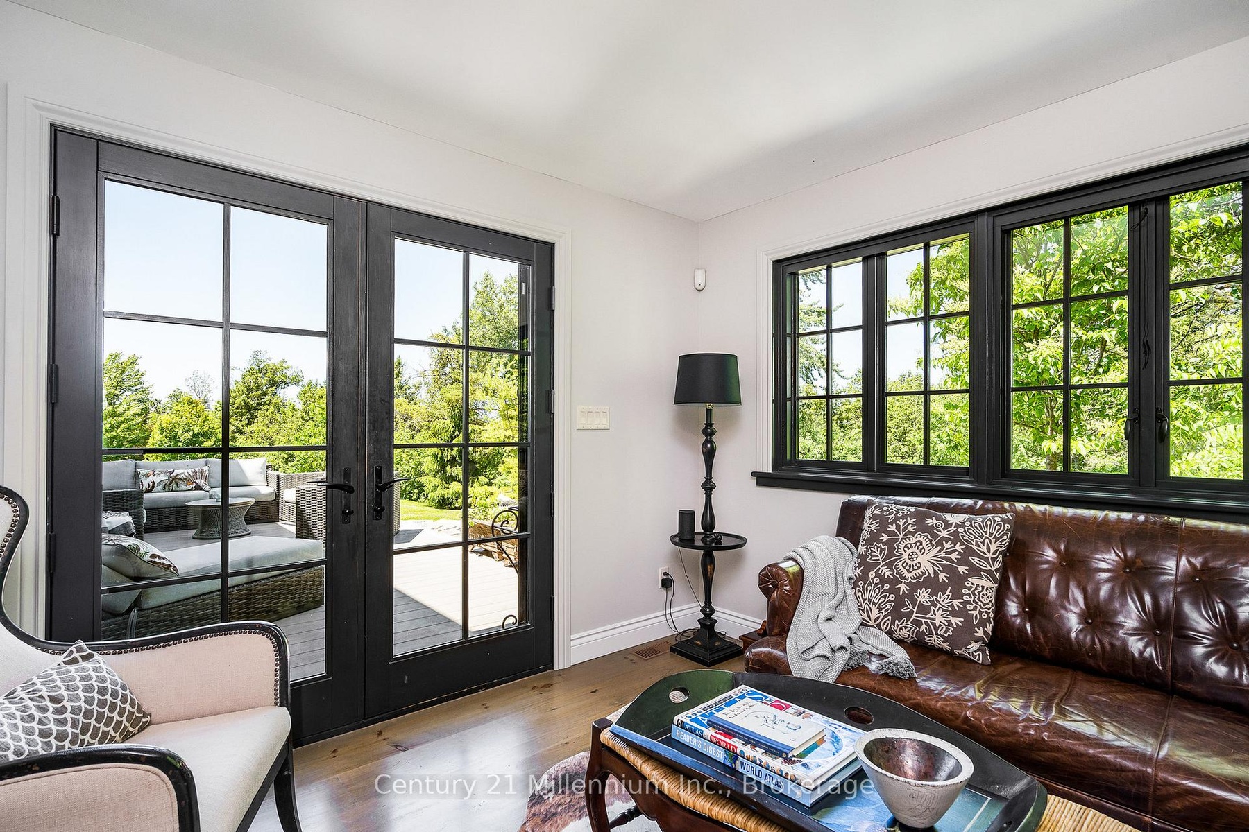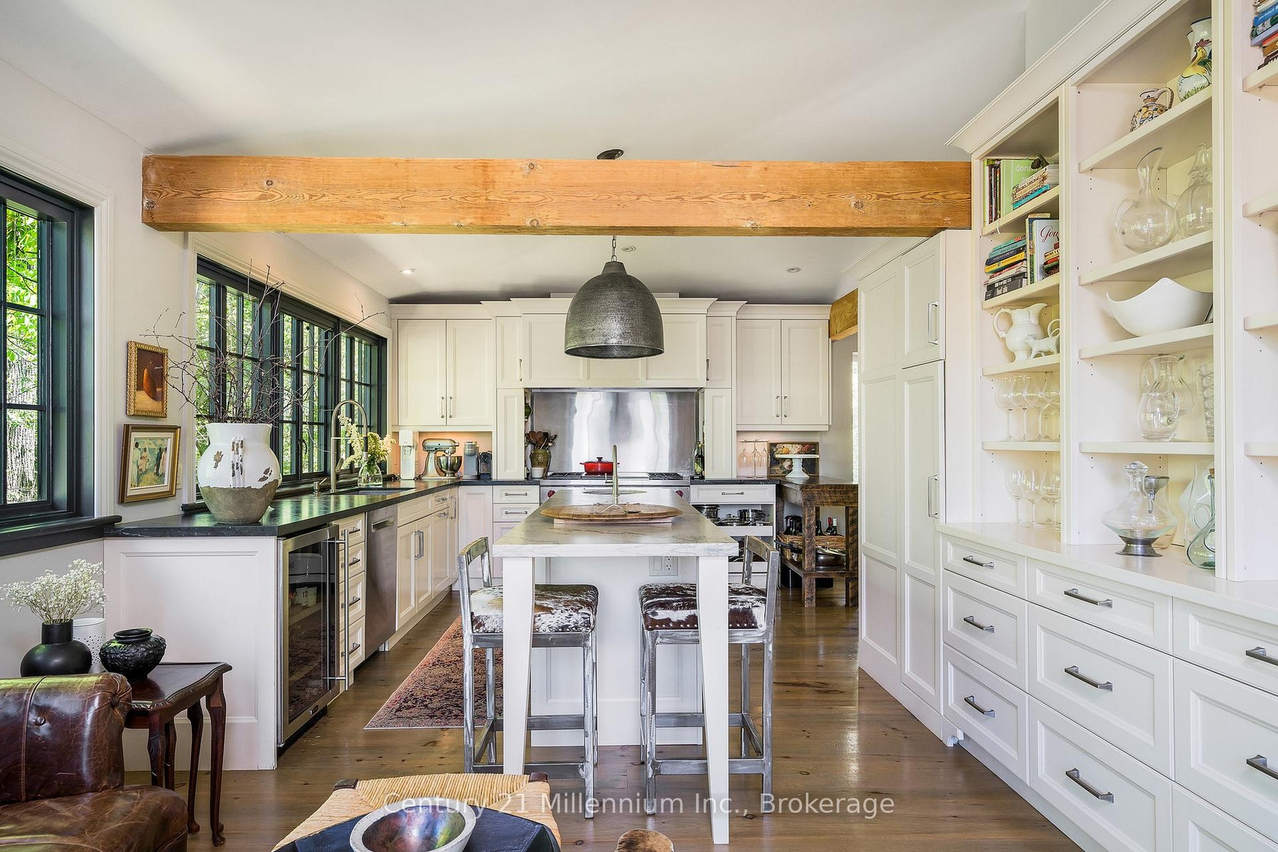 SKI SEASON RENTAL 4 BEDS/4 BATH -Welcome to the historic Camperdown Sandhill Estate, a truly unique country retreat set on 2.5 private acres with panoramic views of the Niagara Escarpment and Georgian Bay. Perfectly positioned just minutes from the area's top ski clubs and the vibrant communities of Thornbury and Collingwood, this exceptional property blends rural charm with refined living. Lovingly and fully restored over the years, the home combines timeless character with modern comfort. Beyond the front entrance lies a gourmet kitchen with picture-perfect views of the English gardens. The bespoke dining room is designed for entertaining, comfortably accommodating up to 12 guests. The living room features a wood-burning fireplace, creating a warm and inviting space for gatherings with family and friends. Upstairs, the second level hosts four spacious bedrooms and two bathrooms. The primary suite offers a private hallway entry, delivering a peaceful, retreat-like escape. The third floor adds a versatile living space ideal for a kids' zone, guest overflow, or a cozy recreational lounge. The fully finished lower level features a large recreation room, a fitness area with a sauna, and a full three-piece bath. A separate entrance provides convenient access to the gardens for guests or easy transition from outdoor to indoor living. Outside, the property is nothing short of a showstopper. Spend your apre enjoying evenings around the fire pit, with the soothing sound of the nearby creek in the background. Two outbuildings provide generous storage for vehicles, tools, or recreational gear. This is a rare opportunity to experience the best of country living, privacy, beauty, and proximity to everything that makes the Blue Mountains region so special. Utilities/Snow removal Extra