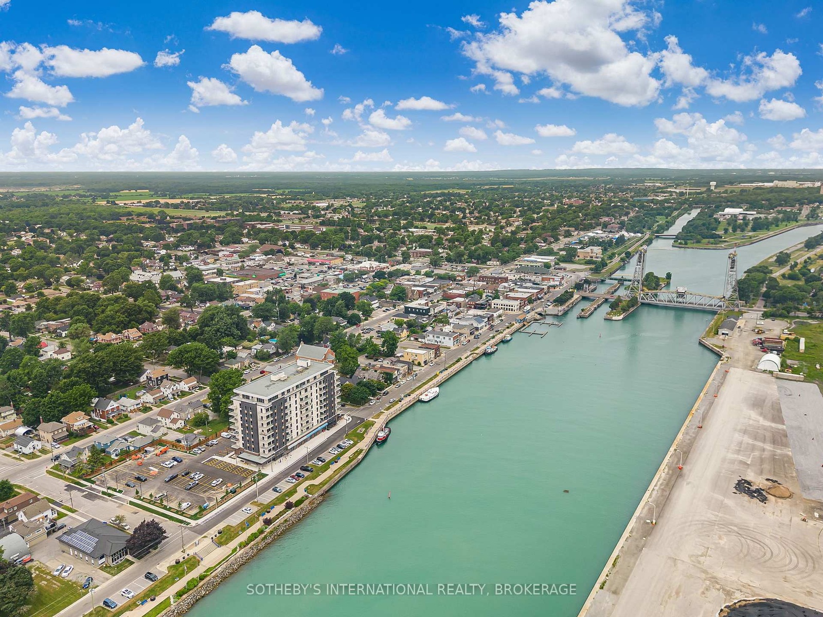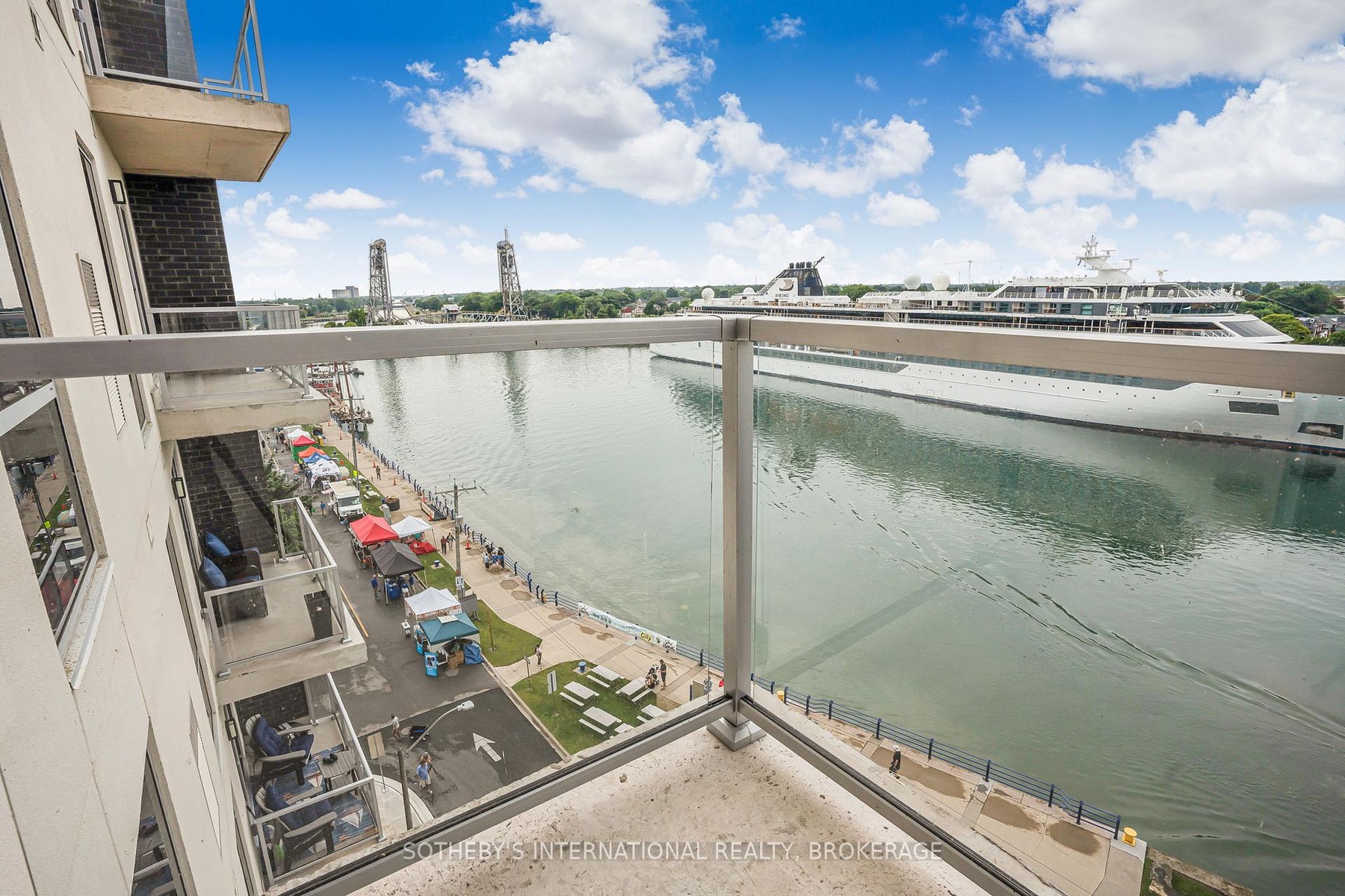 Waterfront living at its finest. With 3 bedrooms, two full baths, two balconies and two EV parking spaces, Suite 707 "The Pier" is east facing, directly overlooking the Welland Canal. This contemporary residence encompasses 1,366 square feet containing a custom white kitchen with quality cabinetry, upgraded quartz counters, under cabinet lighting, stainless steel appliances and a large island with counter seating. Additional notable features consist of a spacious walk-in closet along with a four-piece ensuite exclusive to the primary bedroom. An enclosed laundry room (with added storage and folding table) as well as a barrier-free second four-piece bathroom, add to the appeal of this distinct dwelling. The two EV parking spaces, with direct access to the side lobby entrance, and an exclusive, main floor storage locker are included with Suite 707. All windows are wired for electronic blind installation. South Port is a well appointed building with numerous amenities comprised of a social lounge, outdoor barbecue area and an elegant lobby featuring 14' ceilings and mail boxes. Residents also have access to a fitness room and bicycle storage. Entertain your guests in the party room, with kitchen, bathroom, lounge and dining area. Enjoy convenient interior access to the the ground floor commercial units including Pie Guys restaurant. Discover the unchartered charm of Port Colborne with the marina, beach, golf and shopping at your doorstep. Easy access to paved walking and cycling pathways. Immediate occupancy available.