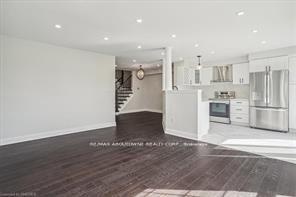 Location...Location..Stunning bright Freehold Townhouse renovated from Top to Bottom, situated in desirable Bronte Creek community of Oakville.Beautiful Open Plan design.New Staircase. Main Flr has Large Family Rm, separate Dining Rm. Brand New gourmet Kitchen with Stainless Steel Appliances + Walk out to Deck. New Hardwood Flr and Pot lights thruout all levels. 4 New Bathrooms, 3+1 Bedrms. Primary Bedrm has 3 piece ensuite + Walk In closet. Fully Finished Basement with 4th Bedrm, 3 piece Ensuite, Den/Media Rm, Storage Area, perfect for work at home client. Excellent Top Rated School District. Easy Access to all amenities, Shopping, Major Highways, Public Transport to GO. Park and Recreation Area. Move right into this amazing home and enjoy the Fab Neighbourhood.