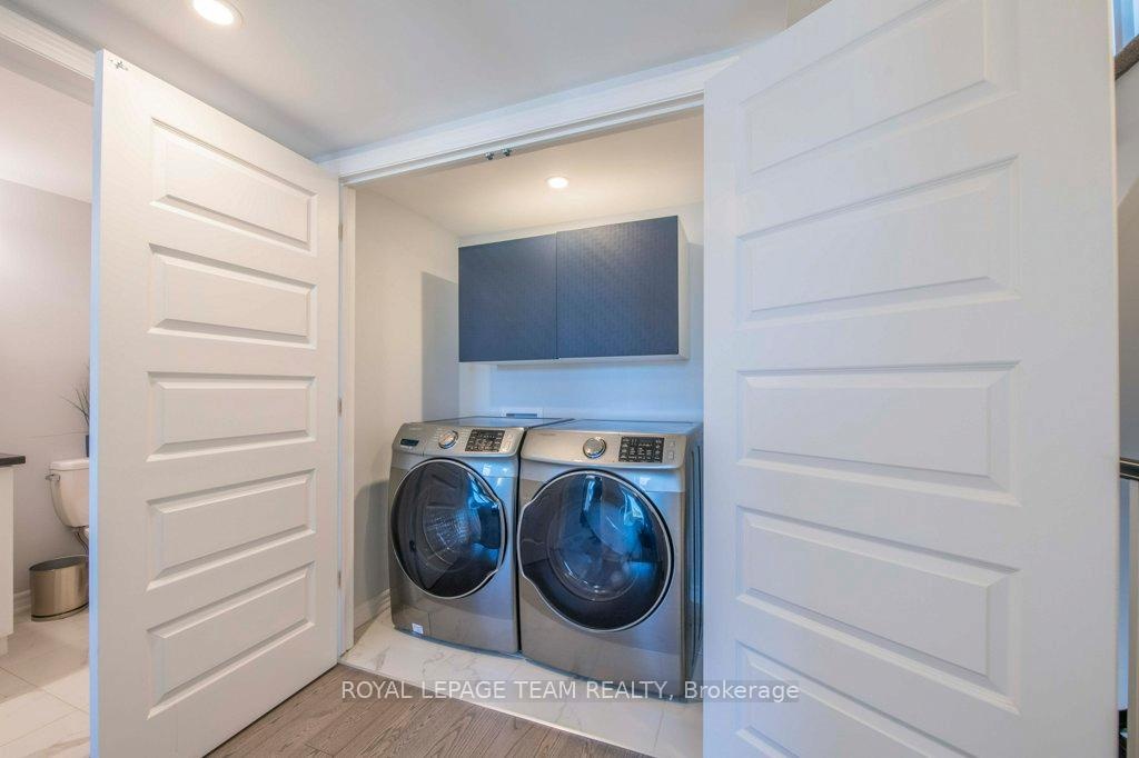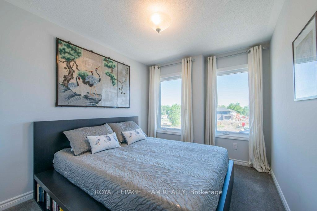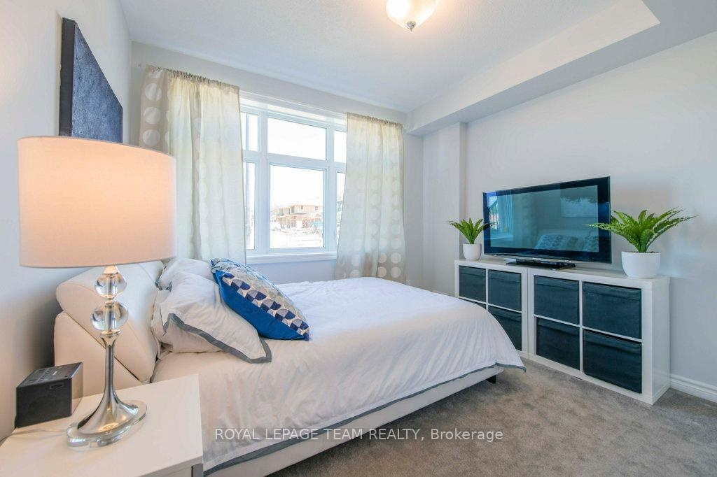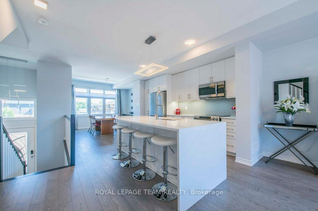 This executive townhome is the largest on offer and will impress you at every turn. 4 bedrooms, 3.5 bathrooms, 2 car garage and spectacular 3rd floor terraces. Perfect main floor living w/ the kitchen at the heart of the home, quartz waterfall island, gorgeous backsplash, designer lights and SS appliances. Modern, yet comfortable. Spacious dining area w/ a view to the park across the street and a living room w/ access to a south facing balcony. Upstairs features the primary bedroom w/ walk-in closet and ensuite, two more bedrooms, full bath and 2nd floor laundry. The 3rd floor rooftop terrace w/ views to the Gatineau Hills and park across the street is the perfect urban oasis. Downstairs is a 4th bedroom that can be a family room, gym or home office, full bath and access to the 2 car garage. Snow and lawn care taken care via condo fee. 200 amp service.