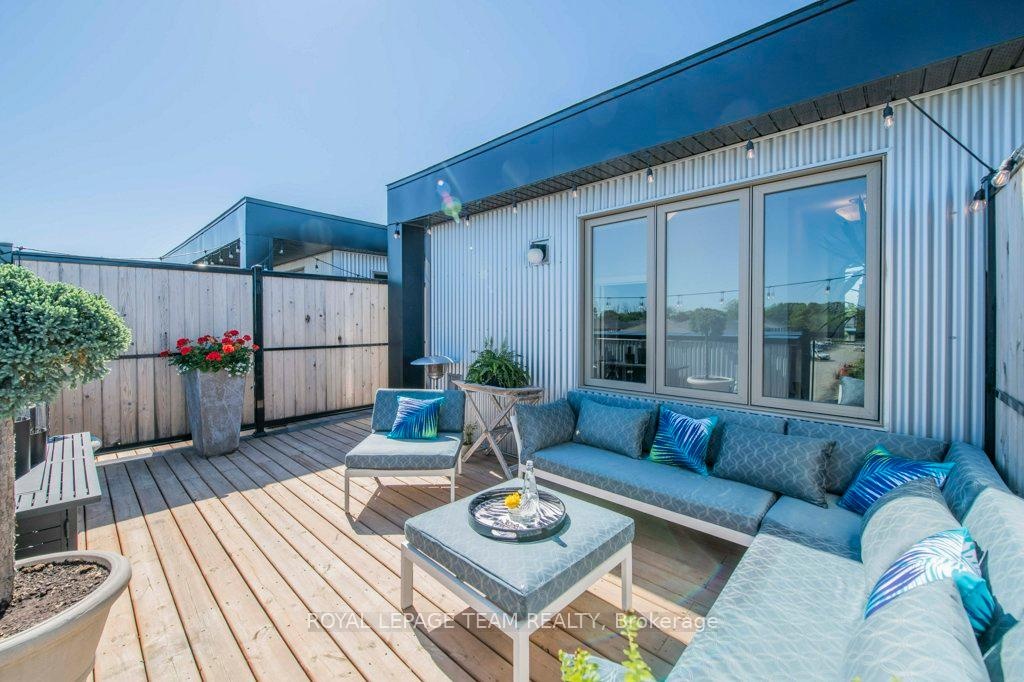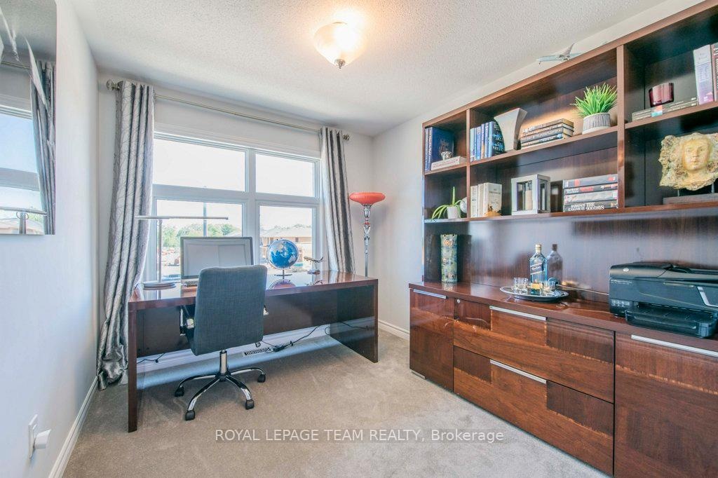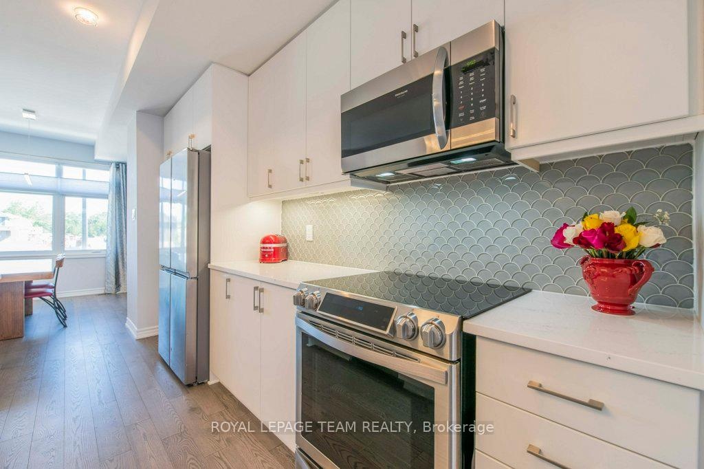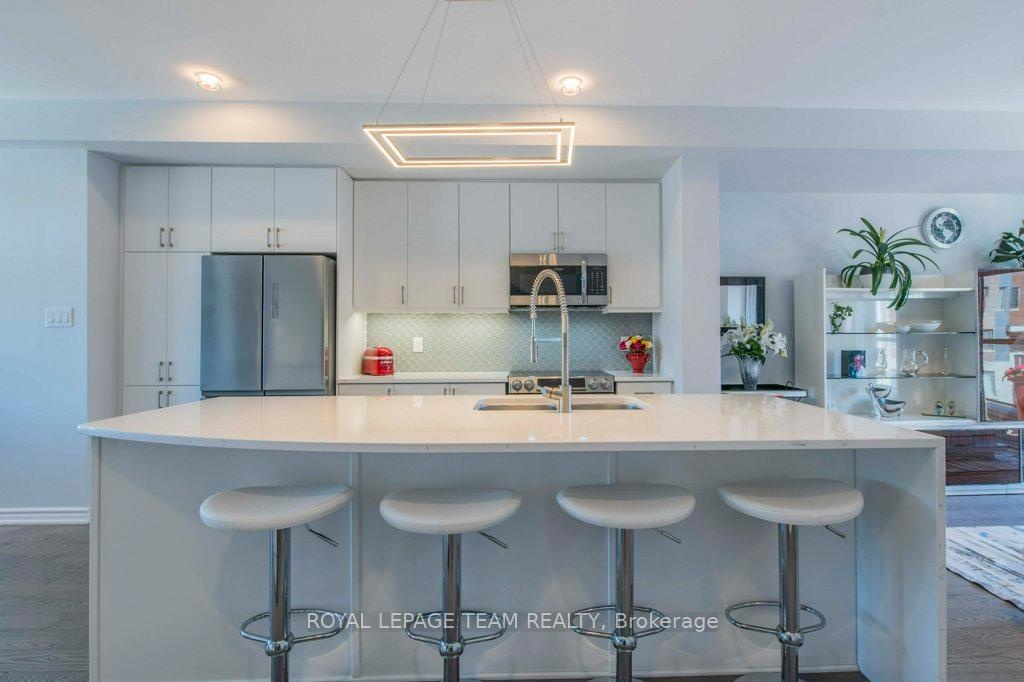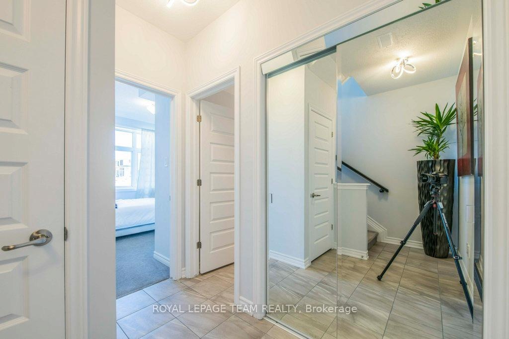 This executive townhome is the largest on offer and will impress you at every turn. 4 bedrooms, 3.5 bathrooms, 2 car garage and spectacular 3rd floor terraces. Perfect main floor living w/ the kitchen at the heart of the home, quartz waterfall island, gorgeous backsplash, designer lights and SS appliances. Modern, yet comfortable. Spacious dining area w/ a view to the park across the street and a living room w/ access to a south facing balcony. Upstairs features the primary bedroom w/ walk-in closet and ensuite, two more bedrooms, full bath and 2nd floor laundry. The 3rd floor rooftop terrace w/ views to the Gatineau Hills and park across the street is the perfect urban oasis. Downstairs is a 4th bedroom that can be a family room, gym or home office, full bath and access to the 2 car garage. Snow and lawn care taken care via condo fee. 200 amp service.