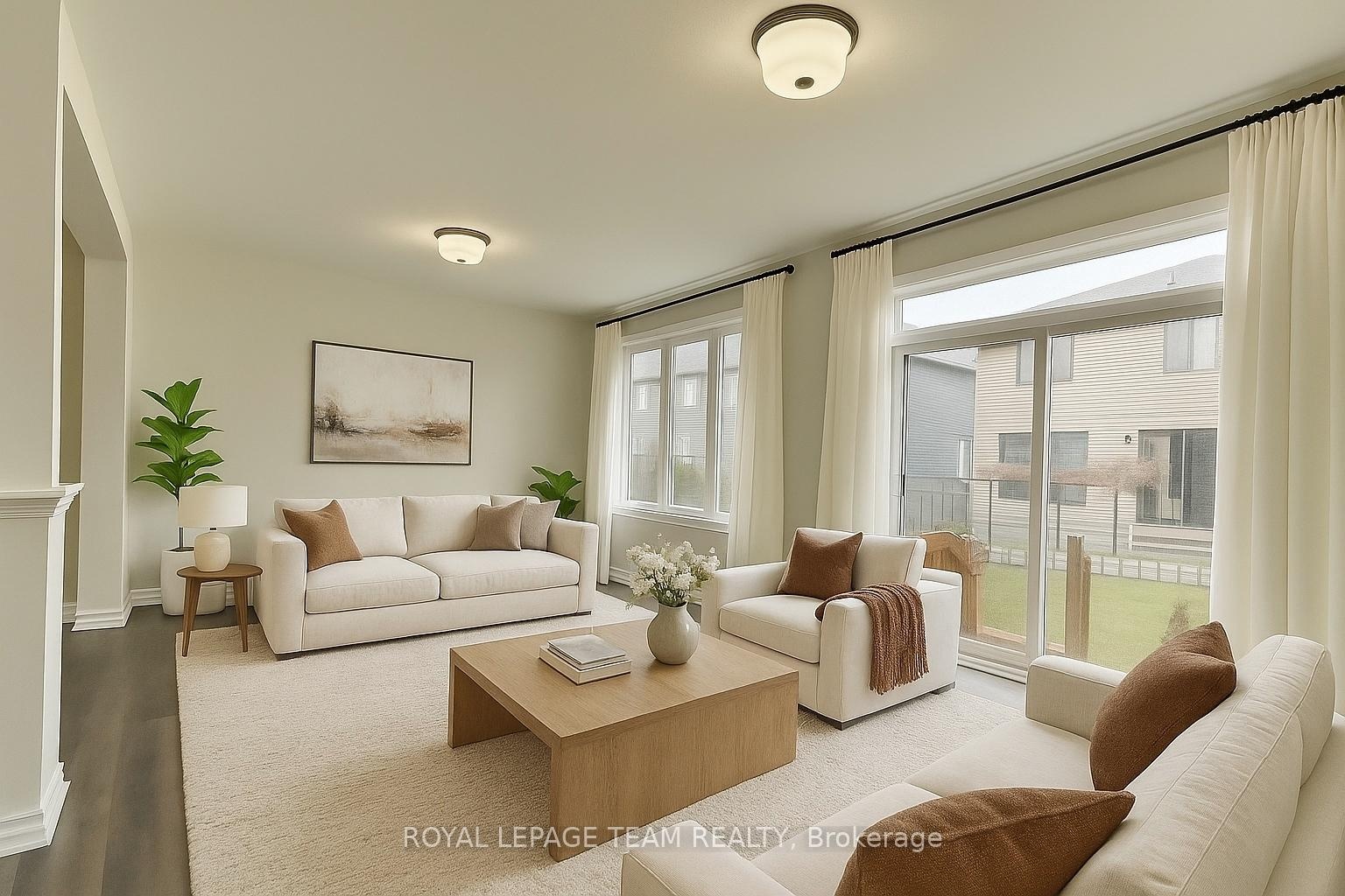 New townhome in Half Moon Way, Ottawa. 3 Bedrooms, 4 Bathrooms, a fully finished basement, and two parking spaces. More than 2100 square feet of living space. The main floor features a large living room and dining room, as well as a walk-in closet. Open-concept kitchen upgrade featuring a spacious Island, countertops, cabinets, and stainless steel appliances. The second floor has two full bathrooms, a master with an en-suite bathroom and a walk-in, two other bedrooms with closets and a laundry room. Professionally finished basement with a full bathroom and lots of pot lights.Perfect for a play area and a party. Walking distance to the park and school. 5 min drive to Costco, Amazon building, HWY 416 and Parks and Schools. Move-in Ready.