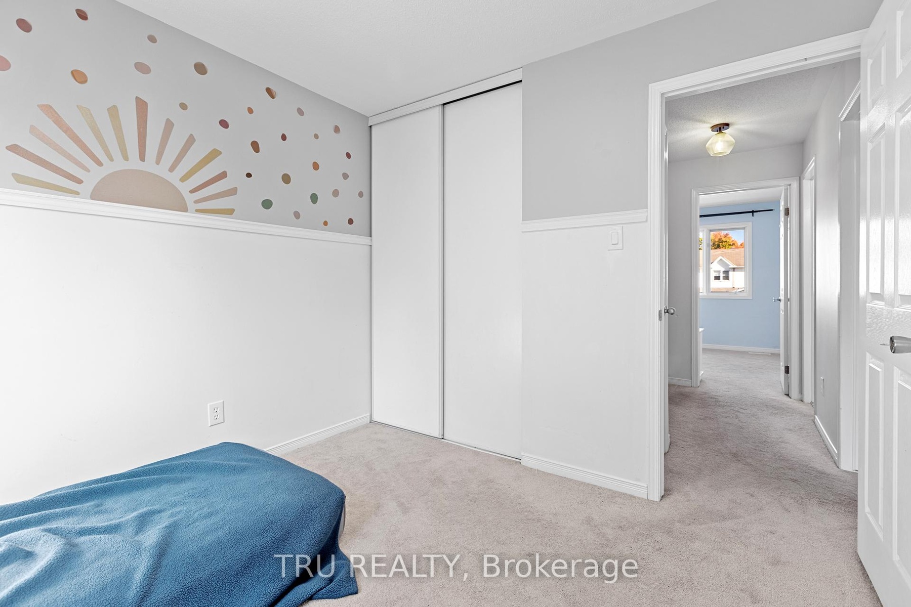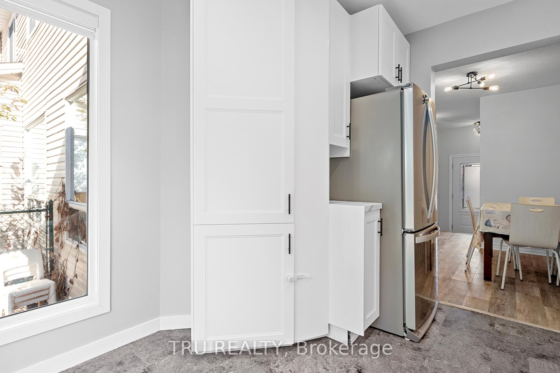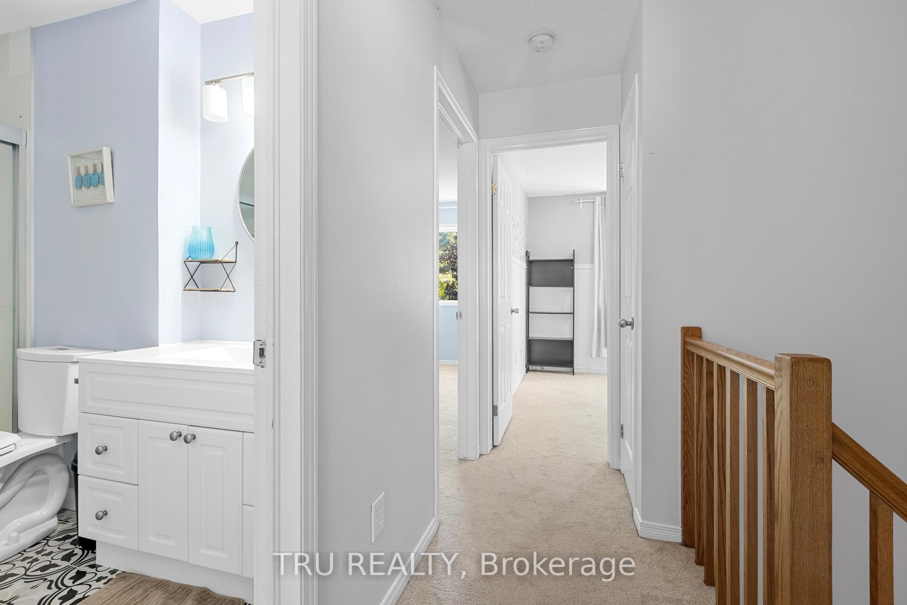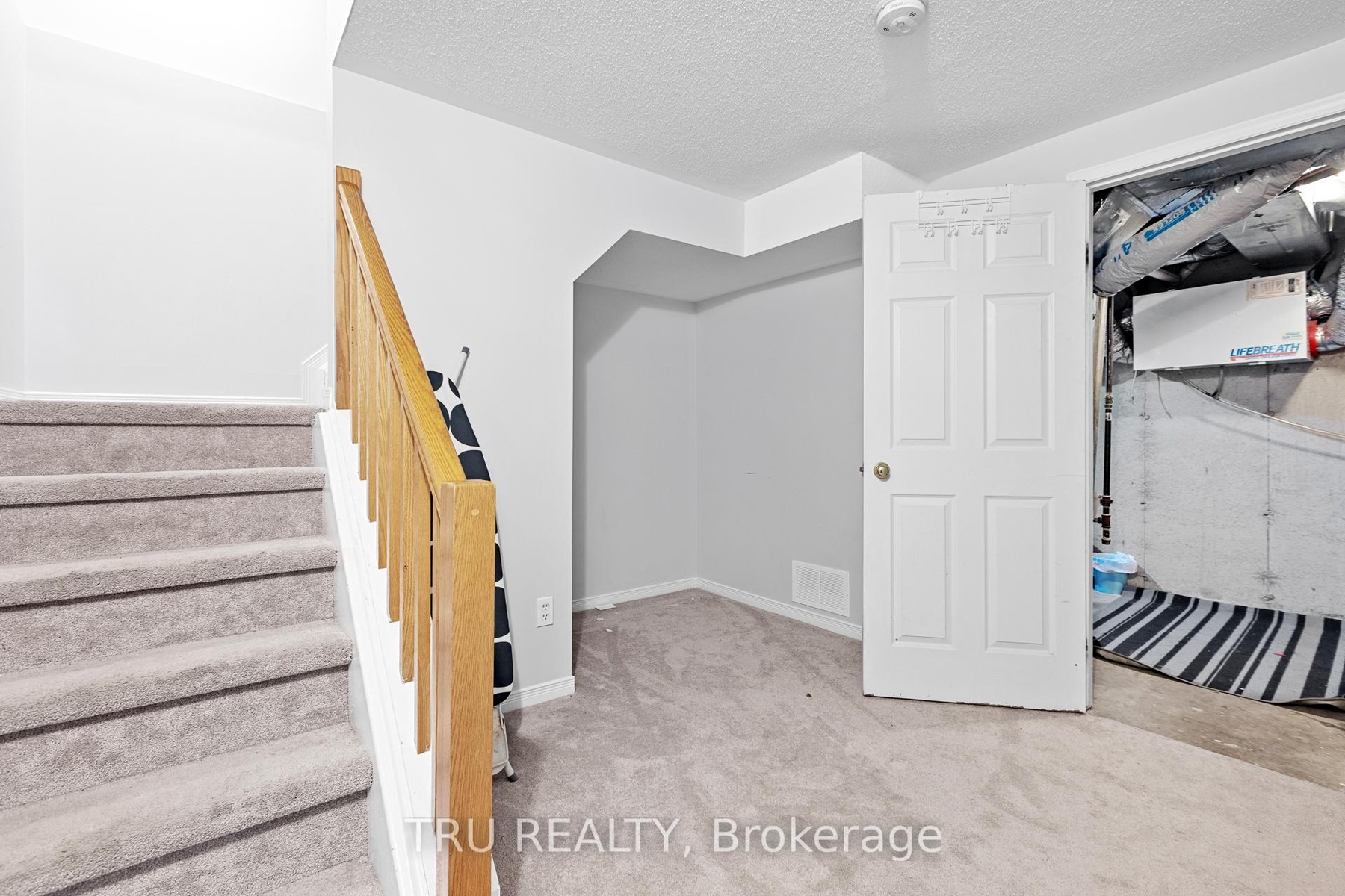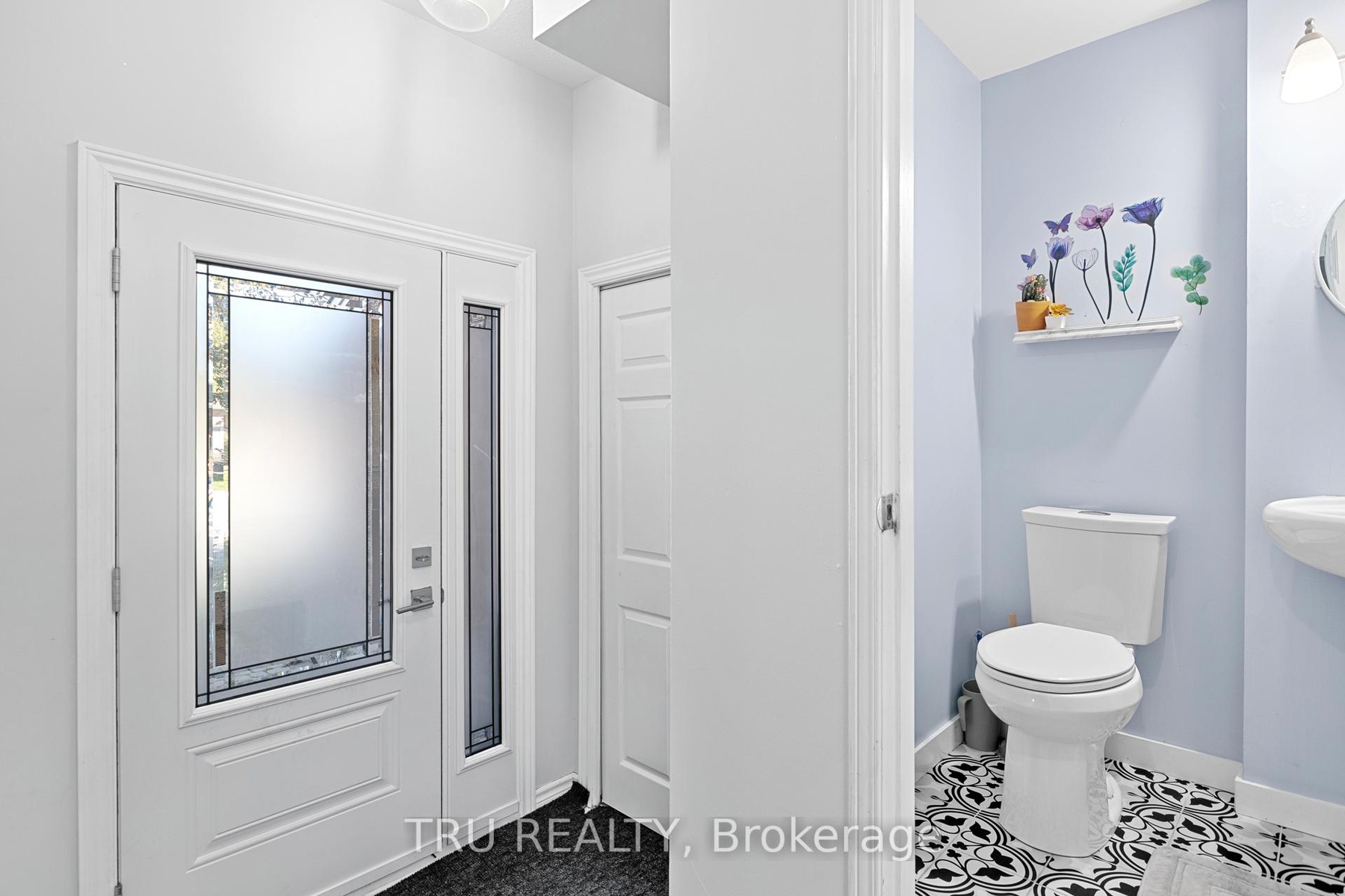 Welcome Home to this beautifully renovated 3-bedroom, 2.5-bathroom freehold townhome with finished basement, offering style and comfort with no condo or association fees! Recently painted. Located walking distance to Adrienne Clarkson Elementary School, Stonecrest Park, Farm Boy & more. Private porch with new front door (2022). Main floor features luxury vinyl plank flooring and a dream kitchen with abundant counter space, pantry cabinets & stainless steel appliances. Convenient powder room on main floor. Upstairs includes 3 spacious bedrooms, including a principal bedroom with ensuite bath. Both full bathrooms are tastefully updated. Finished basement offers family lounge & den with window, ideal for office or craft space. 120 ft deep lot, inside entry to garage, carpets shampooed and cleaned professionally. Close to parks, schools, groceries, restaurants & transit. Move-in ready and easy to show!