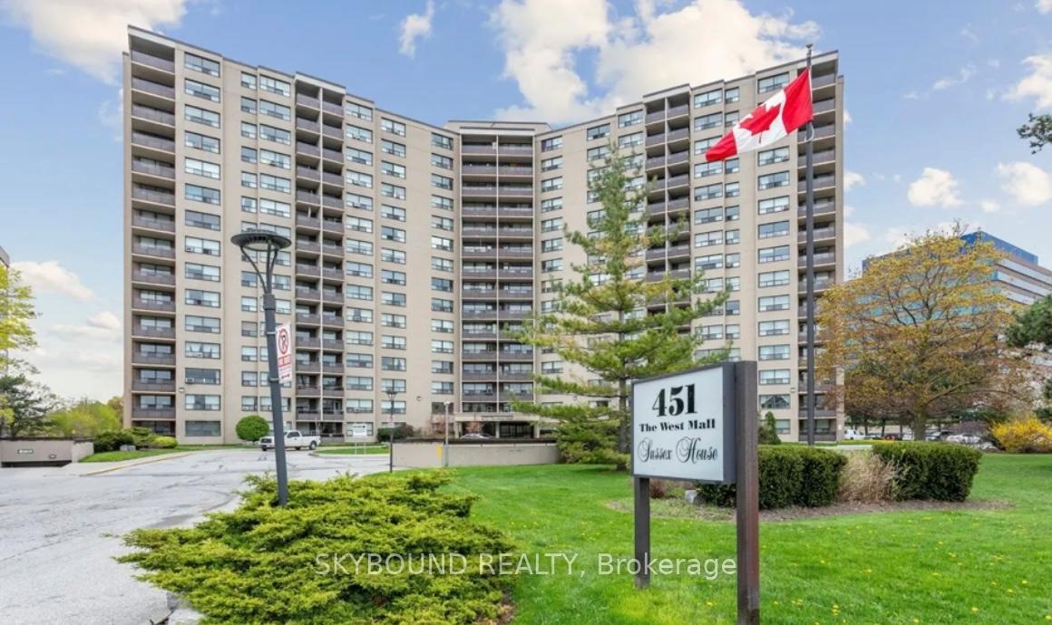 Fully Renovated Two-Bedroom Unit In A Fantastic Etobicoke Location. Welcome to this sun-filled condo with Stunning Views featuring 2 large bedrooms, a massive open-concept living/dining area, and new flooring. Enjoy the convenience of an ensuite laundry, walk-in closet, and storage. Stay connected with TTC & MiWay bus transit at your doorstep, plus easy access to Hwy 427. Balcony Overlooks Beautifully Maintained Gardens And Parks, Offering Peaceful, Unobstructed, And Stunning Sunset Views. This Unit Comes With One Underground Parking Space. Good-rated schools nearby, kids park, coffee shops within walking distance. This Unit Offers Access To A Wide Range Of Amenities, Including A Gym, Sauna, Swimming Pool, Tennis Court, Party Room, and BBQ/Picnic Area. Maintenance fee includes all utilities, electricity, water, heating, plus Bell Fibe Internet & TV, and 1-car parking. Just move in and enjoy a lifestyle of comfort, convenience, and connection!
