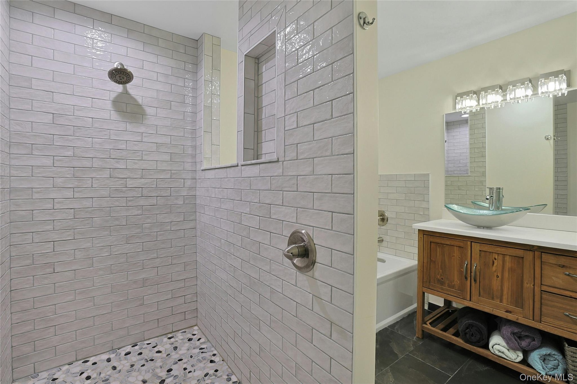 NANUET, NY: Amber Fields Townhome. Move-in ready and beautifully updated, this 3-level townhome in the highly desirable Amber Fields community offers the perfect blend of comfort, convenience, and modern style. Step inside to a bright and welcoming entry. Modern Eat-in kitchen, featuring new hardwood floors (2023), Quartz countertops (2023), stainless steel appliances (2023), freshly painted, modern lighting. The open living and dining area feels elegant and inviting with rich 2023 flooring and plenty of room to relax or entertain. Primary suite — a calming sanctuary with a walk-in closet, a second wardrobe closet, and a luxurious full bath (2023) boasting a double-sink vanity, walk-in shower, and large soaking tub surrounded by all-new tile. A second bright and generous bedroom suite offers its own fully updated tub bath (2023) — perfect for guests. Brand-new Simonton 5500 Series tilt-in windows (2025) throughout enhance efficiency, comfort, and natural light. 2022 Amana Heating and Cooling System. The lower level with glass french doors, provides flexible living space. Call it a large den ideal for a home office, gym, or media room — plus an updated Shower bath (2023), laundry room with added shelving, and direct access to the garage with even more storage. New tile flooring throughout keeps the space fresh and functional. Step outside to your private patio — perfect for morning coffee, weekend grilling, or easy indoor/outdoor entertaining. The pet-friendly neighborhood includes beautifully maintained grounds and new roofs (2020) throughout the community for worry-free living. Roofing completed in 2020, no new assessments at this time. Central to everything you need — minutes to the NYS Thruway, Nanuet Town Centre, Spring Valley Marketplace, and the shops and dining in Downtown Nanuet. Commuting is a breeze with the NJ Transit Train Station in downtown Nanuet to NYC. Nothing to do, but move right in.