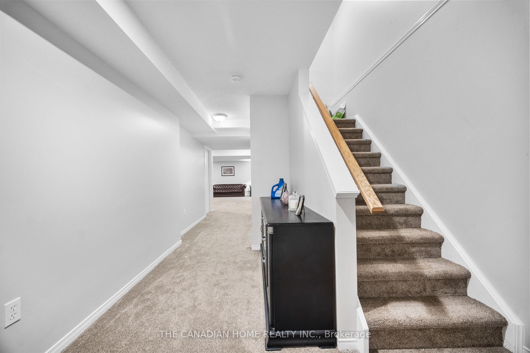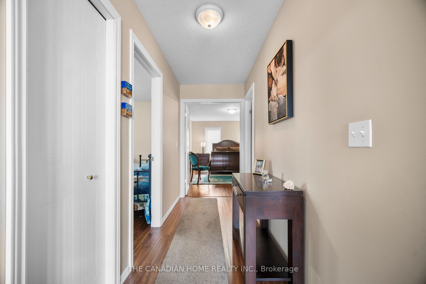 Welcome to 31 Olivewood Way, a beautifully maintained and tastefully upgraded family home offering over 2,300 square feet of fully finished living space.  This beautiful home is located in a highly desirable family neighborhood, close to schools, parks, shopping and commuter routes. A vaulted ceiling with modern chandelier creates a grand entrance and leads into a bright and inviting main floor layout. The large kitchen has been completely renovated and features quartz countertops, modern cabinetry with pantry storage, new backsplash, sink and faucet, together with stylish light fixtures. The sunken living room has hardwood floors with walk out to a private, fully fenced back yard with deck, gazebo, and garden shed. The main floor also includes a powder room and walk out to the garage, along with ceramic tile throughout the balance of the floor. Upstairs the generous primary bedroom offers a walk-in closet and private 4-pc ensuite bath. Two additional well sized bedrooms and an additional 4-pc main bathroom provide plenty of space for family or guests. The upper level has upgraded laminated hardwood flooring throughout with the exception of the bathrooms which have ceramic tile. The finished basement expands your living area and makes an ideal recreation/entertainment area. It has upgraded broadloom throughout, in addition to broadloom over hardwood on the stairs. This home is loaded with additional renovations, including furnace, automatic garage door opener, etc... Tastefully upgraded, this move in ready home combines comfort, style and functionality, in a highly sought after location. Don't miss your chance to call 31 Olivewood Way, Cambridge your next home.