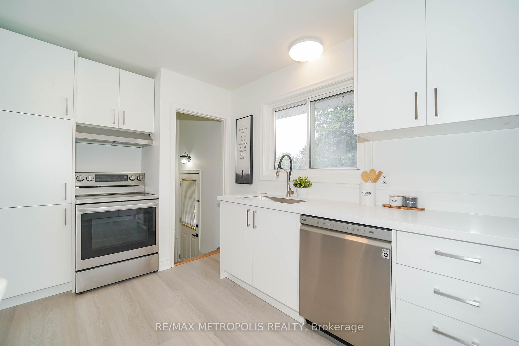 Welcome to this beautifully renovated bungalow, perfectly situated on a friendly private court in a highly desirable neighborhood. Tucked away on a spacious lot and just minutes from the highway, this home offers the best of both worlds, peaceful living with quick access to everything you need. Step inside to discover a completely updated main floor, where natural light pours through large windows, highlighting the open-concept living and dining areas. The modern kitchen is a true centerpiece, showcasing sleek cabinetry, quartz countertops, and stainless steel appliances. Each of the three bedrooms is generously sized, providing comfortable retreats for family or guests. A thoughtfully designed side entrance opens directly to the basement, presenting endless possibilities whether you envision an in-law suite or private workspace. Outside, enjoy the practicality of a single-car garage paired with ample driveway parking. The large lot extends the living space to the outdoors, where the irrigation system keeps your garden and lawn lush and healthy, leaving you with more time to relax and enjoy with family and friends. Theres plenty of room for gardens, a play area, or creating your dream outdoor entertaining space. With its combination of modern updates, functional layout, and future potential, this home is an excellent opportunity for first-time buyers, growing families, or savvy investors alike