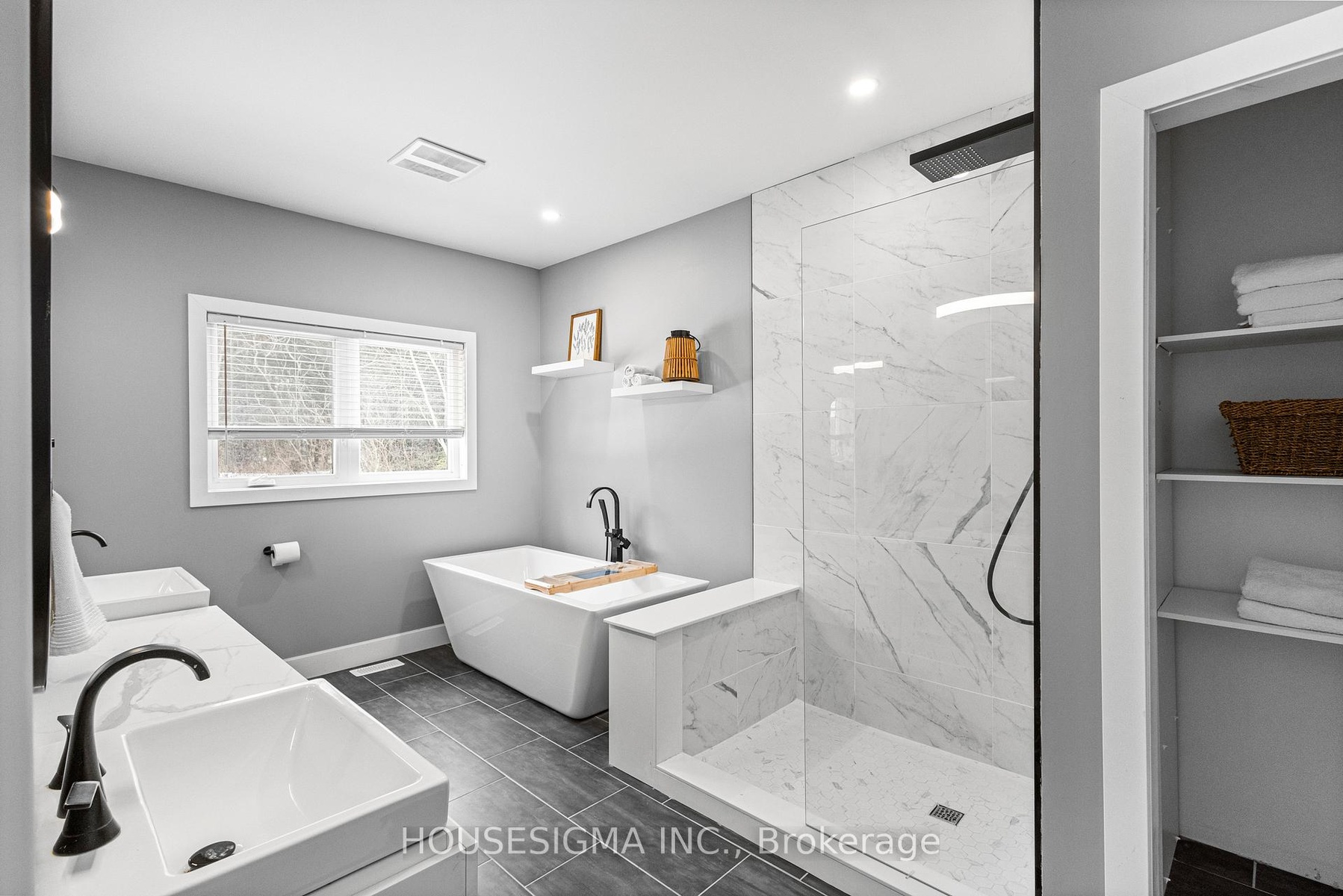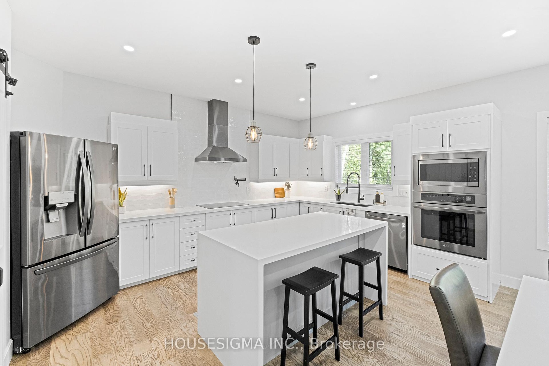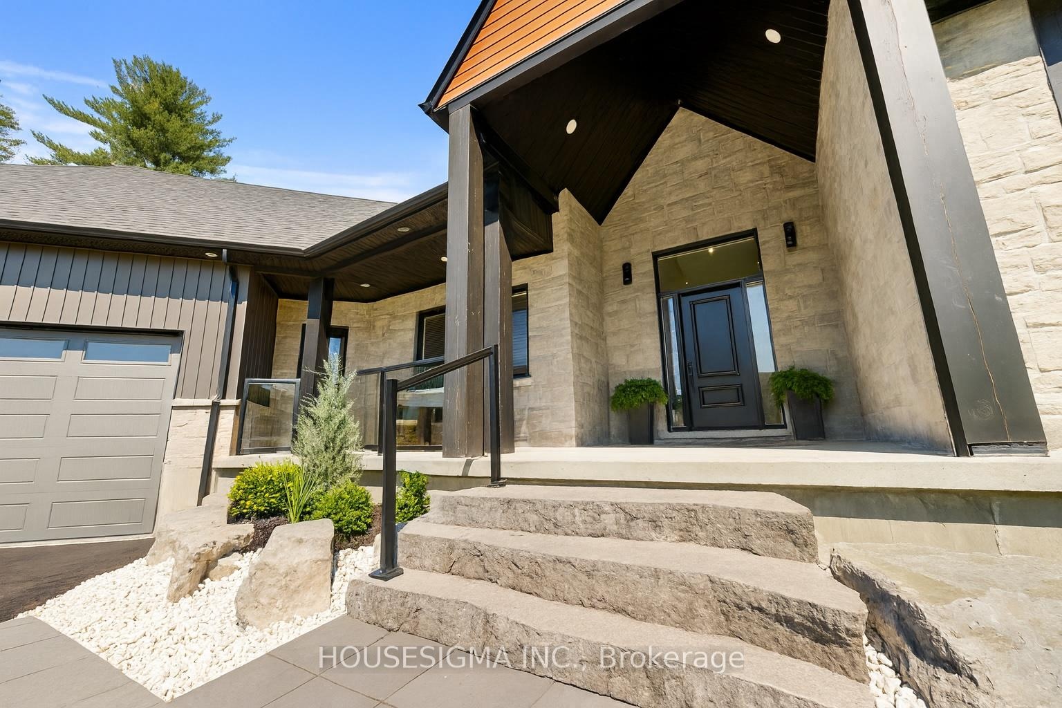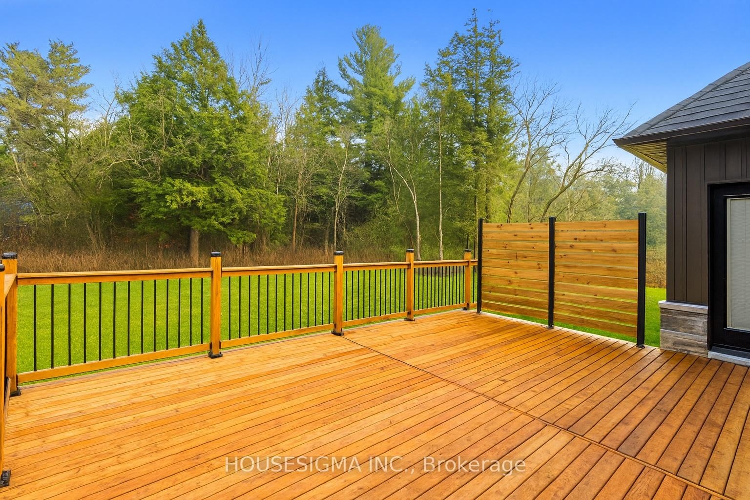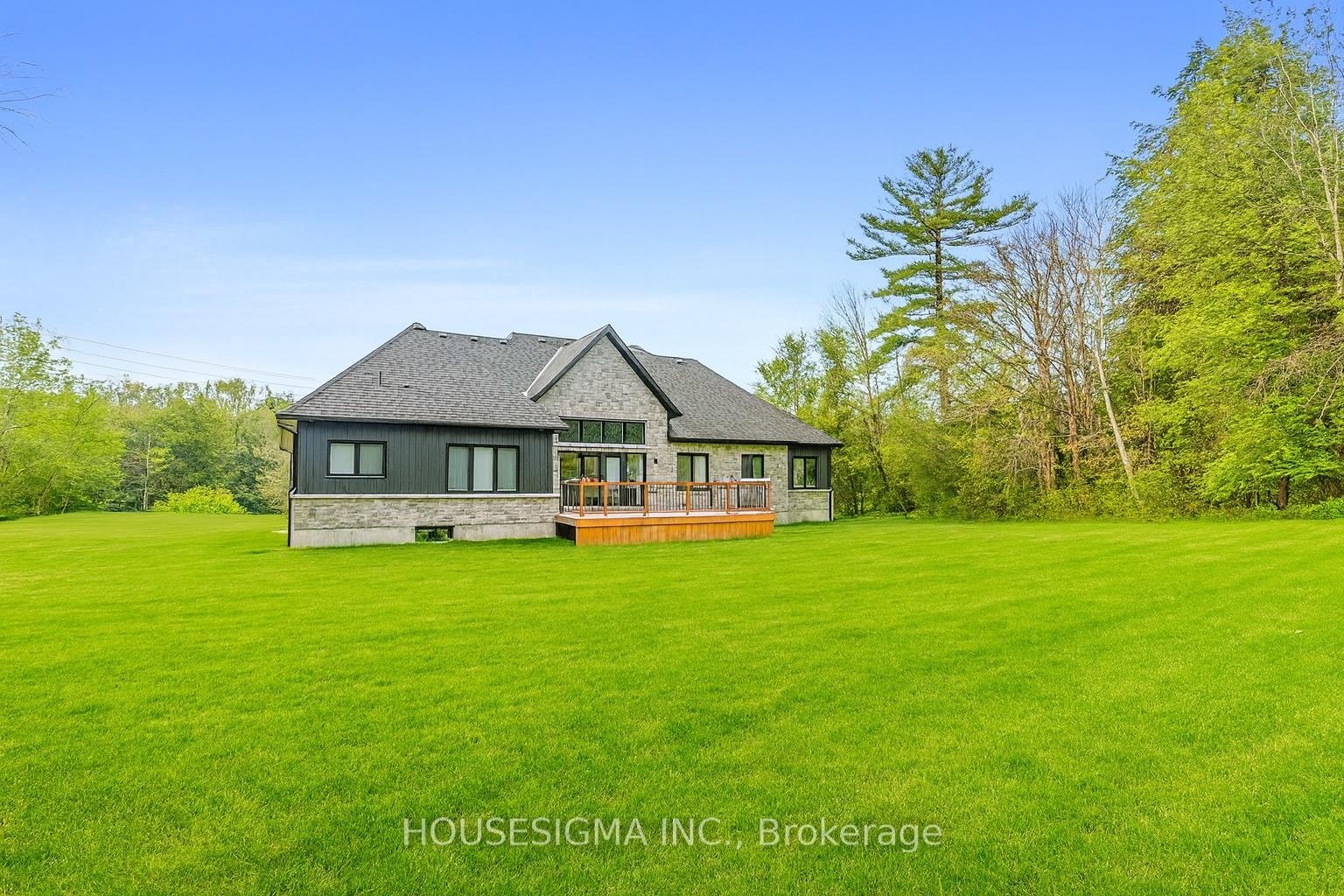 Welcome to this stunning custom-built bungalow, perfectly situated on a sprawling lot just under 2 acres. The striking stonework of the exterior sets a refined tone for this elegant home, showcasing its timeless design and exceptional craftsmanship.Inside, the oversized 3-car garage offers ample space for vehicles and storage, seamlessly complementing the homes thoughtful layout. The main living area is a true showstopper, with soaring 13-foot ceilings, a built-in electric fireplace, and a walkout to the deck and spacious backyardperfect for both relaxing and entertaining.Throughout the rest of the home, 9-foot ceilings maintain a sense of openness and elegance. The chefs kitchen is designed for both beauty and functionality, featuring quartz countertops, premium built-in appliances, and a layout ideal for hosting or everyday living.The primary suite is a luxurious retreat, complete with its own walkout to the deck, offering serene views and a seamless connection to the outdoors. The spa-inspired ensuite features his-and-her sinks and exquisite finishes, adding a touch of indulgence to your daily routine.Enjoy your own privacy, land, and piece of paradise, all while staying just minutes away from major shopping areas and Highway 401. Set on a peaceful, expansive lot, this home offers a perfect blend of tranquility and convenience. Schedule your private tour today to experience this exceptional property for yourself!