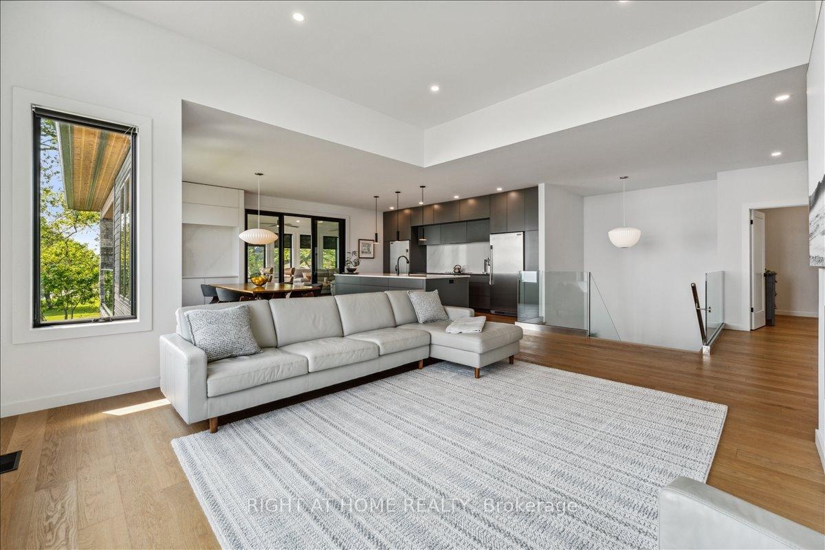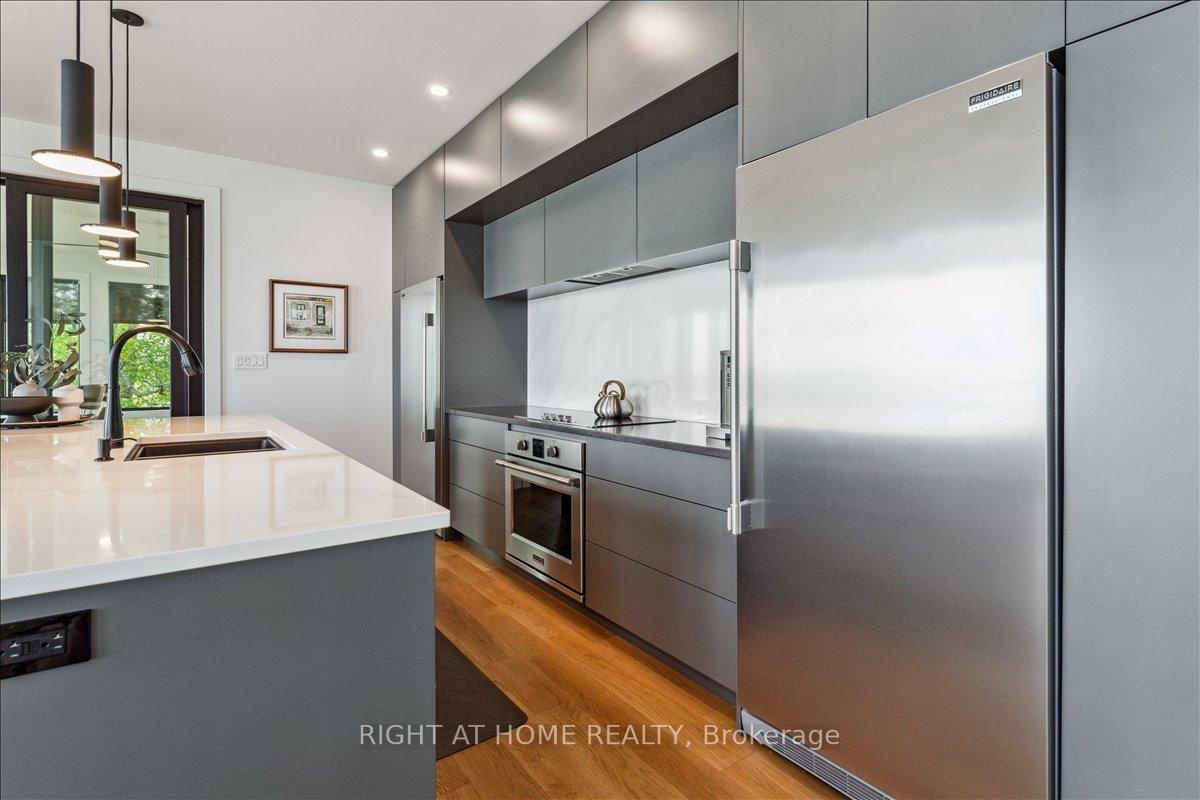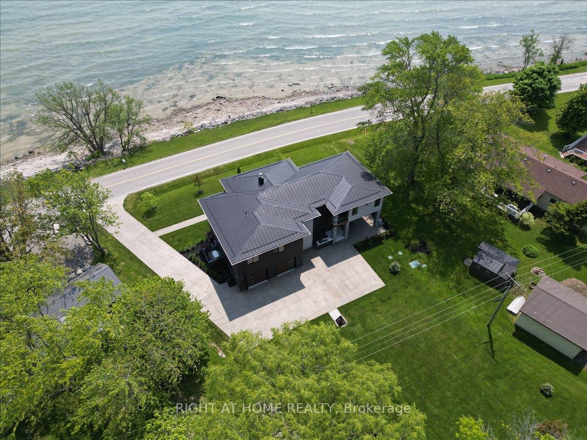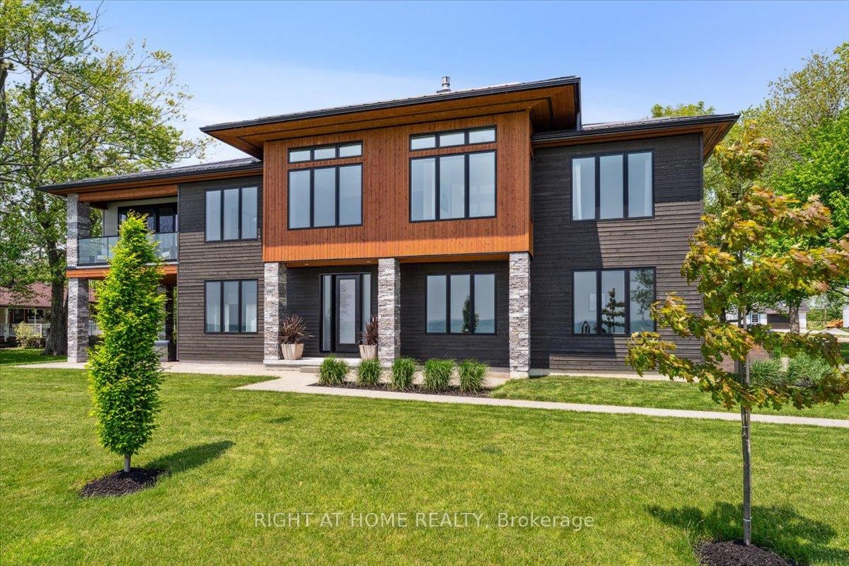 Wake up to the gentle sound of Lake Erie's waves, sunlight streaming through wall-to-wall windows, and the promise of a day filled with serenity and relaxation. Welcome to 17 Bluewater Parkway in Haldimand County, a haven crafted for buyers seeking a luxury waterfront home. Step through the foyer, where engineered hardwood floors and soaring 9/11 ft. ceilings set the stage. The family room, warmed by a natural gas fireplace and framed by built-in cabinetry, invites cozy evenings with loved ones. A guest bedroom, 3pc bath, and a clever vanity/fridge/pantry nook create a welcoming retreat for visitors, while the in-floor heated garage and additional detached 2-car garage, accessible via an expansive aggregate driveway, add effortless convenience for cars, boats and toys. Ascend to the second level, where the open-concept kitchen becomes the heart of your story. European cabinetry, quartz counters, an oversized island, and high-end stainless steel appliances inspire culinary creations, while the dining and living areas, anchored by another fireplace, flow seamlessly to a sunroom. Here, a third fireplace and an expansive patio door open to a balcony, where lake breezes and sunset views steal the show. The primary suite, with its en-suite and walk-in closet, offers a private sanctuary. A 2-piece bath, laundry station, and a versatile studio perfect as a bedroom or office complete the narrative. Clad in Maibec siding with stone columns and a metal roof, this estate blends timeless craftsmanship with modern luxury. For those craving a lakefront escape closer than Muskoka, this is where your next chapter begins. Schedule a private tour and write your story at 17 Bluewater Parkway.