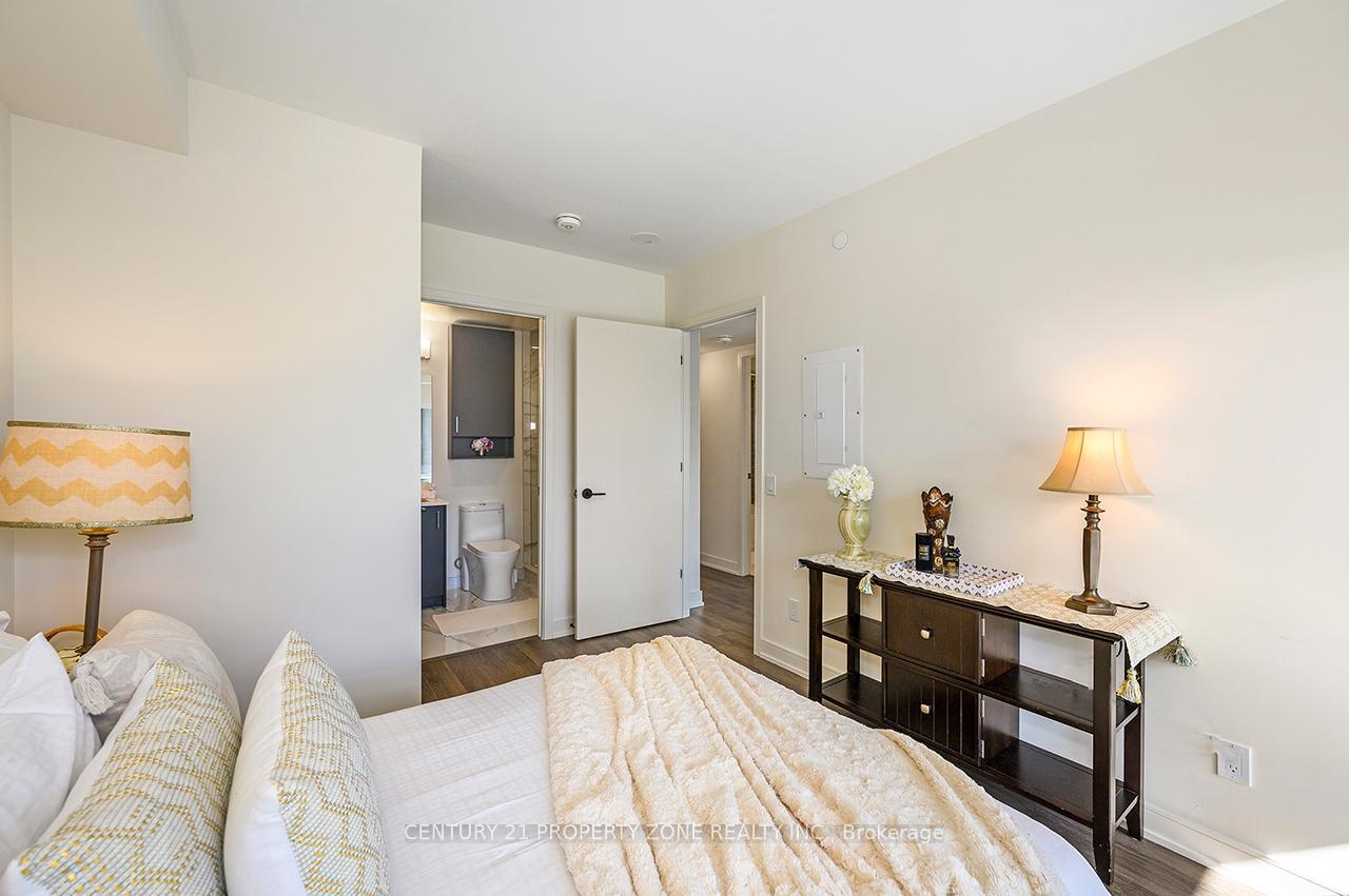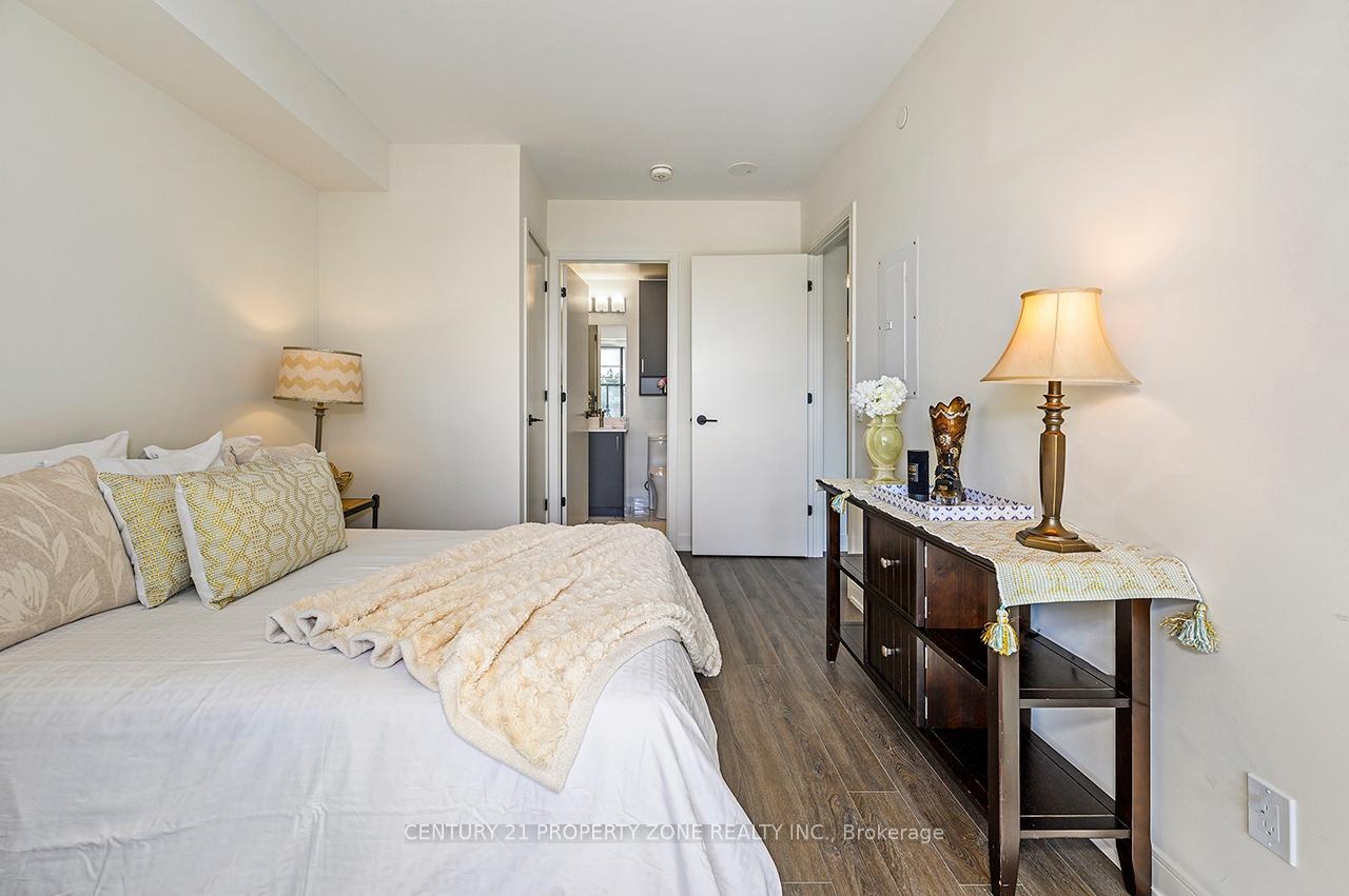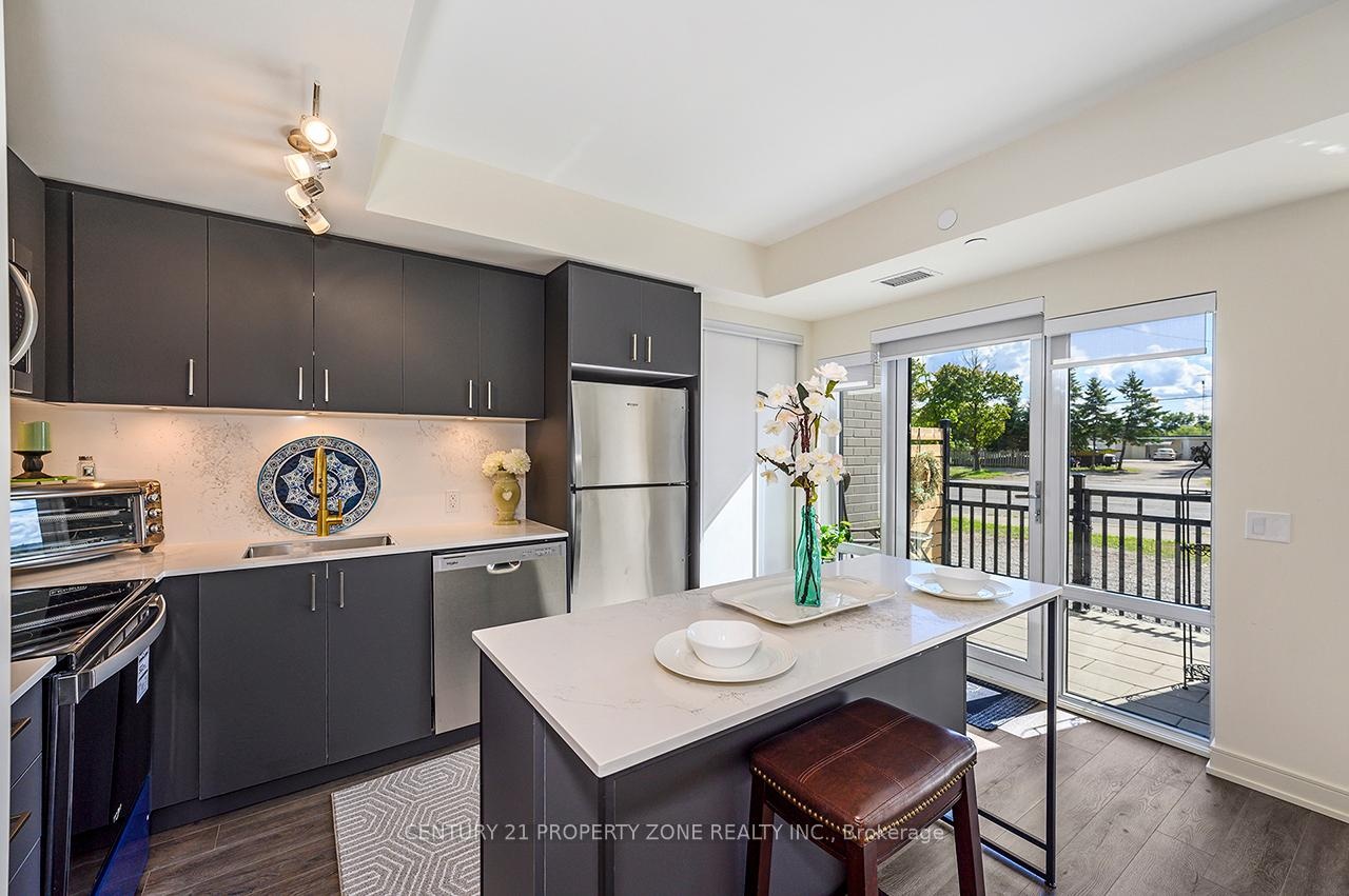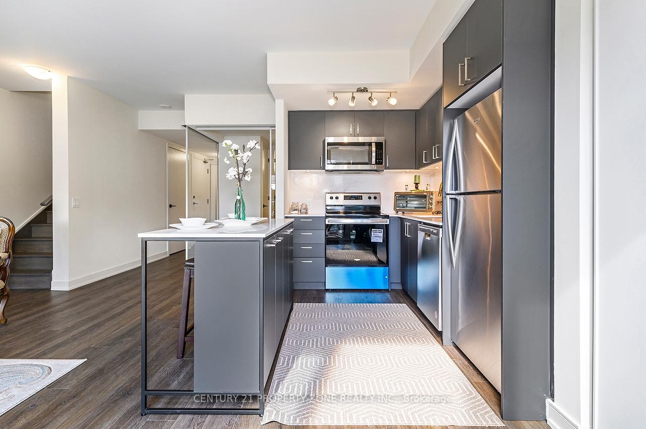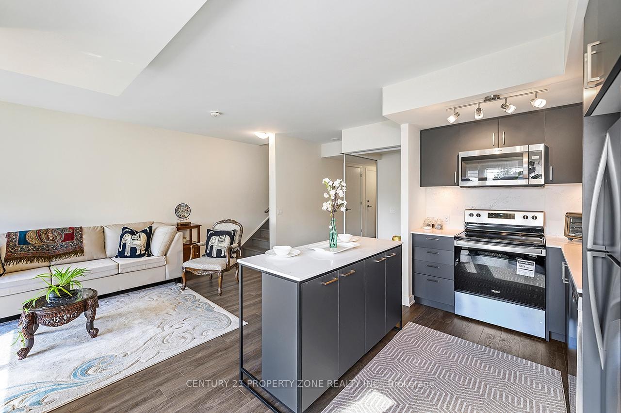Welcome to a stunning 3 Bedrooms + Den, 3-bathroom condo townhouse offering over 1,300 sq. ft. of modern living space, featuring $50K+ in premium upgrades. The sleek kitchen boasts quartz countertops, stainless steel appliances, and ample cabinetry, seamlessly flowing into an open-concept living and dining area-perfect for entertaining or relaxing with family. Thoughtfully designed with comfort and accessibility in mind, this home offers wider doors, bathroom grab bars, and *a main-floor bedroom with a full ensuite* - ideal for multi-generational families, guests. Upstairs, you'll find two spacious bedrooms (one with its own ensuite) and a versatile den, perfect for a home office or study. The bathrooms feature chic glass-enclosed showers, adding to the home's contemporary appeal. Enjoy hardwood floors throughout and access to premium building amenities, including a concierge, fitness centre, indoor/outdoor pools, rooftop terrace, and party rooms. Conveniently located near shops, Milton District Hospital, Milton Sports Centre, schools, and Milton GO Station, with easy access to Highways 401 and 407. A rare opportunity to own a stylish, functional, and accessible home in one of Milton's most desirable locations.
