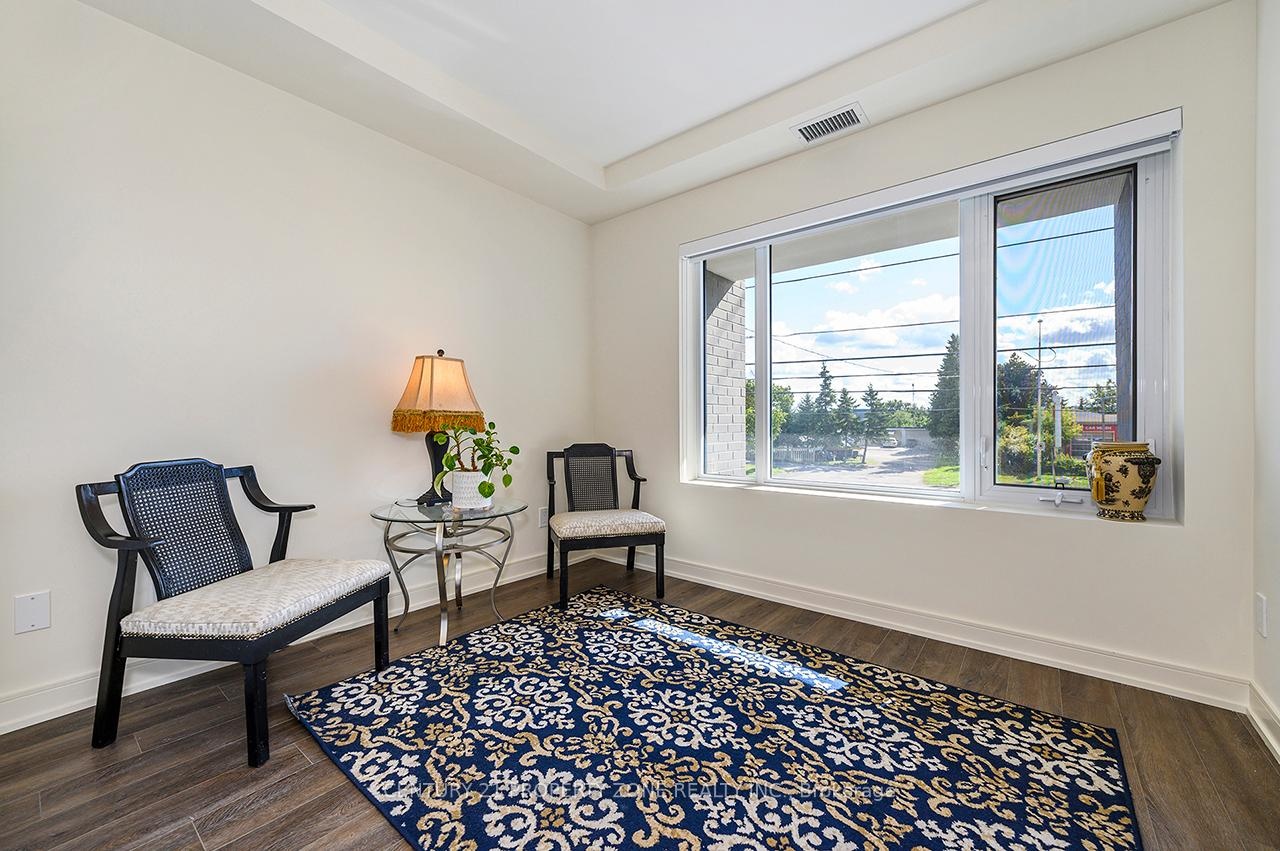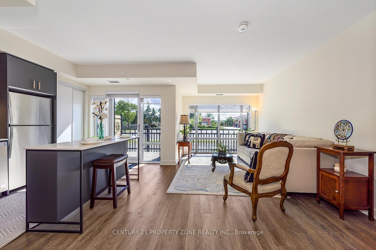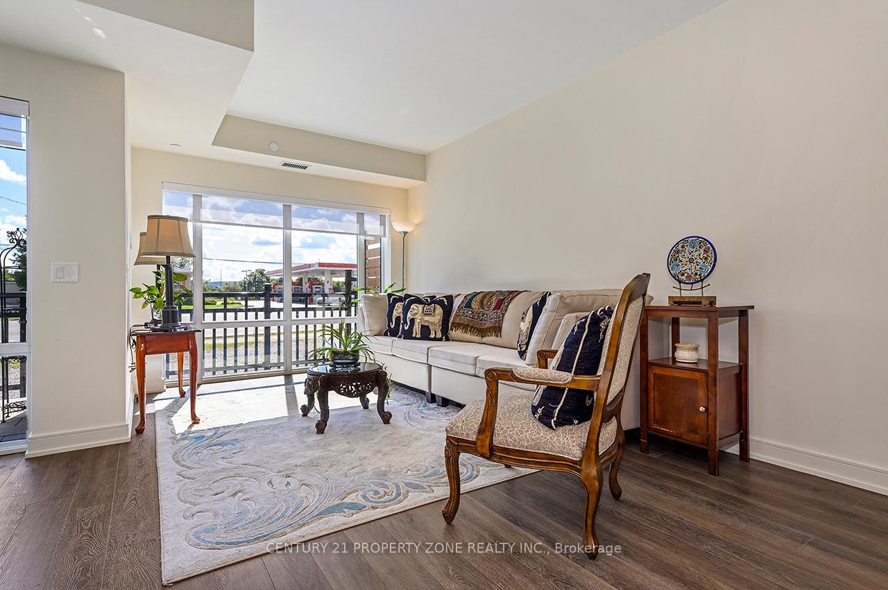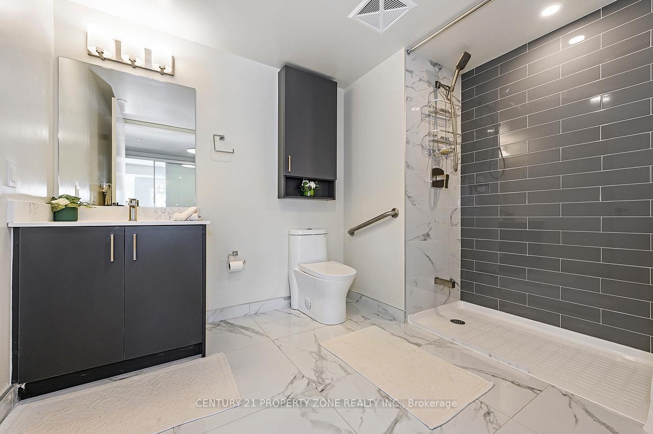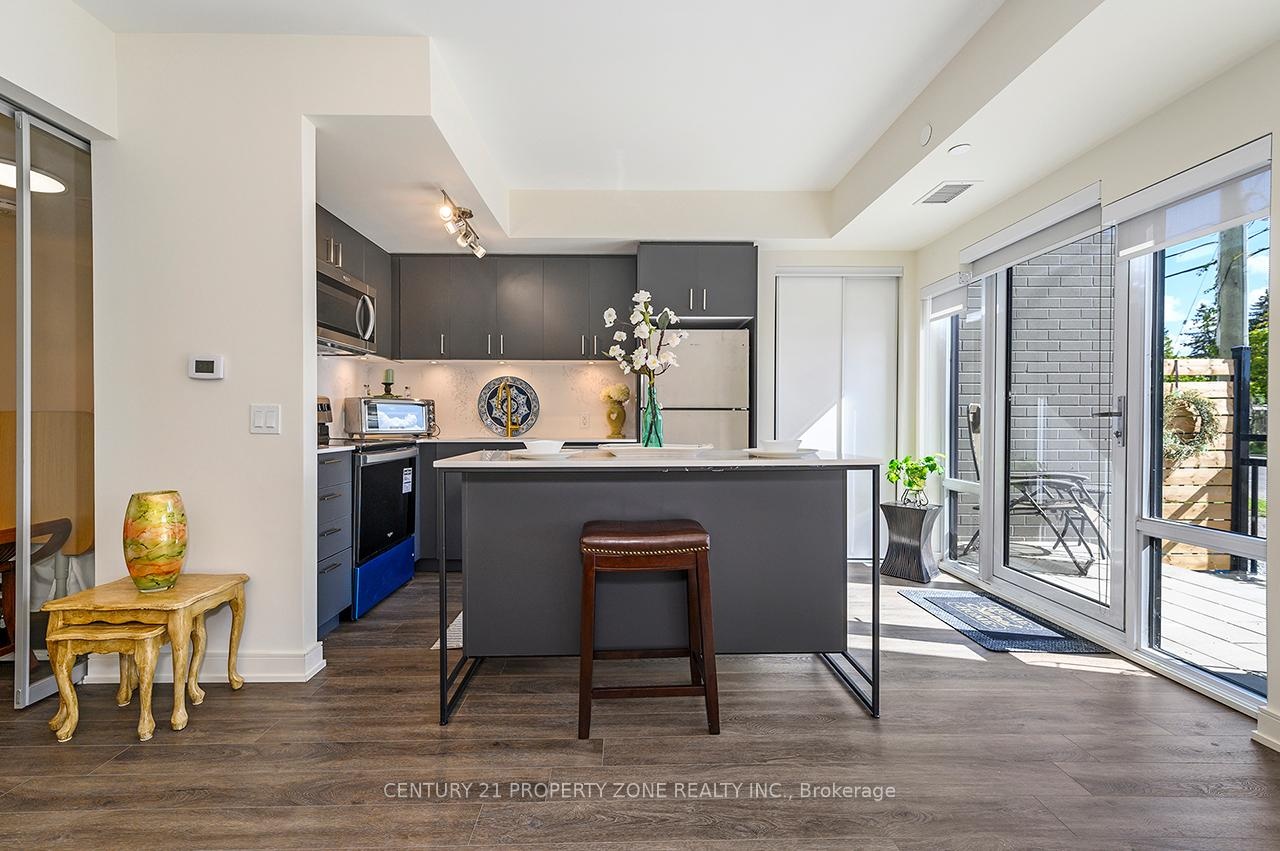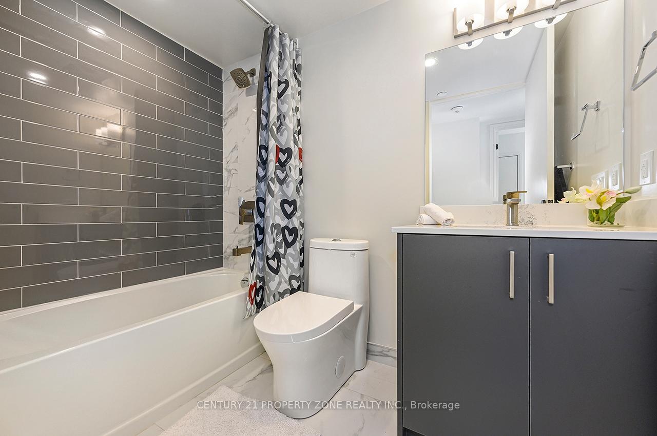 Welcome to a stunning 3 Bedrooms + Den, 3-bathroom condo townhouse offering over 1,300 sq. ft. of modern living space, featuring $50K+ in premium upgrades. The sleek kitchen boasts quartz countertops, stainless steel appliances, and ample cabinetry, seamlessly flowing into an open-concept living and dining area-perfect for entertaining or relaxing with family. Thoughtfully designed with comfort and accessibility in mind, this home offers wider doors, bathroom grab bars, and *a main-floor bedroom with a full ensuite* - ideal for multi-generational families, guests. Upstairs, you'll find two spacious bedrooms (one with its own ensuite) and a versatile den, perfect for a home office or study. The bathrooms feature chic glass-enclosed showers, adding to the home's contemporary appeal. Enjoy hardwood floors throughout and access to premium building amenities, including a concierge, fitness centre, indoor/outdoor pools, rooftop terrace, and party rooms. Conveniently located near shops, Milton District Hospital, Milton Sports Centre, schools, and Milton GO Station, with easy access to Highways 401 and 407. A rare opportunity to own a stylish, functional, and accessible home in one of Milton's most desirable locations.