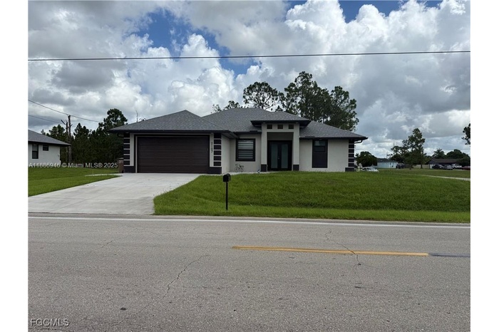 Beautiful 2023 corner home with NO HOA! This spacious 3-bedroom + den, 2-bath property features a 2-car garage, impact windows & doors, and modern curtains throughout. The screened-in terrace overlooks a large backyard with plenty of space for a pool. The primary suite includes his & hers closets, a double vanity, and a sleek shower. The kitchen offers stainless steel appliances, a pantry, and elegant finishes. All bedrooms have ample closet space. Enjoy the convenience of a laundry room, sprinkler system, and a modern open layout ideal for comfortable living and entertaining.