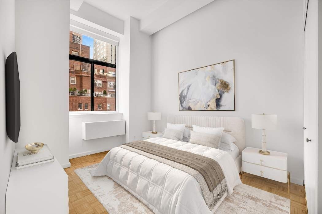 Step into this extremely unique one bedroom plus standing sleep loft/home office residence in the heart of Midtown in one of the most coveted pre-war loft buildings. This turnkey freshly painted home boasts soaring 12.5-foot beamed ceilings, open bright eastern exposure, modern finishes throughout including motorized shades for your double height windows, custom lighting and built-in closets adding a touch of sophistication and functionality throughout the home.