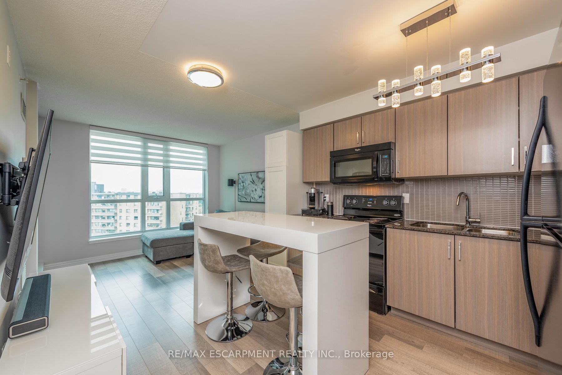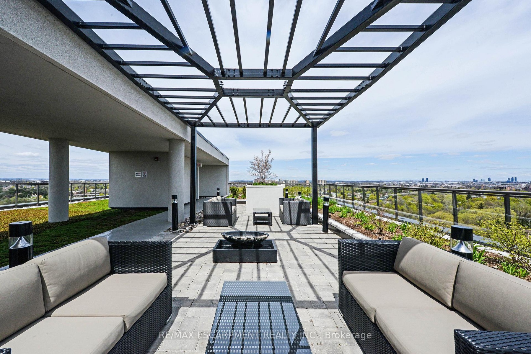 Luxury living with breathtaking views at Cloud 9 Condos! Experience modern elegance in this bright and spacious 1 Bedroom + Den suite, beautifully appointed with premium laminate flooring and designer lighting throughout. The open-concept layout features a stylish kitchen with granite countertops, glass tile backsplash, double sink, and a center island - perfect for both cooking and entertaining. Enjoy stunning sunset views from your private balcony overlooking peaceful green space, a true extension of your living area. The primary bedroom boasts large windows, a double-door closet, and a second walkout to the balcony, filling the space with natural light. The spa-inspired bathroom offers an updated vanity and a beautifully tiled tub/shower combination for your relaxation. The versatile den provides ample space for a home office, hobby area, or reading nook-ideal for today's lifestyle. Residents enjoy award-winning amenities including a rooftop terrace with breathtaking views, indoor pool, fitness centre, party room, and 24-hour Concierge. **EXTRAS** Parking and locker included. Pride of ownership - this unit truly impresses! Prime Location with steps to shopping, schools, restaurants, transit, and minutes to highways and Pearson Airport.