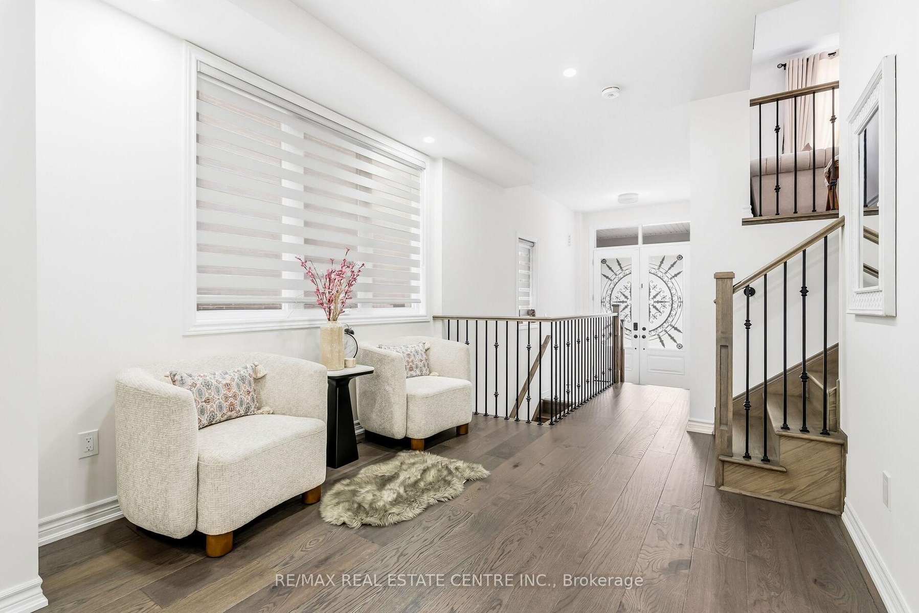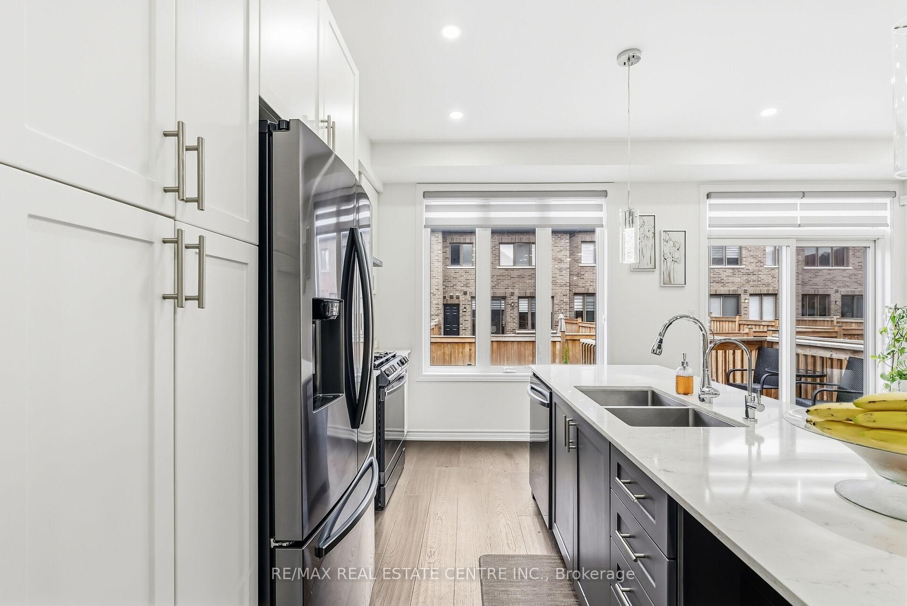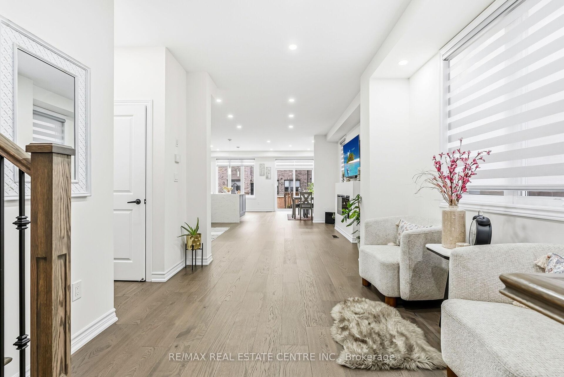 Stunning semi-detached home built by Country Homes, less than 5 years old and impeccably maintained-feels like new! Featuring 3+1 bedrooms, 3.5 baths, Separate Family Rm, and a spacious 2667 sq ft layout including a 647 sq ft builder-finished basement with a separate entrance, bedroom, kitchen, and full bath-ideal for in-laws or rental potential. Elegant double door entry opens to a bright, open-concept main floor with soaring 9' ceilings, oak staircase, and over $50K in builder upgrades, including quartz countertops, extended-height cabinets, chimney hood fan, custom pantry, upgraded flooring, and a cozy gas fireplace. The chef's kitchen boasts a large island with BBQ gas line for indoor-outdoor entertaining. Enjoy a premium lot with extended driveway, no sidewalk, concrete patio in backyard, and large storage space in the basement. Located in a growing family-friendly neighbourhood close to schools, parks, and amenities. A perfect blend of luxury, space, and function, Must See!