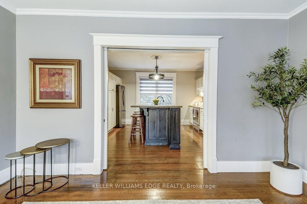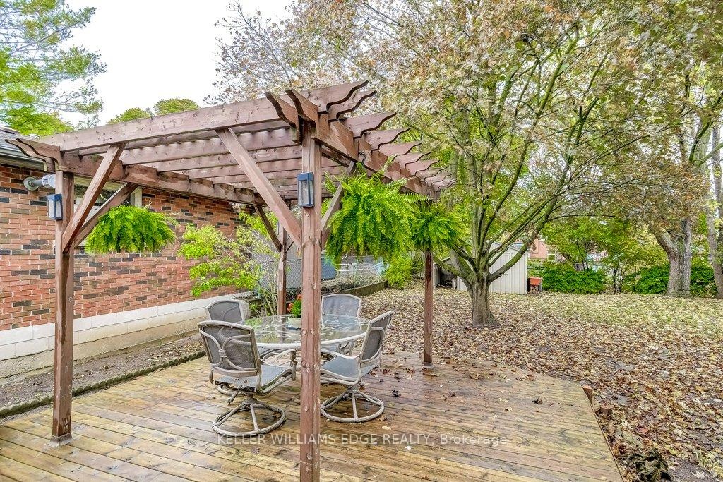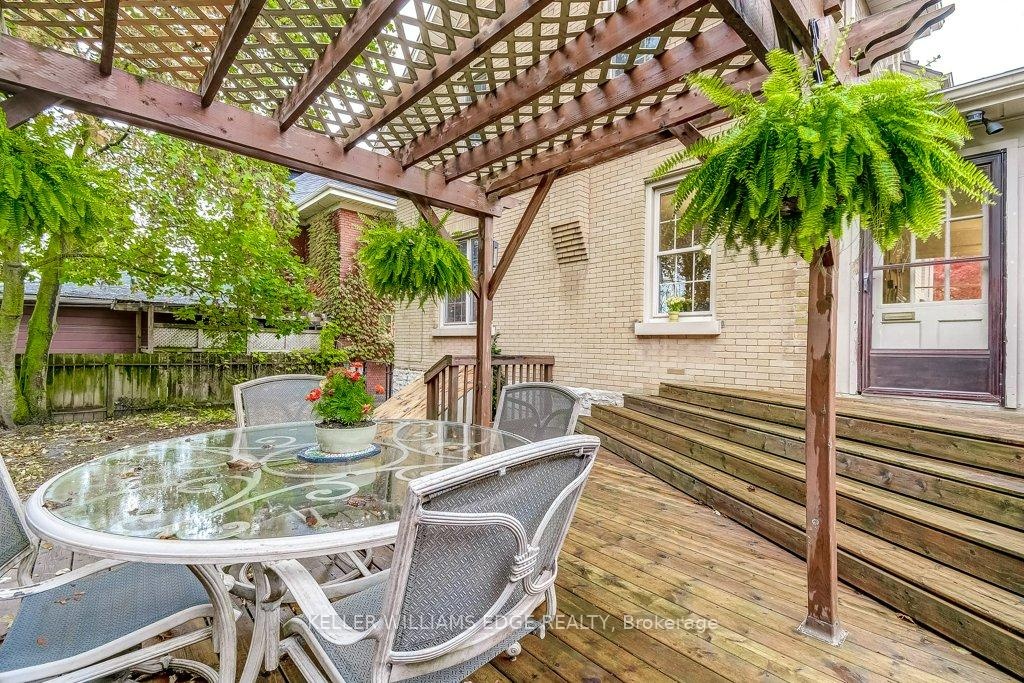 Bright 3 + 1 BR family home full of charm & character. Fresh, neutral decor, H/W floors, crown molding. Kit w/ butcher block counters & granite top island. Separate DR w/ wainscotting. LR w/ gas FP & original pocket doors. 4 pc spa-like bath. W/O from 3 season sunroom to 20 x 16 deck with pergola. Fin L/L w/ workshop and walk-up. Private yard backs onto old lane. Storage shed. Quiet tree-lined street in desirable Henderson/Homedale area. Co-Listed with Lizanna Koster Real Estate Brokerage