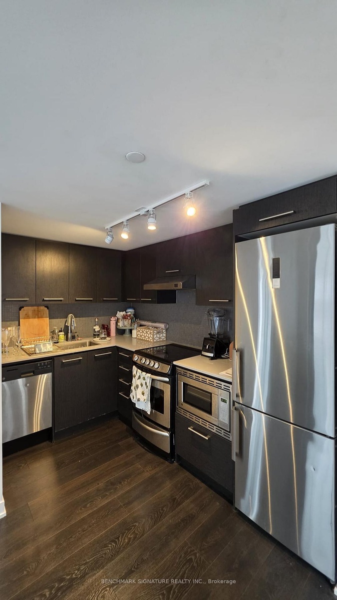 Bright and functional 1-bedroom suite at 87 Peter, located in the heart of the Entertainment District. Southeast-facing with wall-height windows that bring in soft natural light. Modern kitchen with dark cabinetry with stainless steel appliances, and backsplash. Efficient layout with contemporary finishes throughout. Enjoy premium amenities: 24-hour concierge, fitness centre, spa, party room, and rooftop terrace with BBQs. Steps to TTC, PATH, restaurants, Rogers Centre, and the Financial District. Ideal for professionals seeking downtown convenience.