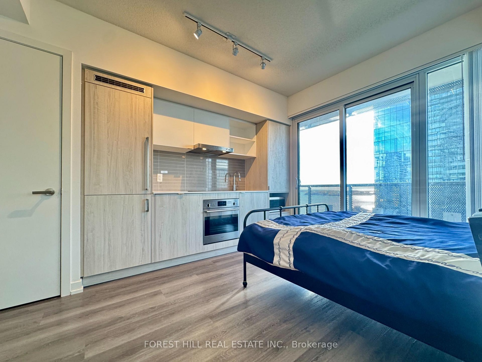 Luxury Sugar Wharf condo built by Menkes. Bright SOUTH facing studio right at the waterfront (one locker included). Open concept combine living/dining/kitchen. Large balcony with south lake view. 9Ft ceilings, floor-to-ceiling windows, and a sleek modern kitchen equipped with premium Miele built-in appliances and quartz countertops. Amenities are truly a must-see, featuring one of the largest gyms in the city, "UNITY" Fitness, which includes Aerobic studio, Spinning Room, Basketball Court and indoor lap pool. Other features include landscaped outdoor terrace with BBQs, social lounge, three theatres, music room, party room with kitchen and bar, and an indoor hammock lounge. WiFi is available in all amenity areas. Walk to Union Station, Farm Boy, Loblaws, LCBO, George Brown College, St. Lawrence Market, and Sugar Beach. Direct access to future PATH underground network. 93 Walk Score and 96 Bike Score.