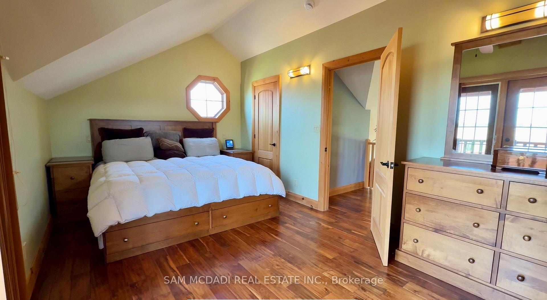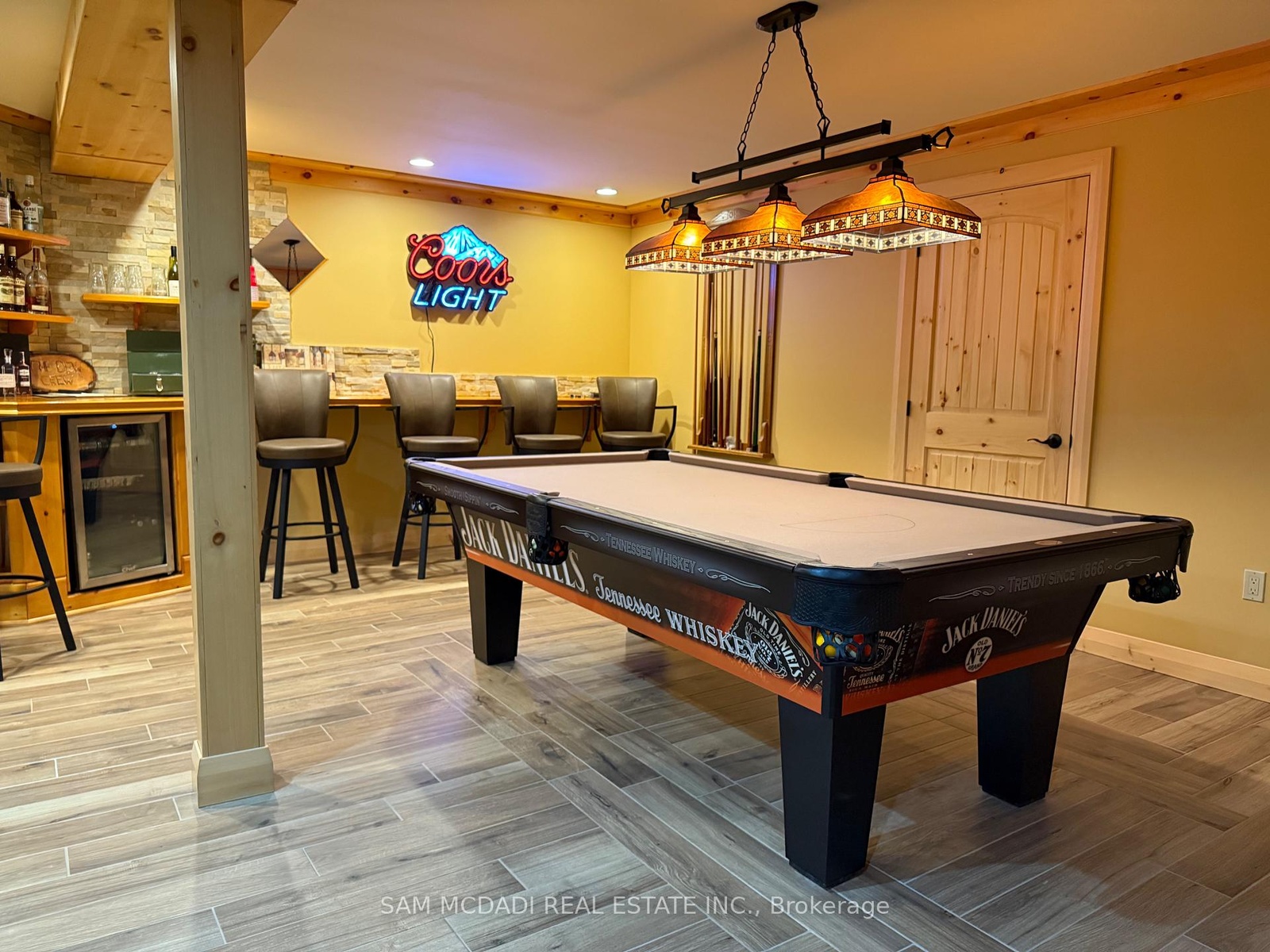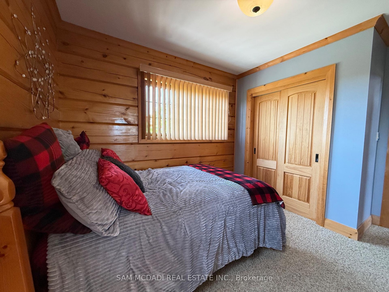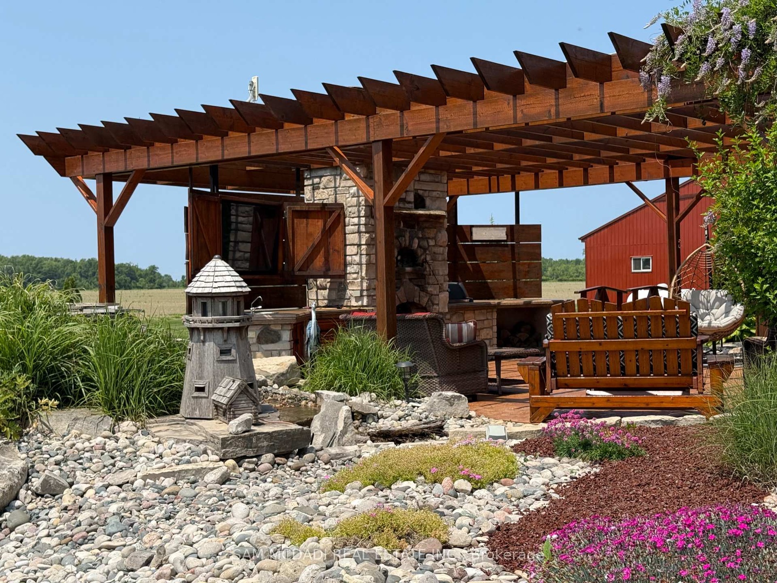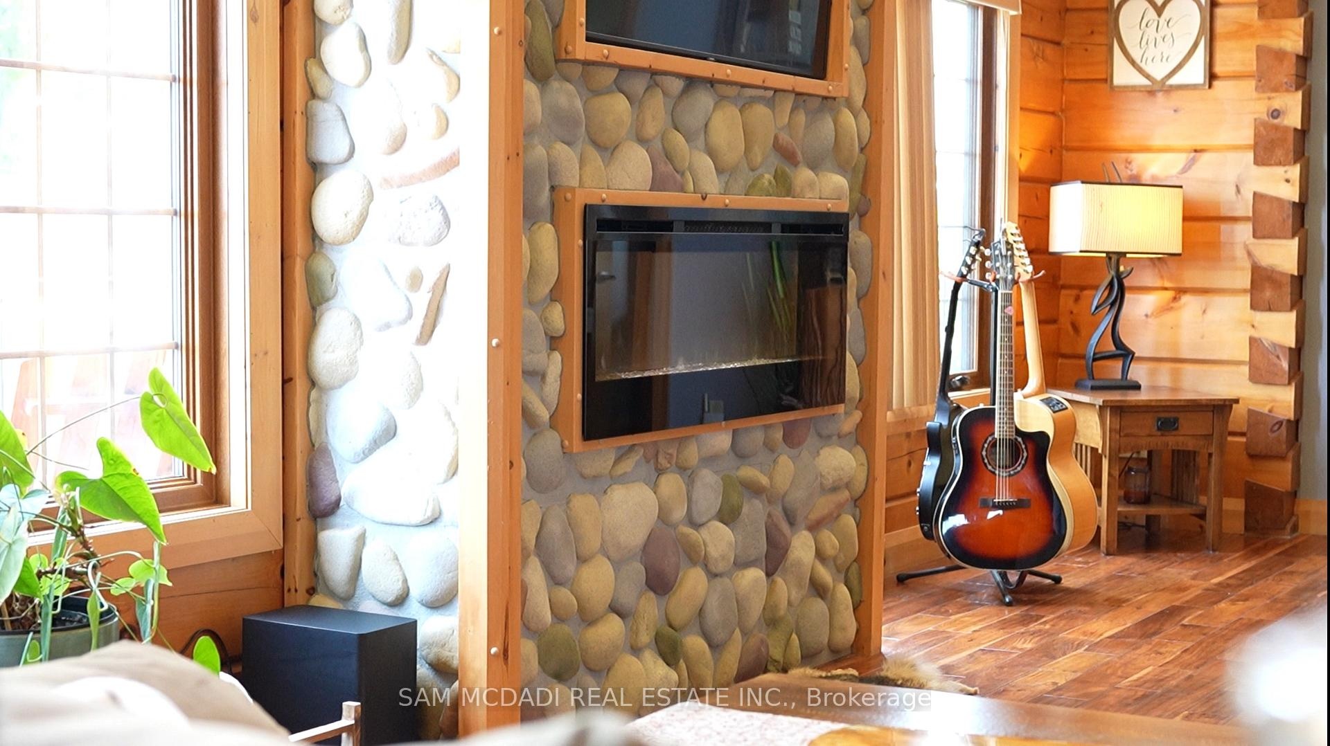 Welcome to this truly one-of-a-kind, custom-built log-style home set on a sprawling private lot - where rustic charm meets modern luxury. Perfectly situated just minutes from Grand Bend, Pinery Provincial Park, and Ipperwash Beach, this property is ideal as a full-time residence, weekend retreat, or investment getaway.Step inside to discover a stunning open-concept design highlighted by soaring 20-ft cathedral ceilings, heated floors on all levels, and abundant natural light. The finished lower level is an entertainer's dream - complete with a spacious recreation area, two additional bedrooms, a custom bar, and a pool table.Enjoy seamless indoor-outdoor living with a 12' x 49' back deck featuring a built-in outdoor kitchen, wood-fired pizza oven, and relaxing hot tub - all overlooking peaceful, tree-lined surroundings. The beautifully landscaped grounds include a decorative rock garden, water fountain, and inviting front porch for morning coffee.Recent upgrades include new windows (2022), dual A/C units for the main floor and loft (2023), and a new boiler (2023). A heated 3,710 sq.ft. workshop offers exceptional space for hobbies, business use, or storage. With both municipal and well water available, this property checks every box for comfort, versatility, and lifestyle appeal.