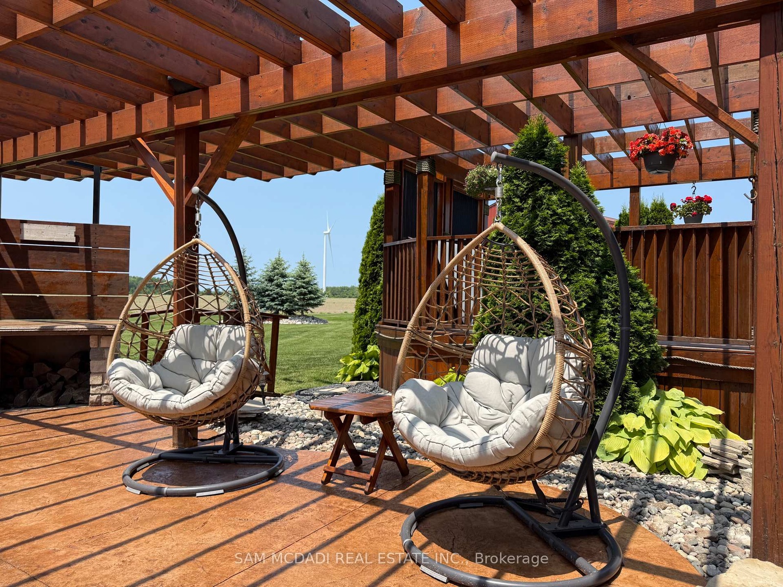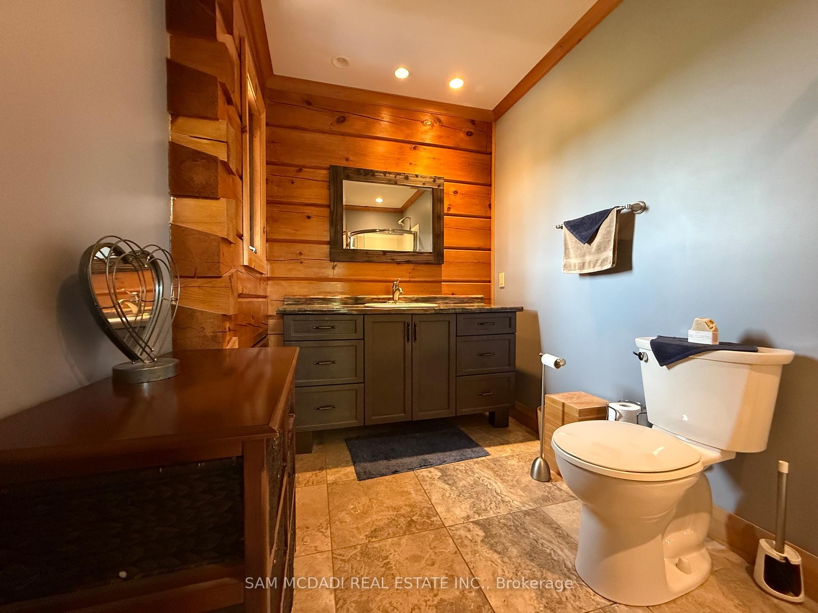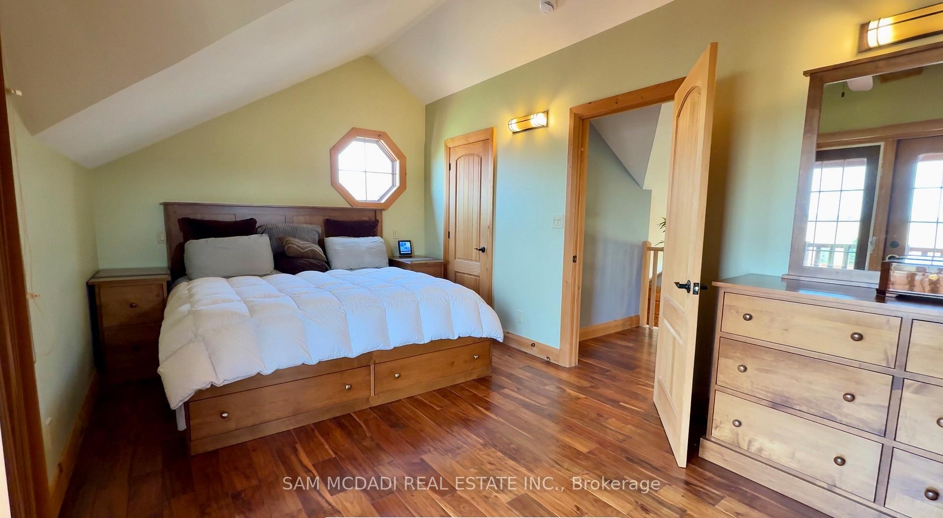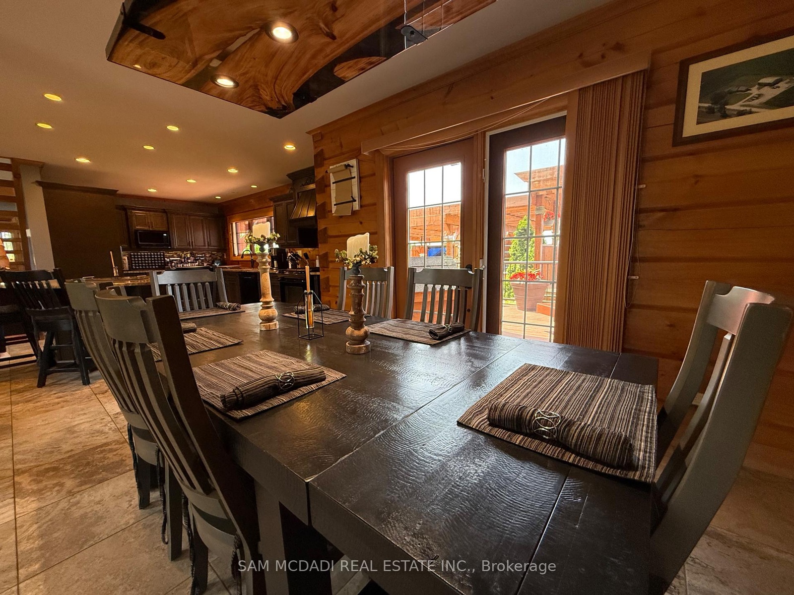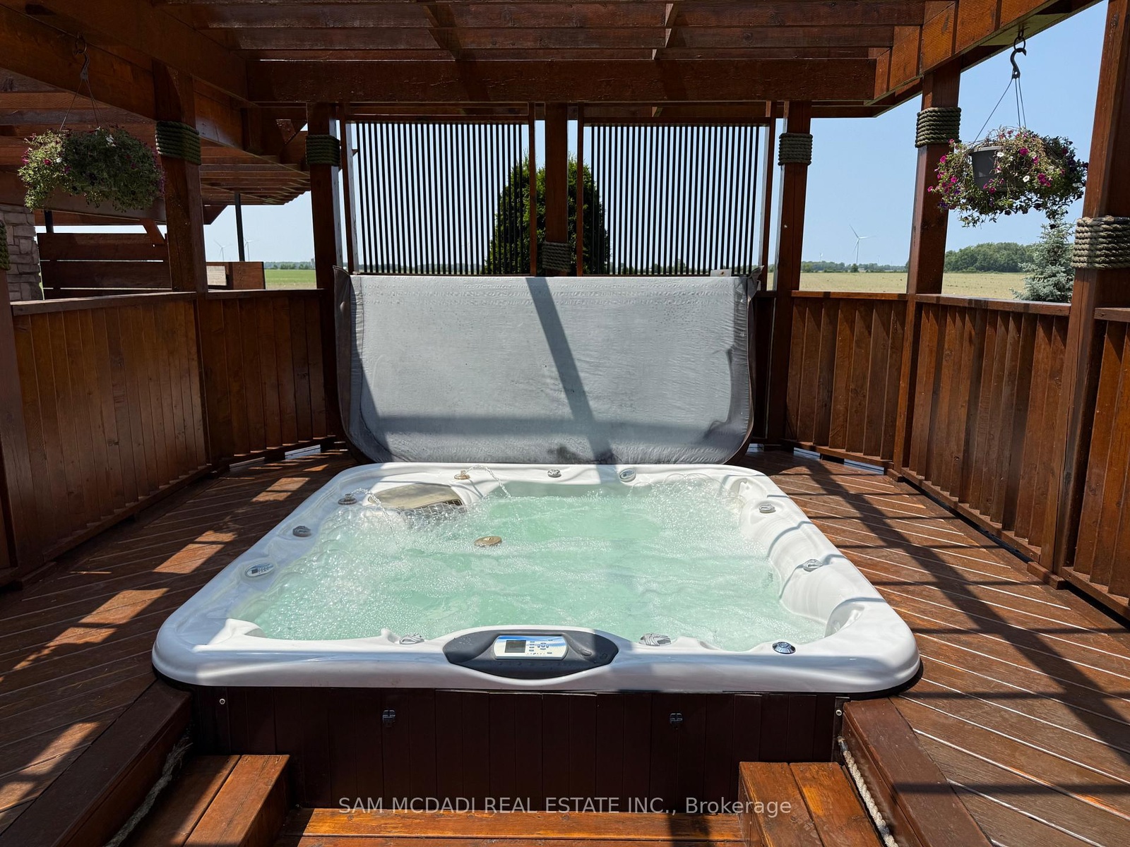 Welcome to this truly one-of-a-kind, custom-built log-style home set on a sprawling private lot - where rustic charm meets modern luxury. Perfectly situated just minutes from Grand Bend, Pinery Provincial Park, and Ipperwash Beach, this property is ideal as a full-time residence, weekend retreat, or investment getaway.Step inside to discover a stunning open-concept design highlighted by soaring 20-ft cathedral ceilings, heated floors on all levels, and abundant natural light. The finished lower level is an entertainer's dream - complete with a spacious recreation area, two additional bedrooms, a custom bar, and a pool table.Enjoy seamless indoor-outdoor living with a 12' x 49' back deck featuring a built-in outdoor kitchen, wood-fired pizza oven, and relaxing hot tub - all overlooking peaceful, tree-lined surroundings. The beautifully landscaped grounds include a decorative rock garden, water fountain, and inviting front porch for morning coffee.Recent upgrades include new windows (2022), dual A/C units for the main floor and loft (2023), and a new boiler (2023). A heated 3,710 sq.ft. workshop offers exceptional space for hobbies, business use, or storage. With both municipal and well water available, this property checks every box for comfort, versatility, and lifestyle appeal.