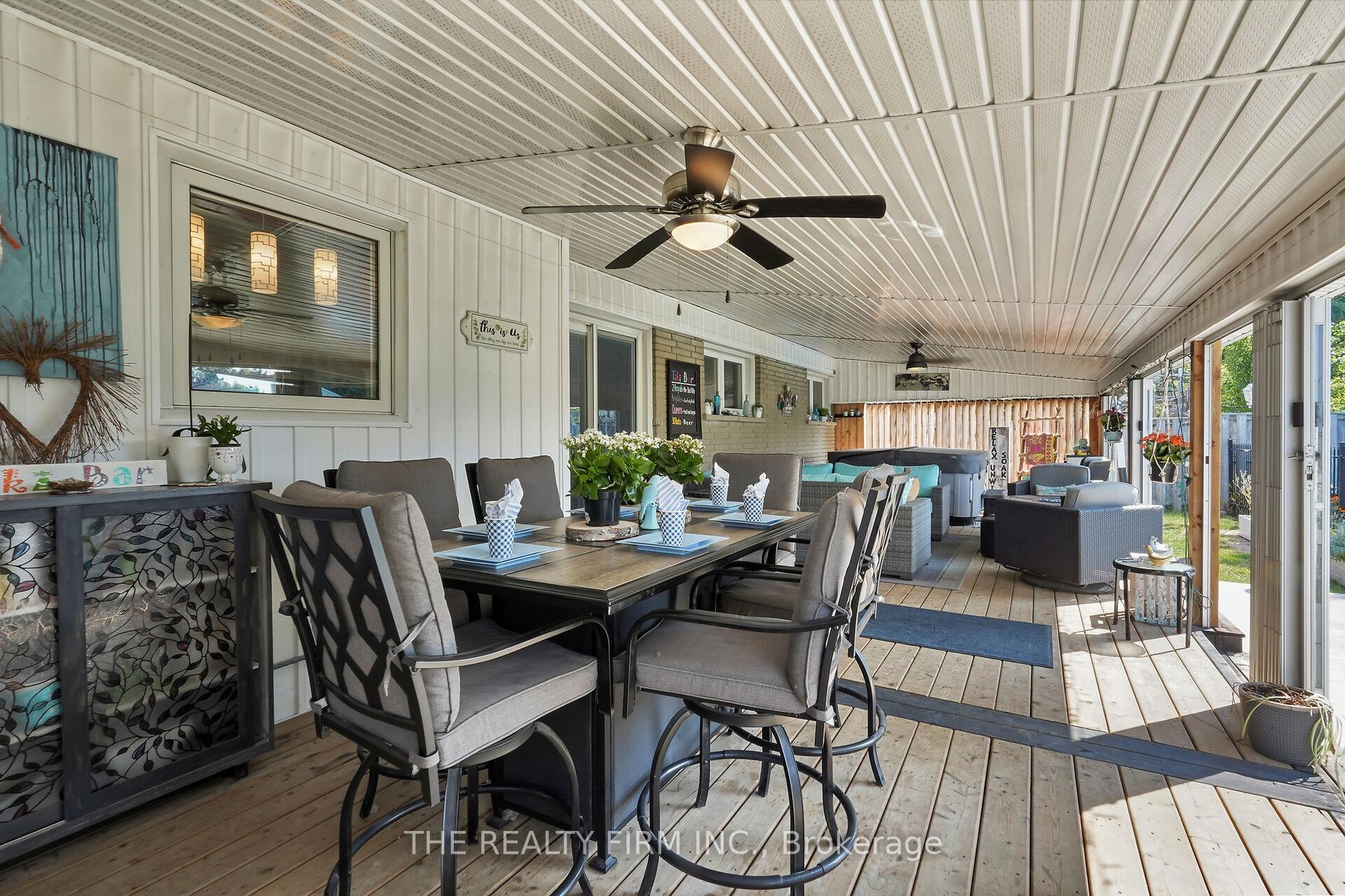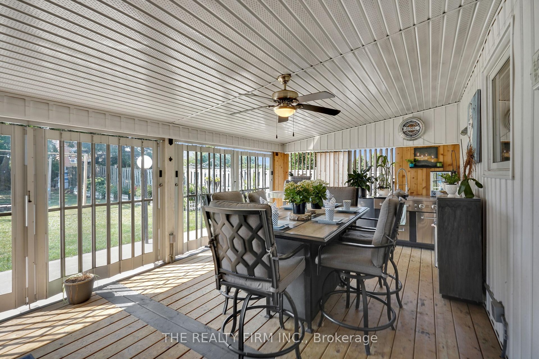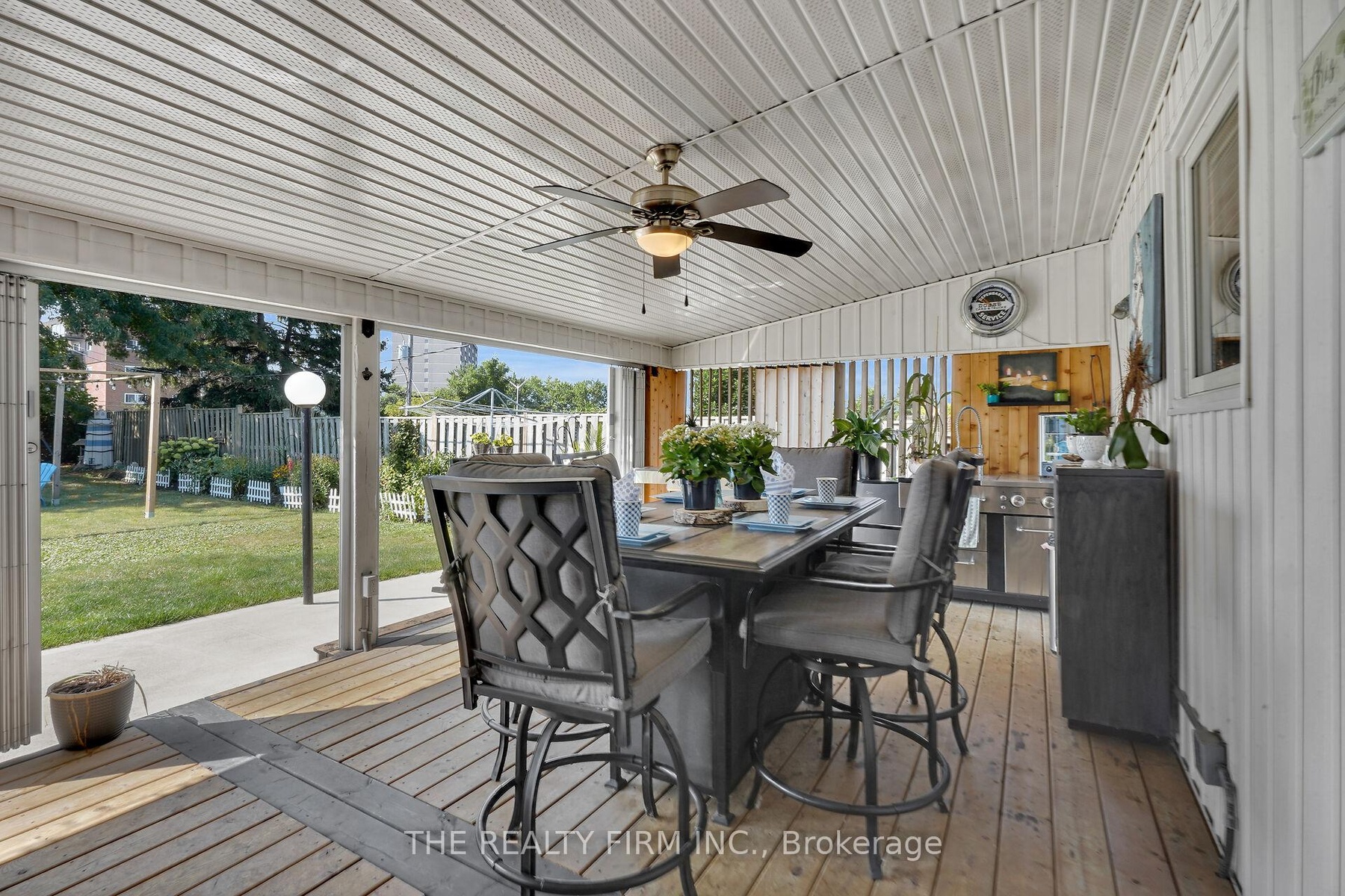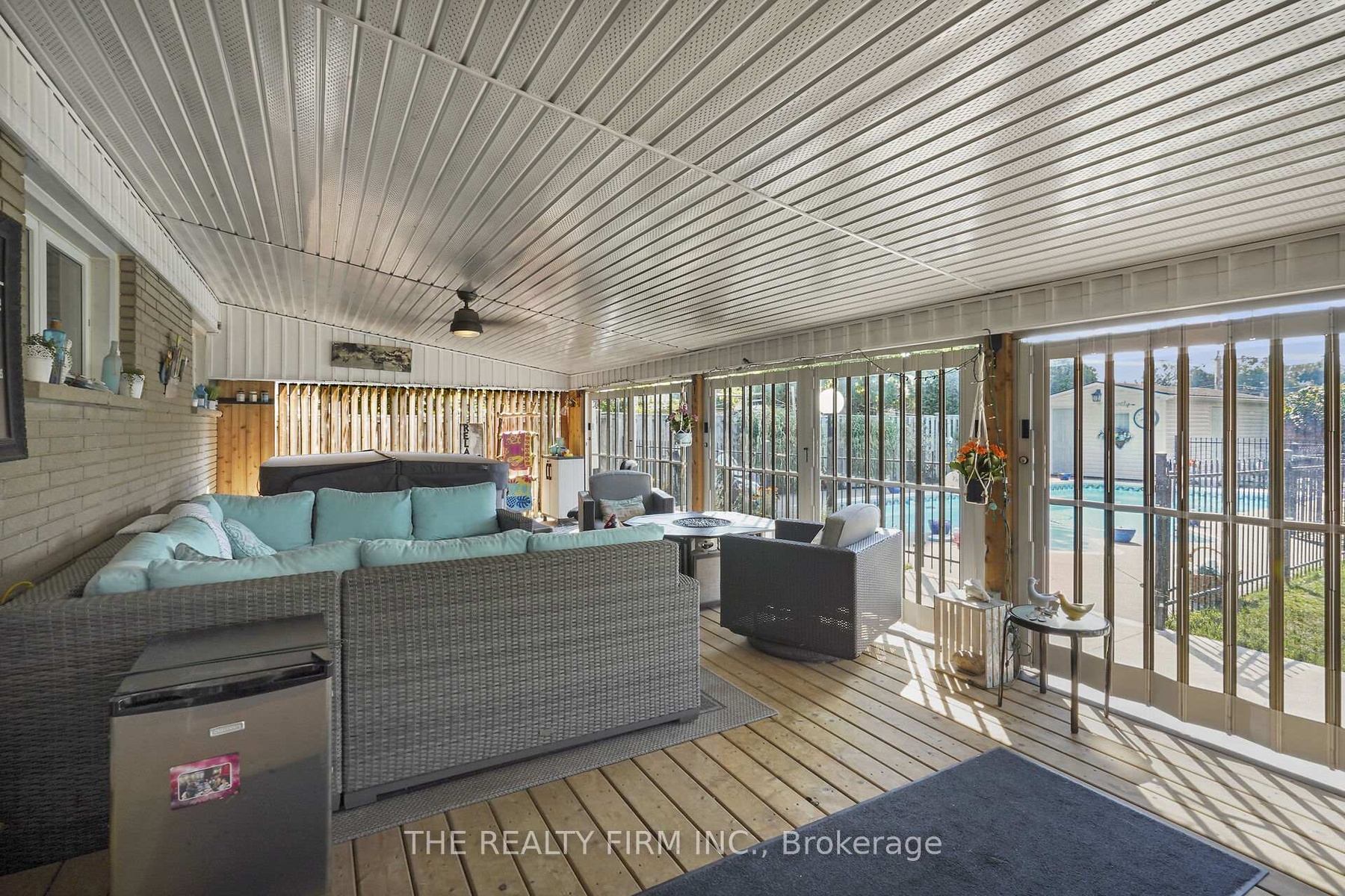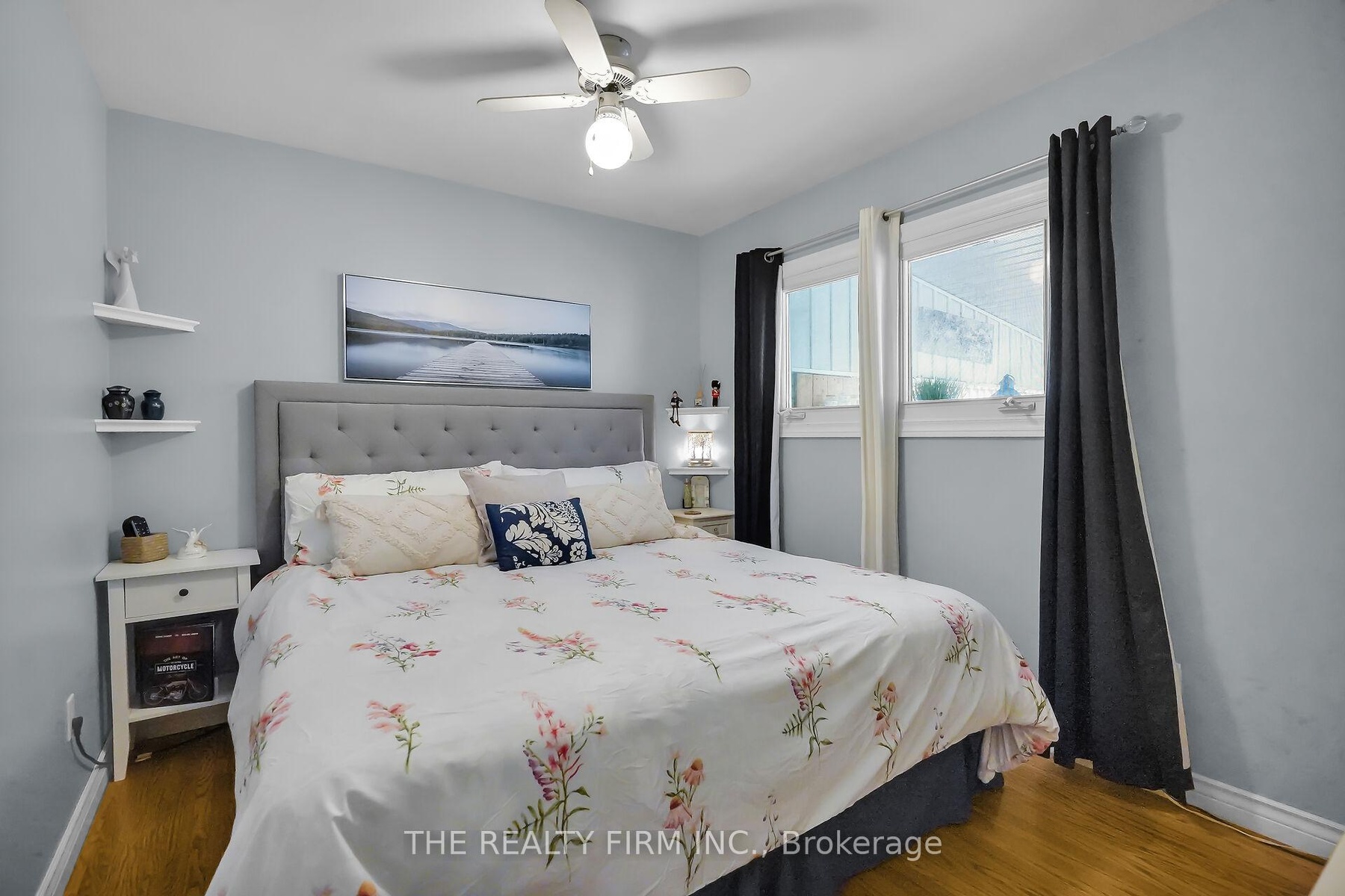 Welcome to this beautifully maintained all-brick one-storey home that blends classic charm with extensive updates for modern living. Situated on a large, private lot with a fenced-in pool, this property is perfect for families or anyone who enjoys both comfort and entertaining. The home offers three bedrooms, two full bathrooms, and a spacious single garage, along with thoughtful upgrades inside and out. Step into the inviting living room, where a wood-burning fireplace creates a cozy focal point, complemented by California shutters and durable water-repellent, non- slip flooring installed in 2013. The bright and expansive galley kitchen features plenty of cabinetry, 2021 dishwasher, and a 2013 patio door with built-in blinds that opens to a 3-season sunroom overlooking the pool. Hardwood floors in the bedrooms add warmth and character, while the fully renovated main-floor bathroom provides a modern touch.The finished lower level includes a large rec room, second full bath, and convenient laundry area with washer and dryer. With carpeting and underlay updated in 2007, this versatile space is ideal for family gatherings, a playroom, or a home office. One of the homes standout features is the impressive three-season sunroom, rebuilt with glass bifold doors in 2022, offering more than 40 feet of space for relaxation and entertaining. Outside, the backyard is a private oasis with a 10-foot deep in-ground bromine pool, featuring a safety cover, heater, liner (2017), pump (2015), and brand-new sand filter (2025). Concrete walkways (2019, 2022), custom railings, and a side security entrance enhance both curb appeal and function. Major mechanicals and updates provide peace of mind, including furnace and humidifier (2020), central air (2022), garage door opener (2021), and 40-year shingles. With neutral décor, a large yard, and proximity to highways, hospitals, and amenities, this home is move-in ready and offers a rare combination of indoor comfort and outdoor enjoyment.