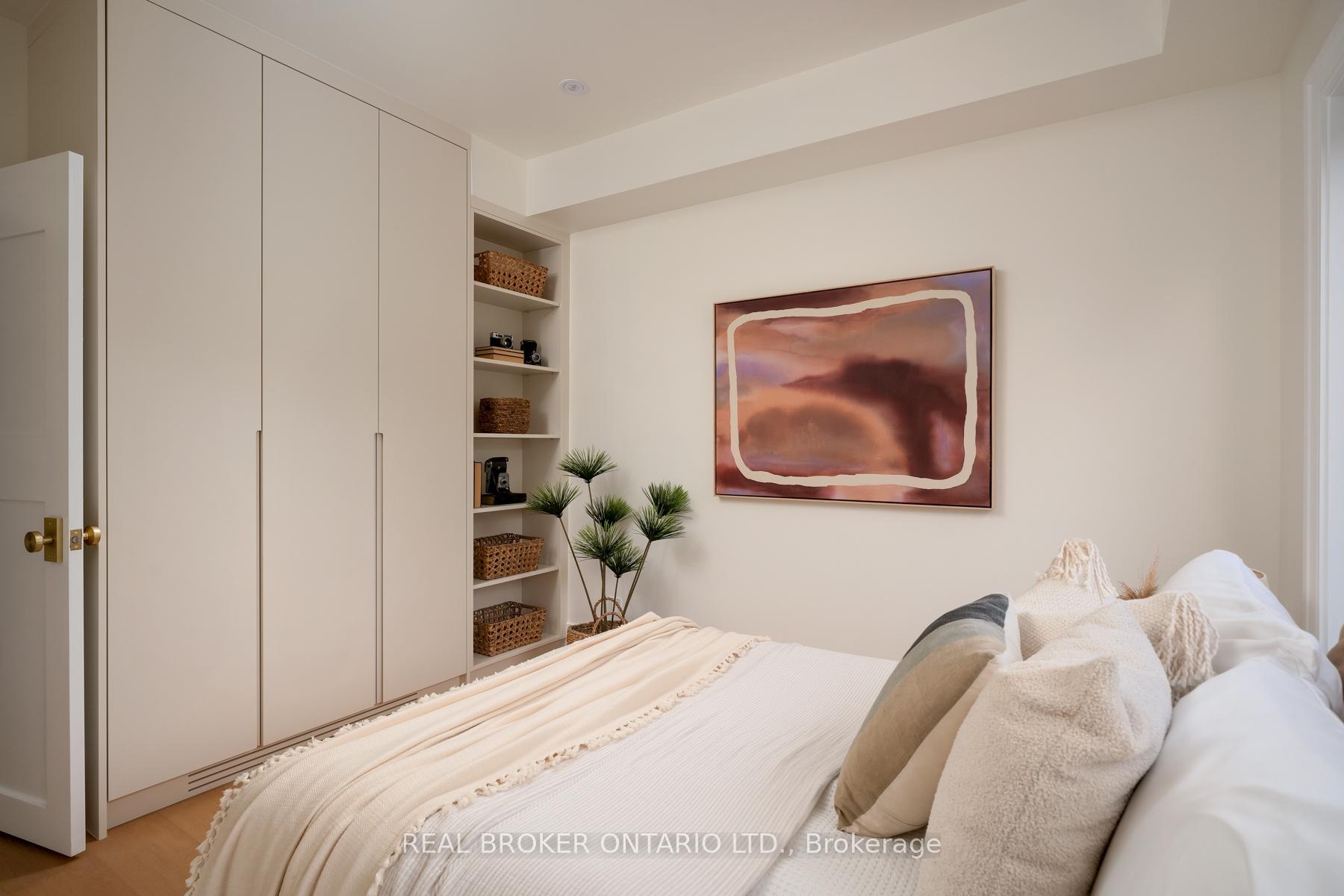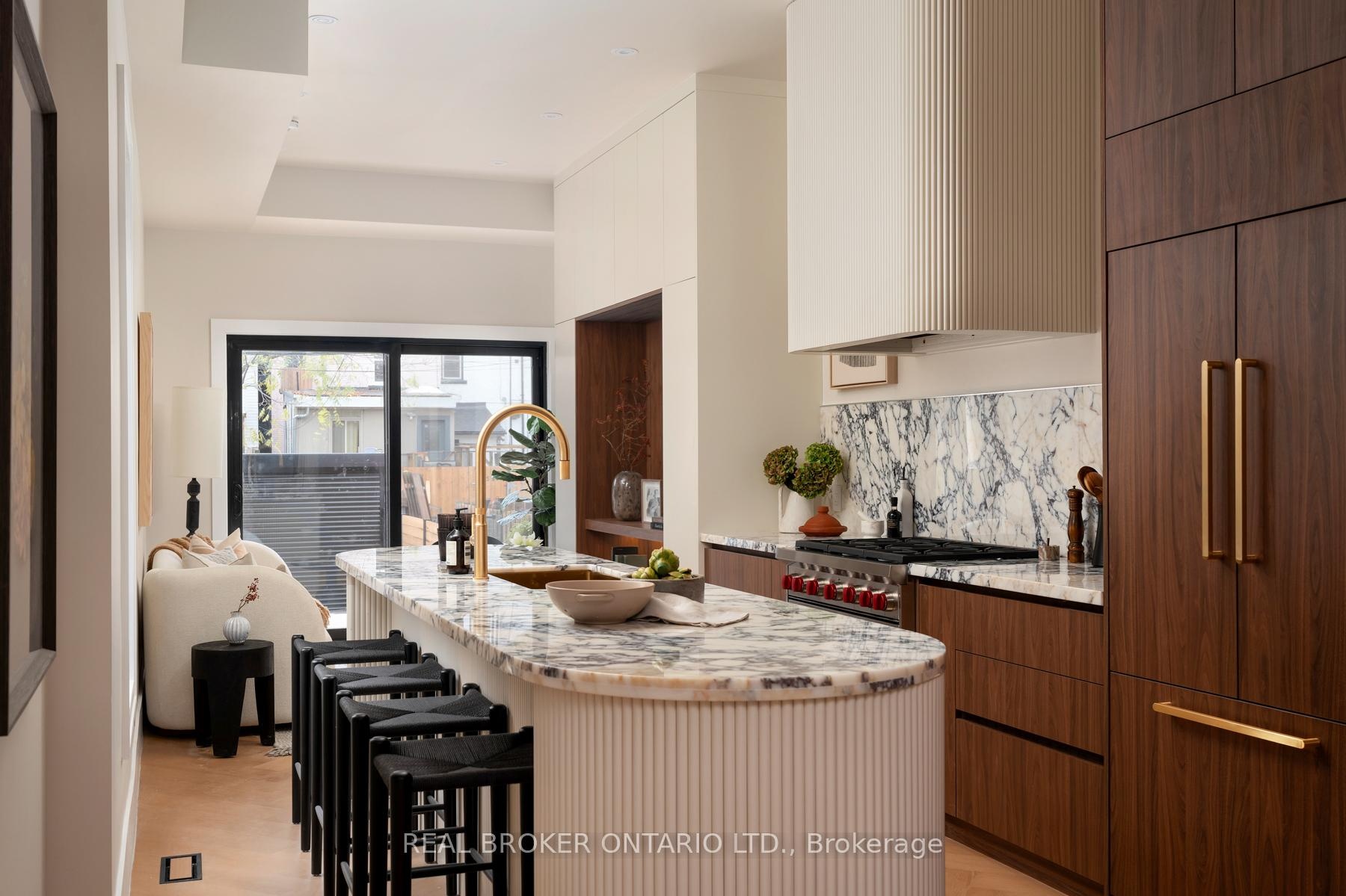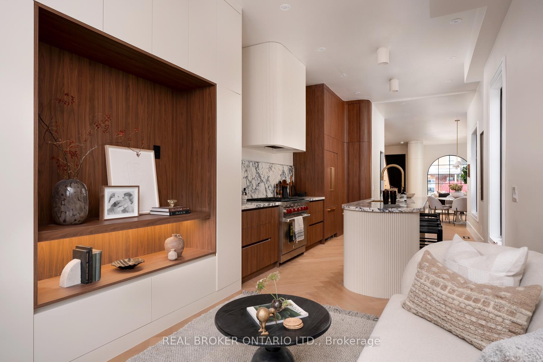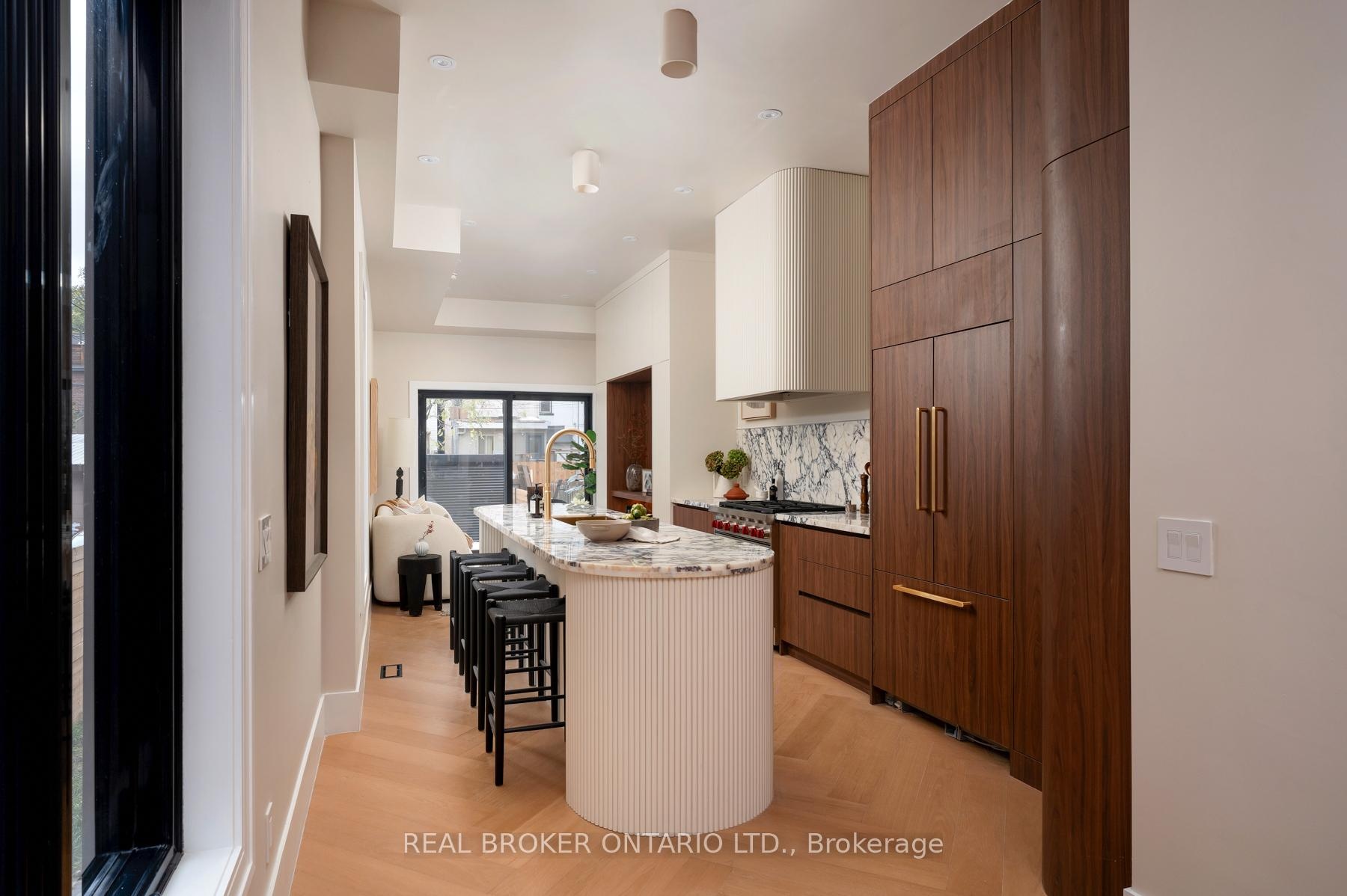Historic Charm Meets Modern Mastery & flawless design in this 1900s home reimagined, Professionally designed & complete with a newly added third storey that turns everyday living into elevated luxury. Main Floor - Step inside to soaring 12-foot ceilings, a massive arched window flooding the home with light, and herringbone hardwood floors that set a timeless tone.A designer powder room with a floating toilet and imported custom marble vanity makes even the small details shine.The chef's kitchen blends soft architectural curves with bold masculinity - Wolf gas range, European appliances, and a marble countertop that demands attention.A custom-built family room anchors the back of the home, leading seamlessly to the deck and professionally landscaped yard. Second Floor - Space & Sophistication w Three generous bedrooms, each with custom built-in storage.The second bedroom features three stunning arched windows - an architectural nod to the home's heritage.The spa-like 5-piece bathroom feels lifted from a boutique hotel, while a style-forward laundry room adds functional flair. Third Floor - Private Primary Retreat with A full-floor sanctuary designed for serenity: his-and-her walk-through closets, built-in media and vanity desk & sitting area and a 5-piece designer ensuite with luxurious finishes.Walk out to a large private terrace with clear skyline views - the perfect escape for morning coffee or evening wine. Lower Level - Bonus Living in Finished basement with a rec room and 5th bedroom featuring a 3-piece ensuite - ideal for guests, nanny suite, or home office.Exterior Brick home with timeless curb appealand no stucco to be found. High-end Nuewal siding & Professionally landscaping front and back, Two-car laneway parking with custom garage door. Location - The Best of the Best Nestled in one of the city's most coveted pockets - steps to the subway, TTC, Yorkville, U of T, and Toronto's top shops, restaurants, and cafes.