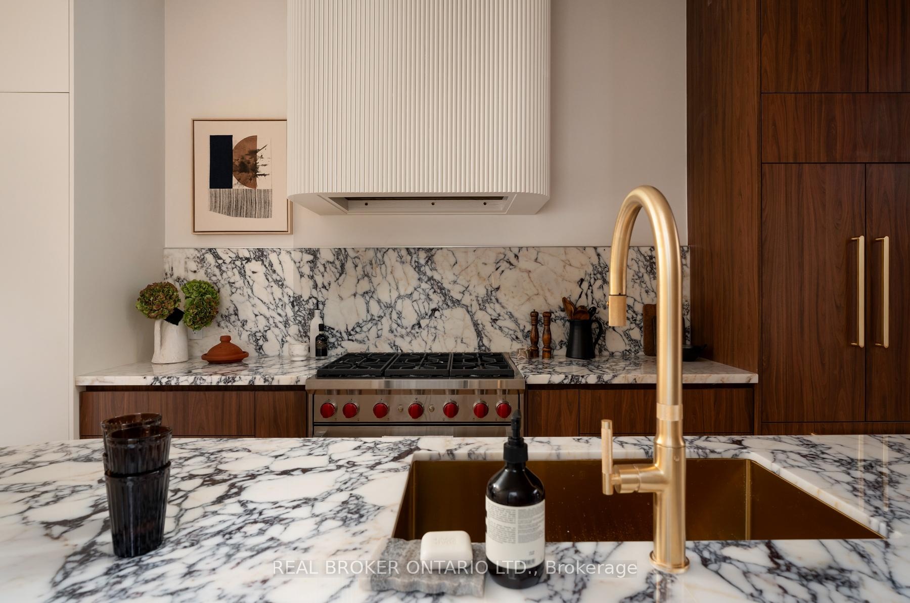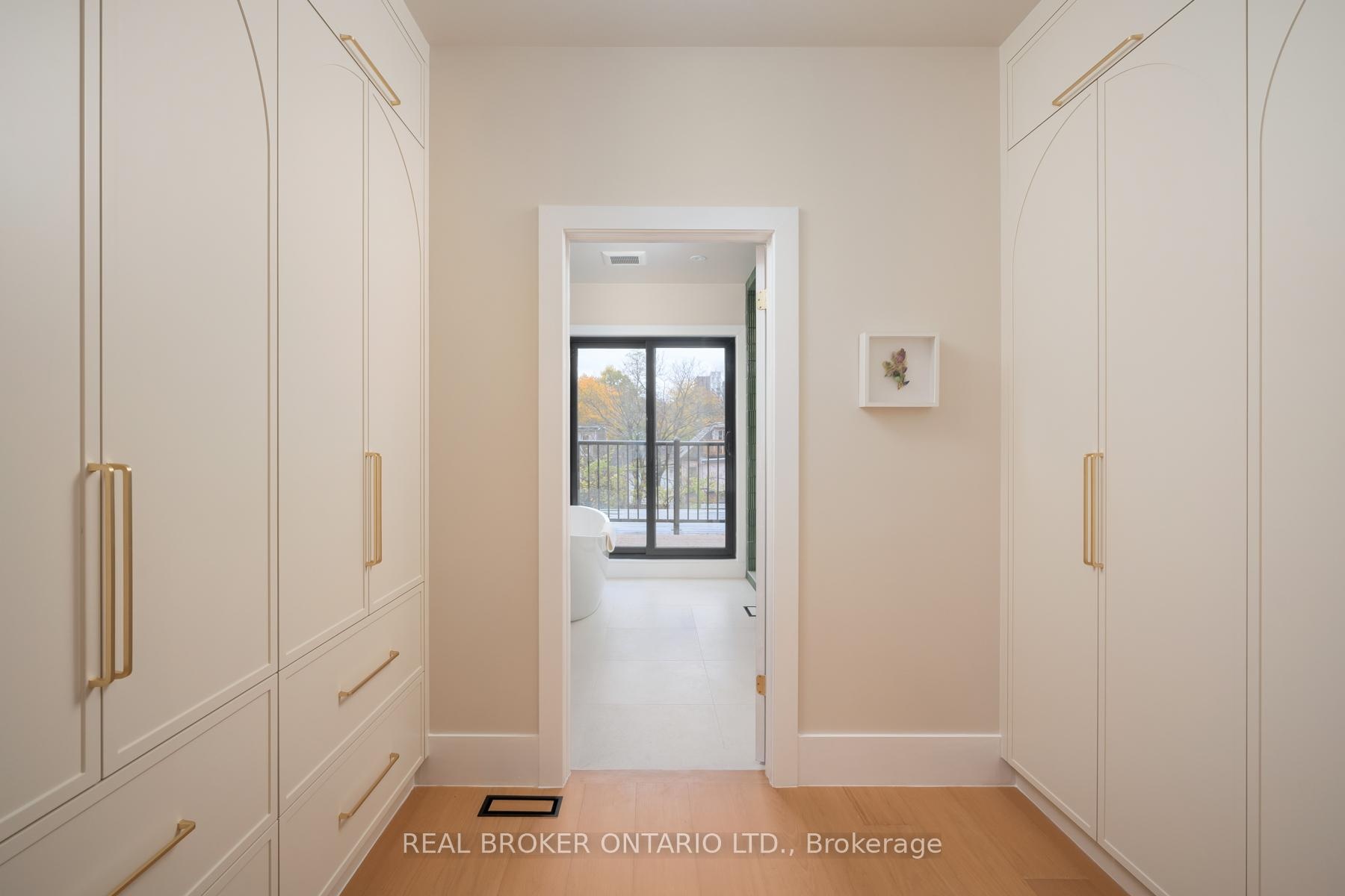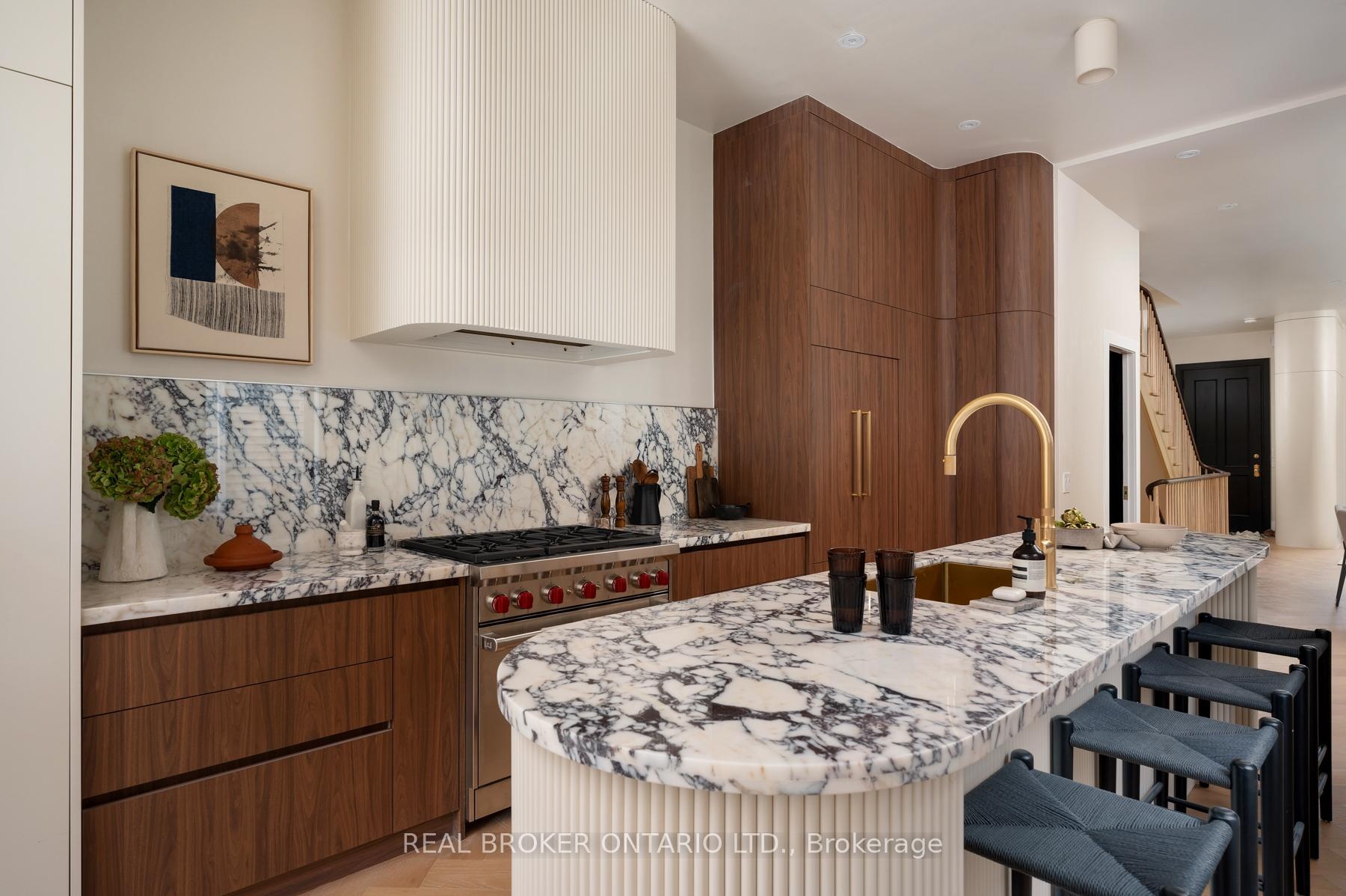 Historic Charm Meets Modern Mastery & flawless design in this 1900s home reimagined, Professionally designed & complete with a newly added third storey that turns everyday living into elevated luxury. Main Floor - Step inside to soaring 12-foot ceilings, a massive arched window flooding the home with light, and herringbone hardwood floors that set a timeless tone.A designer powder room with a floating toilet and imported custom marble vanity makes even the small details shine.The chef's kitchen blends soft architectural curves with bold masculinity - Wolf gas range, European appliances, and a marble countertop that demands attention.A custom-built family room anchors the back of the home, leading seamlessly to the deck and professionally landscaped yard. Second Floor - Space & Sophistication w Three generous bedrooms, each with custom built-in storage.The second bedroom features three stunning arched windows - an architectural nod to the home's heritage.The spa-like 5-piece bathroom feels lifted from a boutique hotel, while a style-forward laundry room adds functional flair. Third Floor - Private Primary Retreat with A full-floor sanctuary designed for serenity: his-and-her walk-through closets, built-in media and vanity desk & sitting area and a 5-piece designer ensuite with luxurious finishes.Walk out to a large private terrace with clear skyline views - the perfect escape for morning coffee or evening wine. Lower Level - Bonus Living in Finished basement with a rec room and 5th bedroom featuring a 3-piece ensuite - ideal for guests, nanny suite, or home office.Exterior Brick home with timeless curb appealand no stucco to be found. High-end Nuewal siding & Professionally landscaping front and back, Two-car laneway parking with custom garage door. Location - The Best of the Best Nestled in one of the city's most coveted pockets - steps to the subway, TTC, Yorkville, U of T, and Toronto's top shops, restaurants, and cafes.