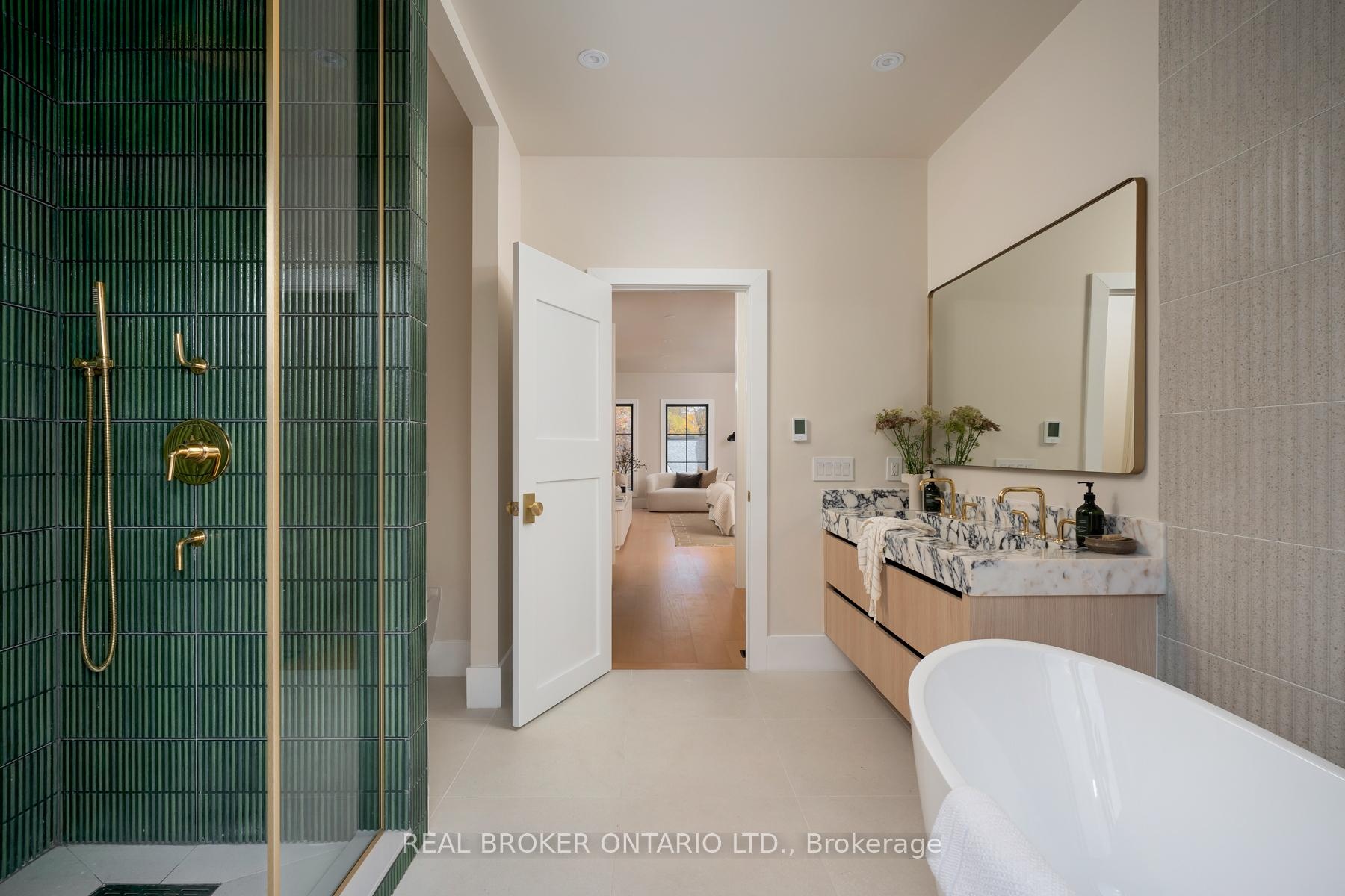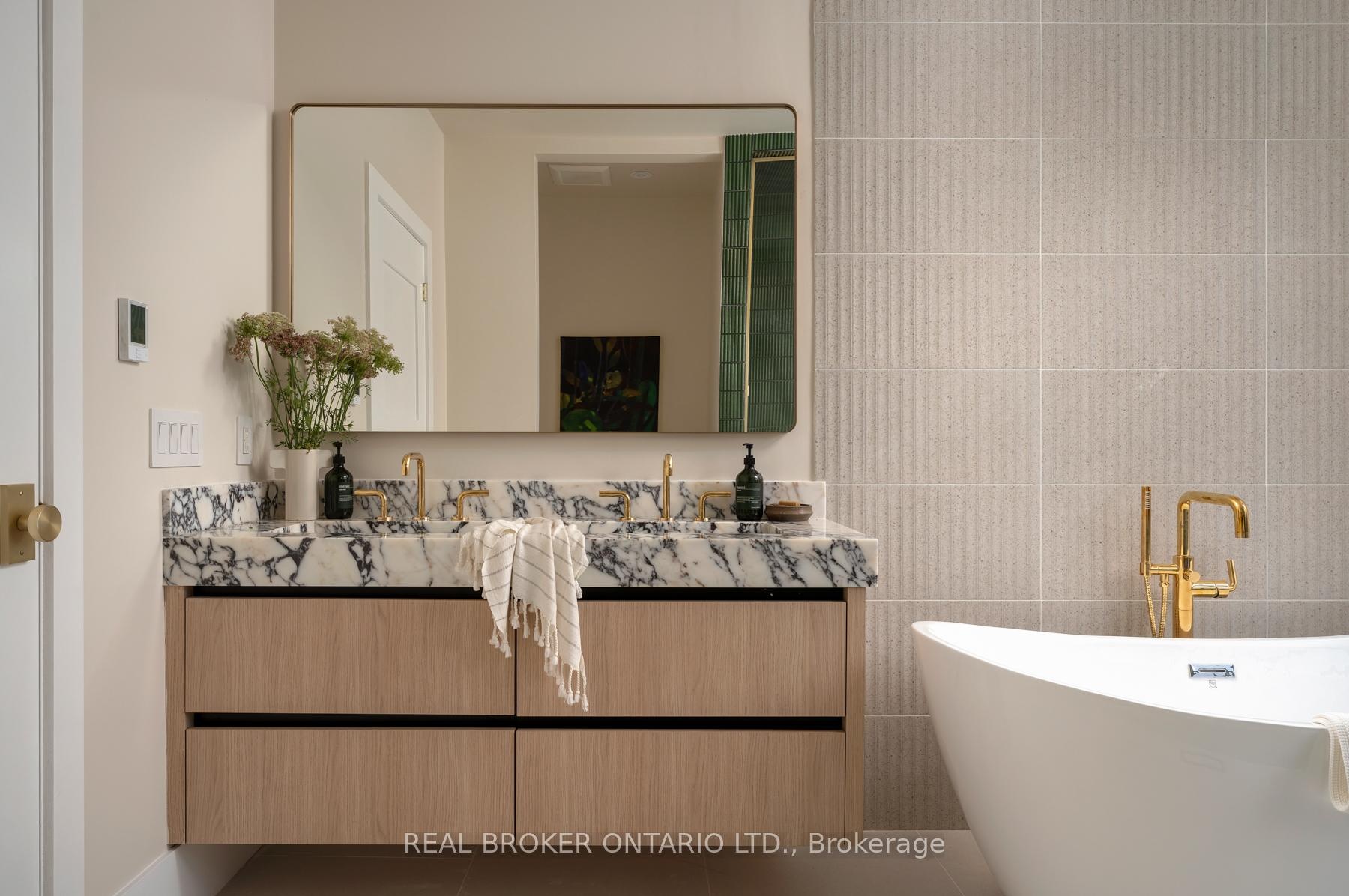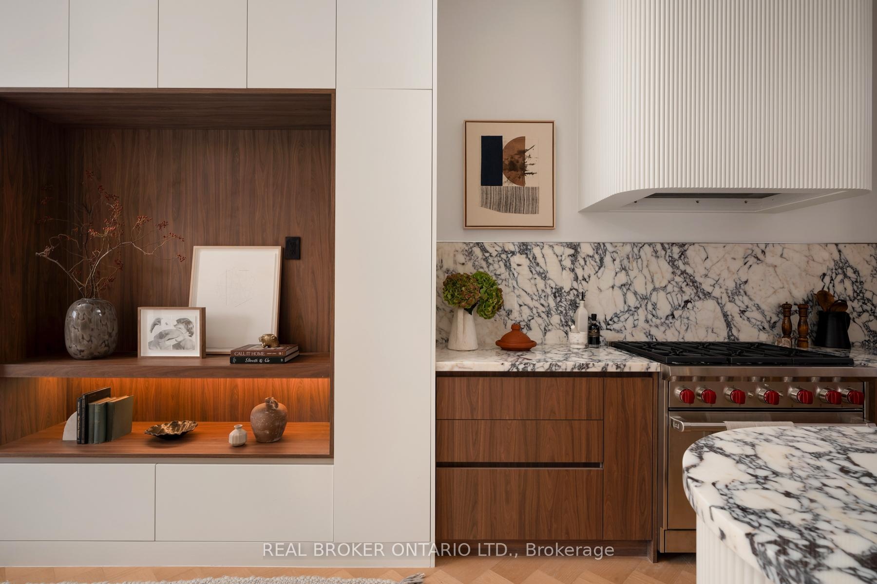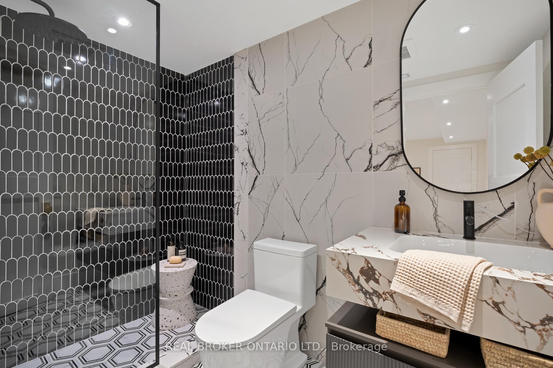 Historic Charm Meets Modern Mastery & flawless design in this 1900s home reimagined, Professionally designed & complete with a newly added third storey that turns everyday living into elevated luxury. Main Floor - Step inside to soaring 12-foot ceilings, a massive arched window flooding the home with light, and herringbone hardwood floors that set a timeless tone.A designer powder room with a floating toilet and imported custom marble vanity makes even the small details shine.The chef's kitchen blends soft architectural curves with bold masculinity - Wolf gas range, European appliances, and a marble countertop that demands attention.A custom-built family room anchors the back of the home, leading seamlessly to the deck and professionally landscaped yard. Second Floor - Space & Sophistication w Three generous bedrooms, each with custom built-in storage.The second bedroom features three stunning arched windows - an architectural nod to the home's heritage.The spa-like 5-piece bathroom feels lifted from a boutique hotel, while a style-forward laundry room adds functional flair. Third Floor - Private Primary Retreat with A full-floor sanctuary designed for serenity: his-and-her walk-through closets, built-in media and vanity desk & sitting area and a 5-piece designer ensuite with luxurious finishes.Walk out to a large private terrace with clear skyline views - the perfect escape for morning coffee or evening wine. Lower Level - Bonus Living in Finished basement with a rec room and 5th bedroom featuring a 3-piece ensuite - ideal for guests, nanny suite, or home office.Exterior Brick home with timeless curb appealand no stucco to be found. High-end Nuewal siding & Professionally landscaping front and back, Two-car laneway parking with custom garage door. Location - The Best of the Best Nestled in one of the city's most coveted pockets - steps to the subway, TTC, Yorkville, U of T, and Toronto's top shops, restaurants, and cafes.