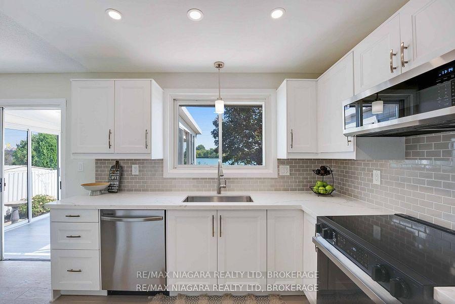Welcome to 628 Bunting Road, in St. Catharines. This breathtaking sidesplit home is a rare gem, ideally situated just steps from the Welland Canal with serene water views right from your backyard. Homes like this don't come on the market often! Beautifully renovated from top to bottom with high-quality finishes, this 3+1 bedroom, 1+1 bathroom home offers modern living in a sought-after neighbourhood. The spacious driveway accommodates up to 4 vehicles, perfect for families or guests. Step inside and be welcomed by a bright and inviting living room, featuring a large front-facing window. The open-concept dining area flows seamlessly into the four-season sunroom ideal for relaxing year-round. The kitchen is a showstopper, complete with brand-new quartz countertops, premium stainless steel appliances, and a built-in microwave/stove fan combo. Upstairs, you'll find three generously sized bedrooms with ample closet space and large windows that flood the space with natural light. A stunning 3-piece bathroom features elegant marble shower tiles. The lower level boasts a cozy family room with a fireplace and above-grade windows, along with a massive additional bedroom perfect for guests or a home office. The basement level is spacious and versatile, offering great potential for a second kitchen or in-law suite. Outside, the backyard is your own private oasis. Enjoy a brand-new deck overlooking the canal, fully fenced and beautifully landscaped with plenty of space for kids or pets to play. Don't miss this incredible opportunity to own a turnkey family home in one of St. Catharines' most desirable neighbourhood!