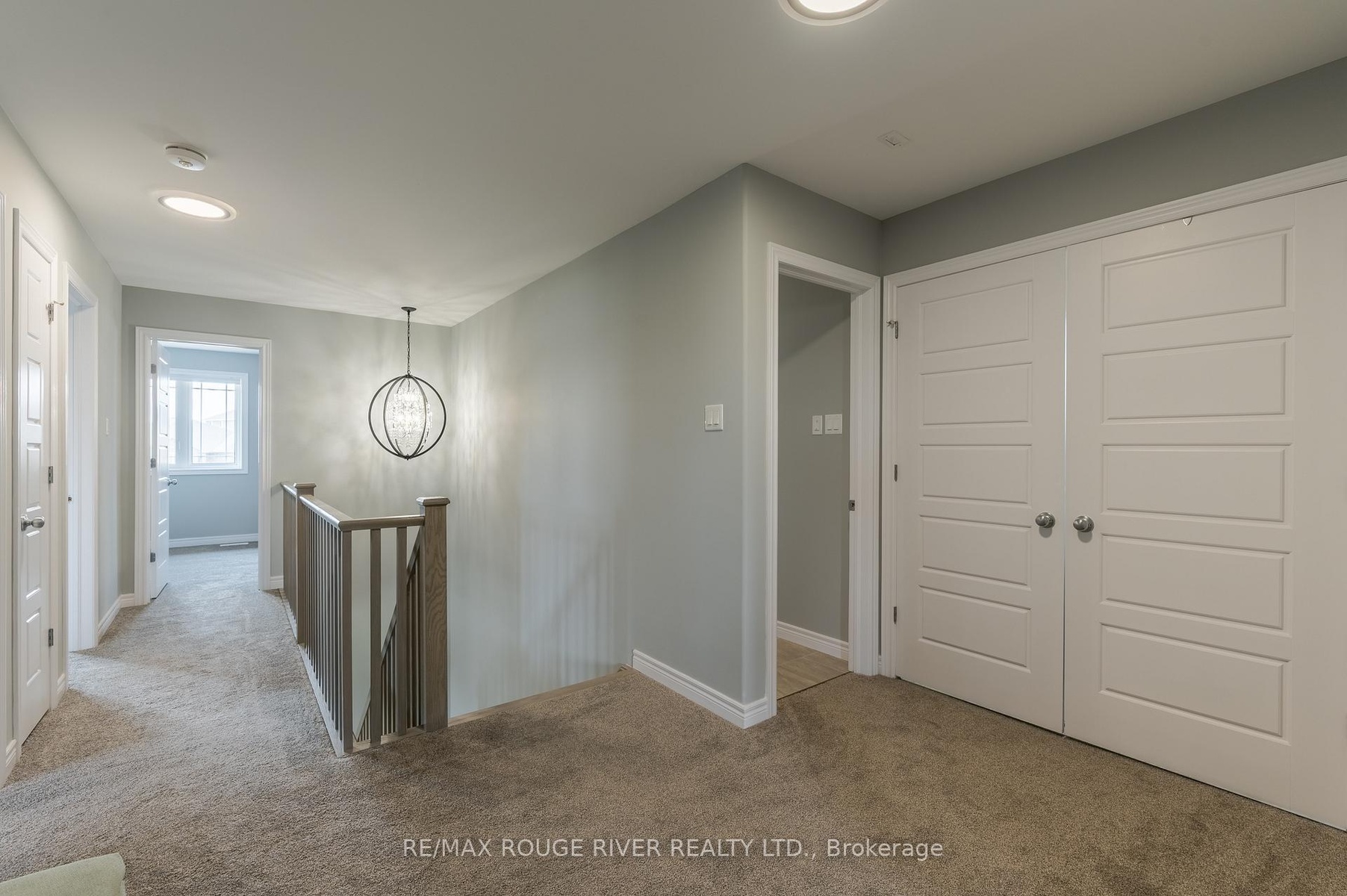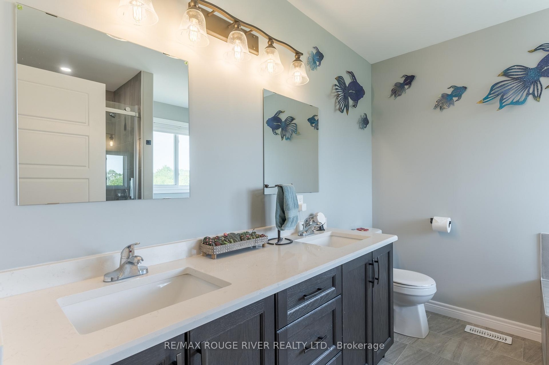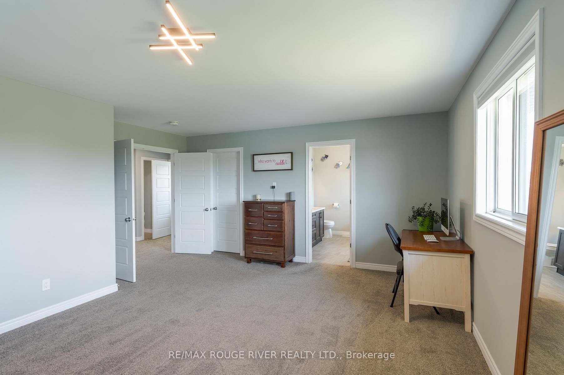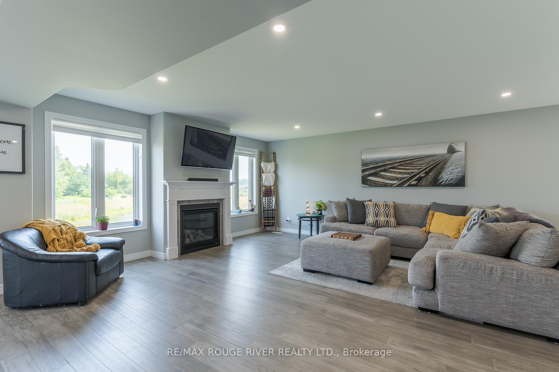 Discover this 2022 build by Expert Craftsmanship by Peterborough Homes, positioned at the end of a cul-de-sac, on an oversize lot, offering added privacy and serene views backing onto a pond. This home is a spacious two-storey all-brick home, featuring four bedrooms, three bathrooms, and a 2-car garage. This home stands out with over $73,000 in builder upgrades, which include upgrade for an open floor plan on main floor, gas fireplace, quartz countertops, a butler's pantry off the kitchen, smart appliances, engineered hardwood flooring and stairs, pot lighting throughout the main floor, a master ensuite with tiled shower and tub, an asphalt driveway, and a flagstone walkway. The main floor features a spacious open-concept living, dining & kitchen layout, a large kitchen island with built-in storage, a walk-out from the kitchen, and a butler's pantry with custom cabinetry & space for a bar fridge and 2nd fridge or freezer, making this kitchen really stand out. A half bath & mudroom finish off the main floor. Upstairs, you will find a large master suite with a walk-in closet, upgraded 5-piece ensuite, three additional bedrooms, laundry room, and another 4-piece bath. The basement offers great potential, which is prepped to be finished and offers oversized egress windows, allowing natural light to pour in, tall ceilings, and a roughed-in area for an additional bathroom. You don't want to miss out on this exceptional property in this up-and-coming neighborhood in Norwood, which combines charming rural life with natural beauty and a community-centered atmosphere. It's ideal for those seeking tranquility, highlighted by scenic landscapes, outdoor recreation. Surrounded by rolling hills, lush forests, and peaceful waterways, Norwood provides perfect settings for hiking, biking, and other outdoor activities.