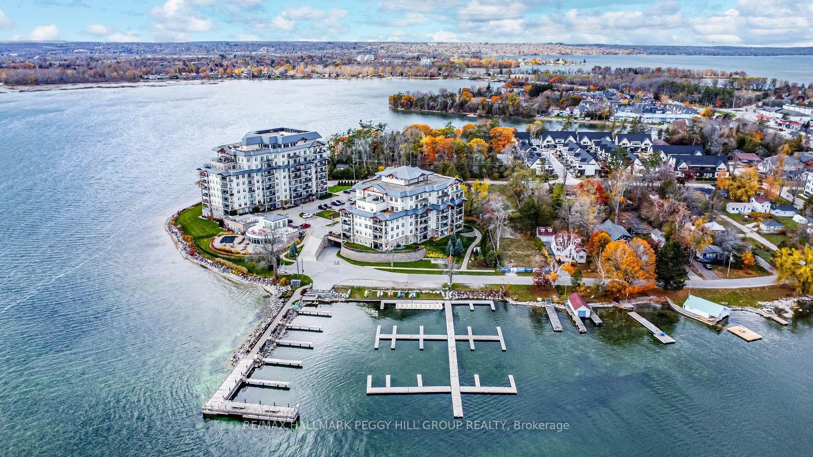 EXPERIENCE LUXURY LAKEFRONT LIVING AT THIS STUNNING CONDO FEATURING A LARGE BALCONY & HIGH-END FINISHES! Welcome to 80 Orchard Point Road #604, a stunning waterfront condo offering breathtaking views of Lake Simcoe! Step inside this sun-drenched, open-concept space where every detail exudes sophistication, from the elegant crown moulding to the beautiful flooring and upscale finishes throughout. The modern kitchen is a culinary dream, featuring sleek white cabinetry, a tile backsplash, a breakfast bar, and top-of-the-line built-in appliances, including a double wall oven, microwave, and cooktop. The expansive living room boasts a cozy fireplace and seamless access to a large balcony, perfect for taking in the spectacular lake vistas. With two spacious bedrooms each with closets and two full bathrooms, including a primary bedroom with a 4-piece ensuite, this home is designed for both comfort and luxury. This well-maintained building has outstanding amenities that elevate your lifestyle including an infinity pool, hot tub, rooftop terrace, fitness centre, and media room all at your fingertips. Plus, with in-suite laundry and an included underground parking space, convenience is assured. Located minutes from downtown Orillia, you'll enjoy easy access to boutique shopping, fantastic dining, and cultural venues, as well as nearby parks, beaches, and the Lightfoot Trail. This condo is the ultimate choice for active adults seeking low-maintenance living in a luxurious, lakefront setting! Don't miss this rare opportunity to live your waterfront dream!