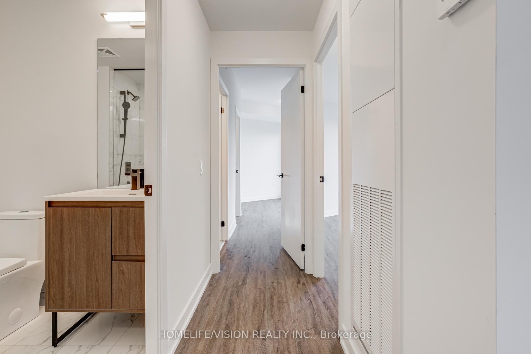 Elevated living at Crosstown by Aspen Ridge- Brand New Luxury Residence. Experience refined urban living in this brand new 2 bedroom, 2 bathroom residence with 9-foot ceilings and a sophisticated open-concept design. Every detail has been carefully crafted for comfort and elegance. The primary suite offers a walk-in closet and spa-inspired ensuite, while the chef's kitchen features premium, brand new appliances, seamlessly blending style and functions. Floor-to-ceiling windows with remotely controlled blinds and a private balcony overlook the beautifully landscaped courtyard, bringing natural light and serenity into your space. Step outside and enjoy direct access to scenic walking and biking trails, perfect for an active and balanced lifestyle. Residents enjoy exclusive access to world-class amenities, including 24/7 concierge & security, a cutting-edge fitness centre, rooftop terrace, elegant party room, and co-working lounge designed for today's professionals. Located in one of Toronto's most sought-after master-planned communities, Crosstown offers unmatched convenience with proximity to CF Shops at Don Mills, the Aga Khan Museum, Sunnybrook Hospital, Edward Garden, Schools, Wilket Creek Park, and the upcoming Crosstown LRT, ensuring seamless connectivity across the city. Includes 1 locker + 1 parking space