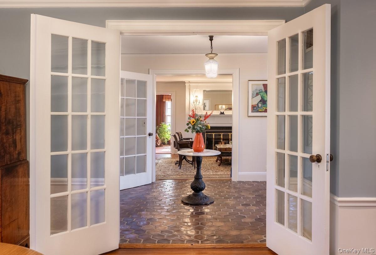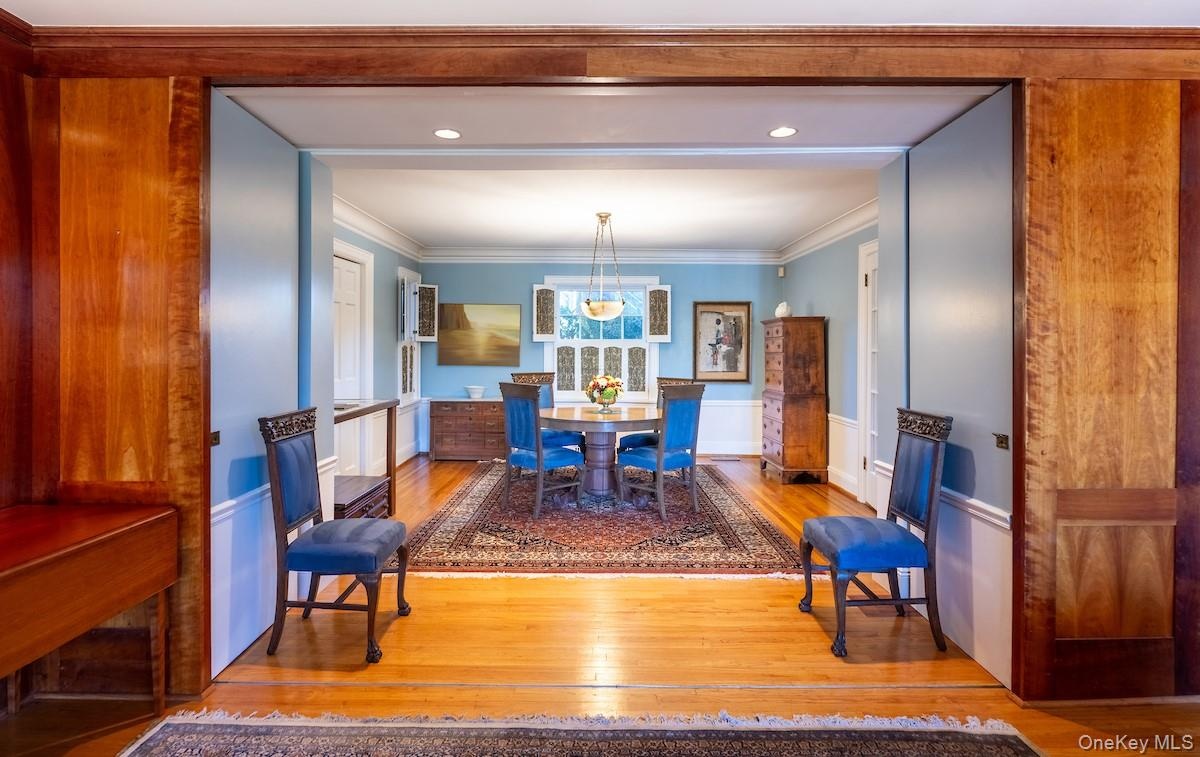TIMELESS ELEGANCE MEETS MODERN LUXURY in this Magical 1927 property situated on nearly a full acre in sought-after Gedney Farms. This exceptional 5-bedroom, 4.5-bath home offers many luxury amenities, including a sauna, jacuzzi, and stunning pool surrounded by manicured gardens, specimen trees, brick paths, and stone fountains. The grand facade showcases four majestic two-story white columns against a brick facade. Inside, spacious light-filled rooms balance grandeur with intimate comfort. The spectacular 1993 addition (featured in Remodeling Magazine at the time) adds a "wow" factor with its dramatic two-story library with a cupola open below to an Arts and Crafts-inspired Family Room, complete with wooden built-ins, interior columns, and a corner gas fireplace that also faces the kitchen. Hand-selected Portuguese tiles add European sophistication to the large skylit kitchen, enhanced by a charming circular breakfast nook, creating an inviting space for morning coffee or casual dining. The architectural uniqueness of this home again reveals itself in the extraordinary circular primary suite—a truly one-of-a-kind design - with private access to the pack yard. The luxurious Primary Bath features a rejuvenating sauna and jacuzzi tub, transforming daily routines into spa-like experiences. Ample closets throughout ensure ample storage. The lower level of the home also includes a tiled entry foyer with French doors, a formal Dining Room with hidden pocket walls, a light-filled office with a gas fireplace, and spacious living room with gas fireplace. Traveling up the center stairwell, enjoy a stunning view of the backyard from a set of stately landing windows. Upstairs features four additional bedrooms with generous closets and abundant natural light, a "reading room", and the dynamic library (book-lovers' hearts might skip a beat upon entry!) showcases four walls of floor-to-ceiling bookshelves rendered in warm wood tones, topped by a cupola --- all open below to the Family Room. The meticulously maintained grounds have evolved over decades of love and care, featuring stone patios, fountains, sculptures, wooden Monet-Style bridges, and brick walkways. The pool house, attached to the garage, has a kitchenette, two changing rooms, and a half bath - - - Plus an outdoor heated shower with plenty of privacy. Enjoy ample parking with a three-car garage, and additional parking spaces in front of the garage and within the front circular driveway. The GEDNEY FARMS NEIGHBORHOOD is quiet and serene with tree-lined streets and a country atmosphere, yet this home is just minutes from downtown White Plains, award-winning schools, Westchester Hills Golf Club, upscale shopping, and fine dining. Metro-North express service reaches Manhattan in 45 minutes, and the new owners will find major highways within close proximity. With recent upgrades, including interior/exterior painting, new pool house sliding door, and new HVAC system (2025), this spectacular home is MOVE IN READY for the next owner, just bring your furniture and lounging robe! Additional home features include a full-house backup generator, security system, hard-wired smoke detectors, grounds sprinkler system, and original solid wood floors and ceramic tiles throughout. With its rare combination of historic charm, modern comfort, and premier setting, this residence is more than a home—it’s a piece of Gedney Farms history. Let your next chapter begin at 9 Oxford Road! ***HIGHEST, BEST, AND FINAL DUE BY WEDNESDAY, NOVEMBER 19th AT 3 PM*** 11/20/25: A/O