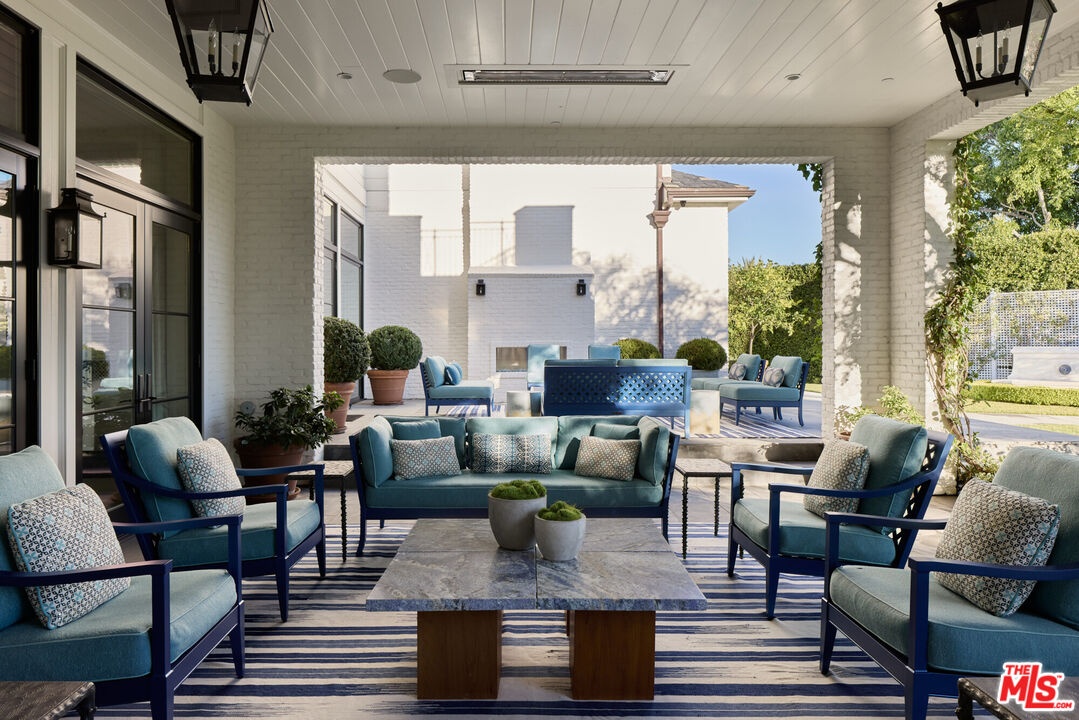 A timeless traditional estate gracefully sited on one of Holmby Hills' most coveted streets. Behind private gates, this elegant residence blends classic architecture with interiors by New York based designer Markham Roberts. A dramatic two-story foyer sets the tone, leading to gracious formal rooms rich with detail, from the lacquered library and sophisticated billiards room to sunlit living spaces that open seamlessly to expansive grounds, a resort-style pool, and a tennis court. Thoughtful craftsmanship, custom millwork, marble thresholds, and designer lighting create a luxurious yet welcoming atmosphere throughout. Lush mature landscaping, a pool pavilion, and generous outdoor lounge and dining terraces provide a serene retreat for relaxation and entertaining. The primary suite is a private sanctuary unto itself, complete with an intimate office, safe room, dual spa-inspired baths, generous custom closets, and a beautifully integrated built-in bar/kitchenette. A backdrop of golden hills and twinkling city lights elevates everyday living. Additional amenities include a fitness studio spa, wine cellar, guest house, media room, elevator, ample bedrooms for staff and a 4-car garage. A rare offering of scale, privacy, and sophistication in one of Los Angeles' most distinguished neighborhoods. Property available fully furnished for $55M. Approx. SF Breakdown: Main house 13,556 sf, Guest House 2,553 sf, Pool House 196 sf