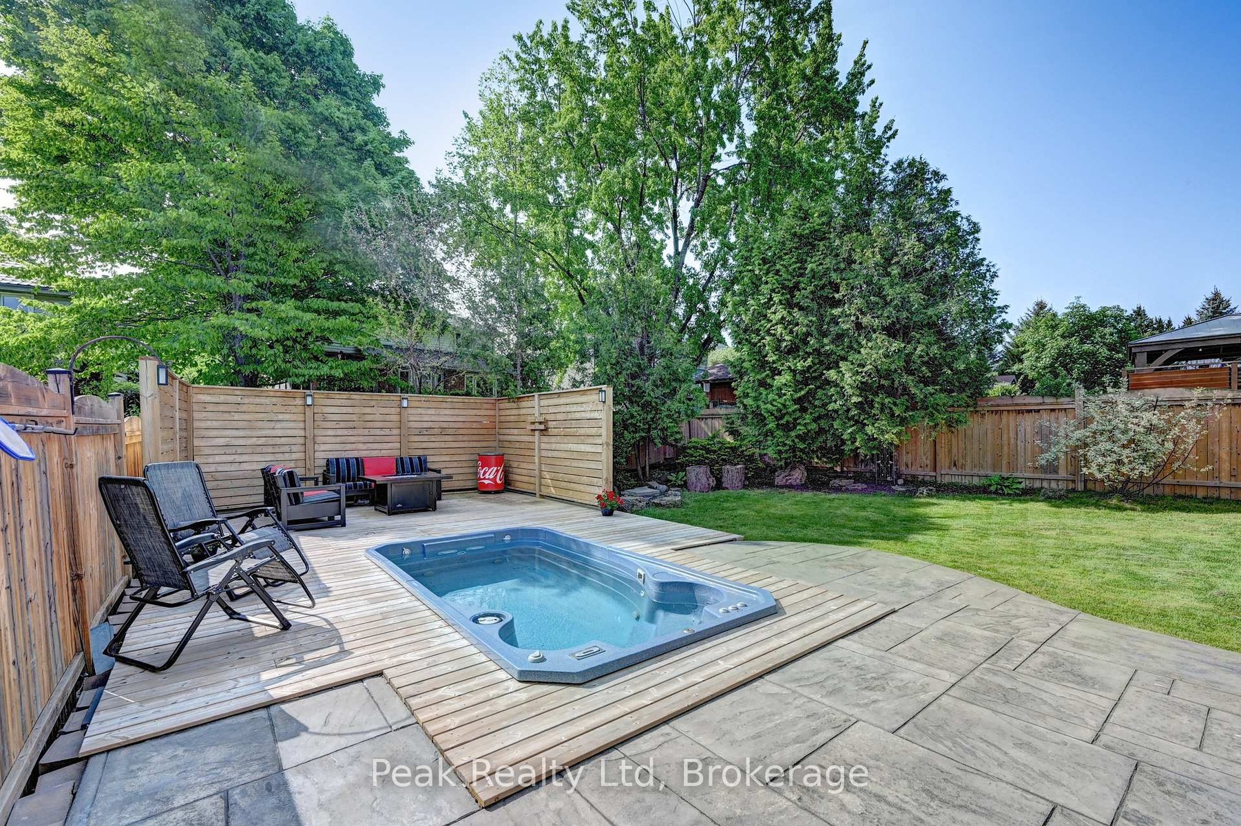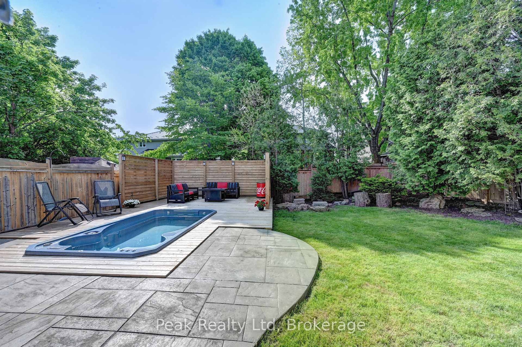 Beautifully updated home offering exceptional curb appeal with a neutral cream brick exterior, modern front door, concrete driveway, and double car garage. Inside, you'll find a spacious layout designed for both everyday living and entertaining. The heart of the home is the chef-inspired kitchen, fully upgraded in 2024, featuring a side-by-side refrigerator and freezer, six-burner gas stove with pot filler, built-in microwave, quartz countertops and backsplash. The main floor has beautiful engineered hardwood and ceramic flooring throughout, the striking wood staircase with glass railing, also updated in 2024, sets a modern tone. Convenient main floor laundry with a gas dryer adds everyday functionality. Upstairs, retreat to the oversized primary suite complete with a walk-in closet and spacious ensuite bath. Generously sized bedrooms and bathrooms provide comfort for the whole family. The fully finished basement extends your living space with endless possibilities for a future home theatre, gym, office, or play area. Step outside to your private backyard oasis! Enjoy a stamped concrete patio, a deck with privacy wall (2023), a hydro pool, gas line for barbecue and future fire pit, and a fully fenced yard (2020). The roof was replaced in 2019, offering peace of mind for years to come. This home blends timeless charm with modern updates-truly a must see!