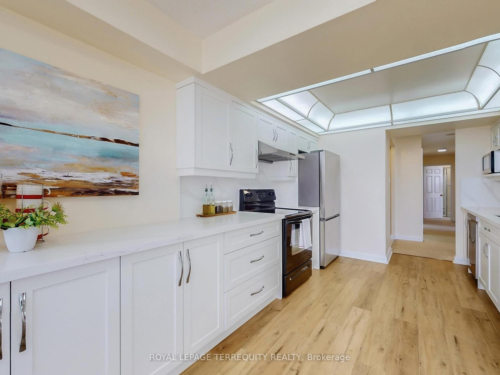 *************************HIGHLIGHTS***************************************** CORNER UNIT-large apartment, with 24-hour security guards and gatehouse surveillance. WRAP-AROUND windows in every room providing ample light, perfect view of the SUNRISE/SUNSET, a view of the TORONTO CN TOWER SKYLINE, a view of FALL LEAVES/FOLIAGE and WINTER WONDERLAND view from living room. ***********************RENOVATIONS and UPGRADES ($32k+/-)**************************** KITCHEN NEWLY RENOVATED (2024 $27k)- OPENED-UP KITCHEN WITH EXTENDED COUNTERTOPS AND CABINETS, breakfast area with CN Tower Skyline view, with SOFT-CLOSE CABINETS, spice rack that pulls out for easy access and a pull-out drawer, double-sink ,new flooring, Calcutta Gold quartz countertops including backsplash. UPGRADED WASHROOMS with POTLIGHTS. **********************OTHER-PLUS******************* convenient in-suite storage unit .2 SIDE-BY-SIDE, easy exit convenient underground PARKING spots. *******************CONVENIENT LOCATION*********************** Less than 10 minutes walking distance to Bramalea City Centre Shopping Mall, Chinguacousy Park, Bramalea City Centre terminal (easy bus access for commuters), Freshco and Metro, Howden Recreation Centre, Peel Police Station, Brampton Public Library and an elementary school. Proximity to the GO station, hospitals, middle schools, high schools and major highways. *****************************AMENITIES ******************* Beautifully maintained grounds. Ample outdoor guest parking and a recycling room. Gazebo, BBQ area, and a Rock Garden with a waterfall feature. Outside Convenient Walking Trail that circles the building. Sunroom sitting area. Indoor swimming pool, hot tub, Sauna. 2 exercise rooms one is a weight-training area the other is a cardio room. Party room, Billiards Room. Squash/Racquetball court. 2 Tennis courts. Basketball Court. *********************************Come, visit, and seal-the-deal You cannot ask for more, Just Move in and Enjoy!