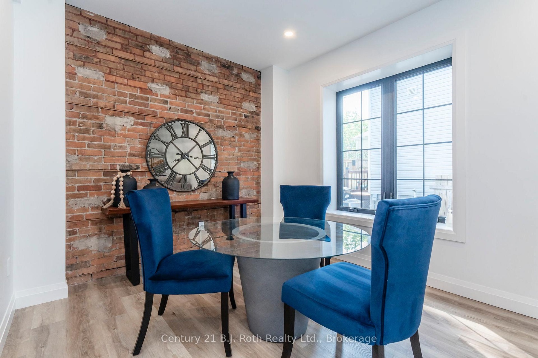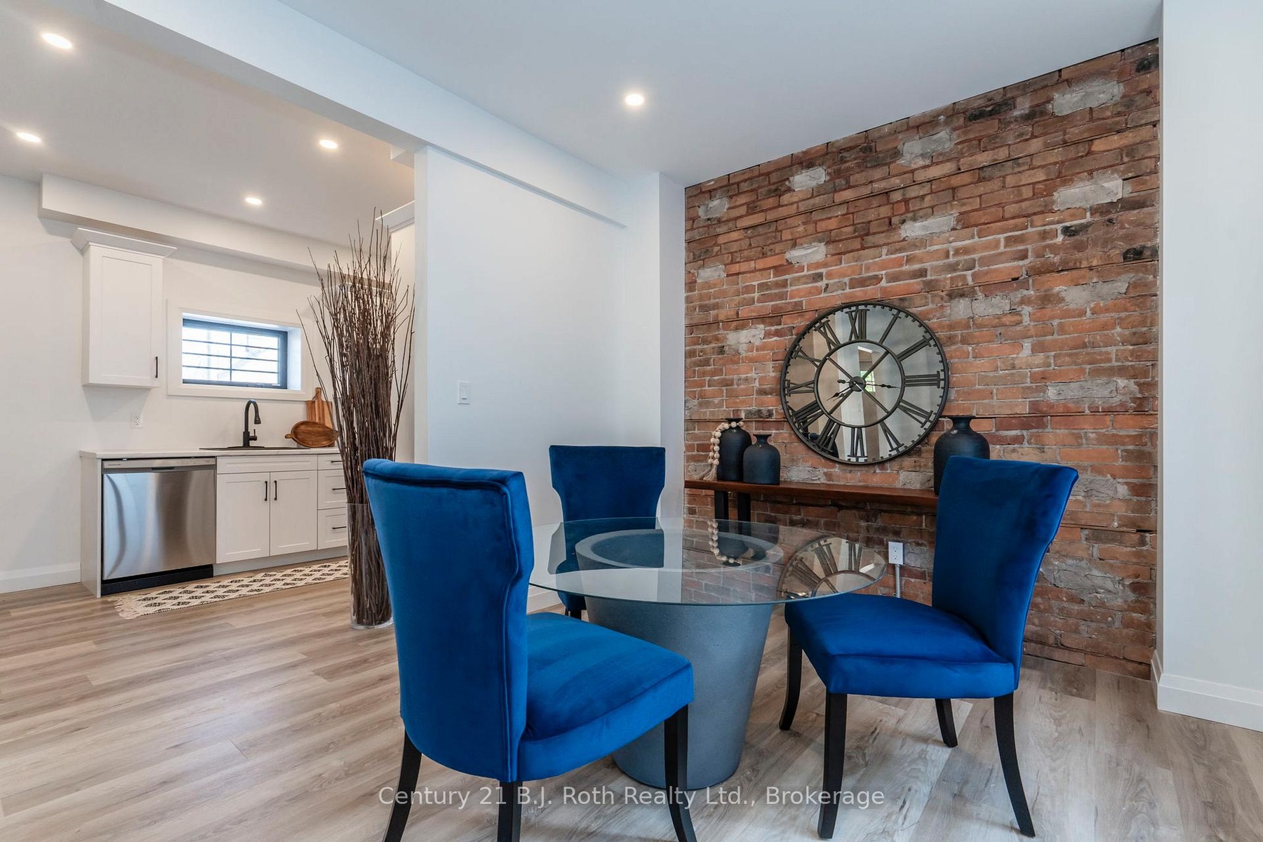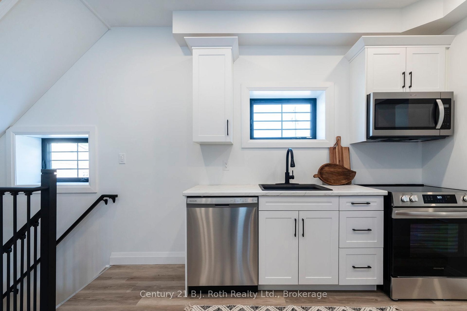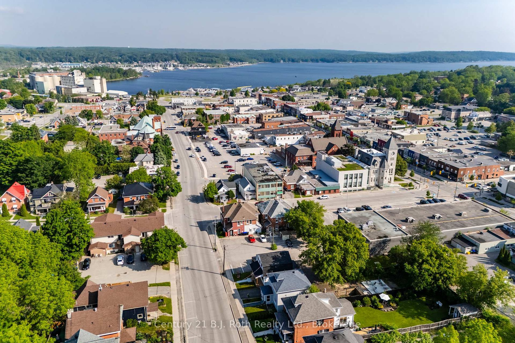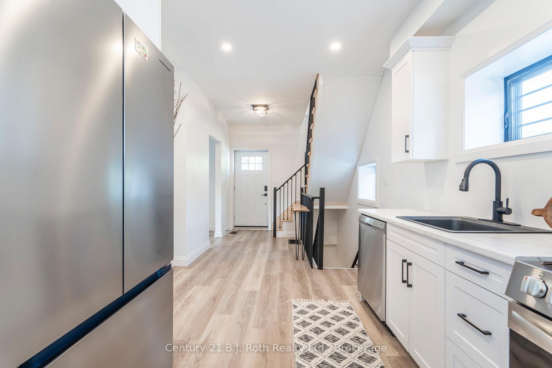 Chic Downtown Midland Retreat, located in Beautiful Georgian Bay. Fully Renovated, Zoned Commercial/Residential. Welcome to a home that truly checks all the boxes for modern living and prime location. Take a stroll to Midlands vibrant downtown core, cafés, boutiques, restaurants, waterfront and Marina. You'll be living in the heart of it all while enjoying the peace and charm of this home. Fully renovated 2-bedroom, 2-bathroom with a finished basement gem offers the perfect blend of barn-house charm and urban sophistication. 1,000 + sq.ft. of beautifully designed space. Stylish & Smart Living. Step inside to discover 9-foot ceilings, sleek black-framed windows, and a stunning exposed brick feature wall that anchors the home with warmth and character. Black barn doors and modern black hardware throughout the kitchen and baths complete the Barnhouse aesthetic. Bright, Airy, & Inviting. Natural light fills the open-concept living and dining area, creating a vibrant atmosphere that feels as good as it looks. Whether you're enjoying a quiet morning or hosting friends this summer, the layout is both functional and stylish. The main-floor laundry and all-new appliances add even more everyday convenience. Finished Basement for a home office, media room or great play-room. Turn your 115 ft deep backyard to a summer retreat. This home offers exceptional flexibility for professionals, young family or entrepreneurs looking to live and work in one dynamic space.