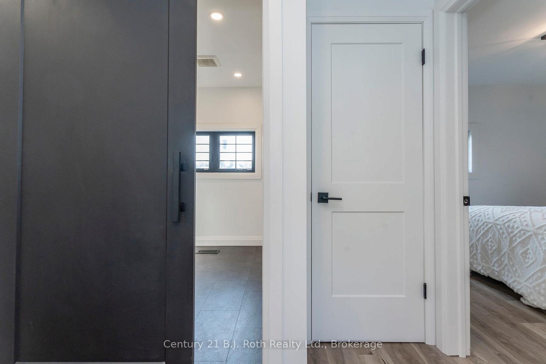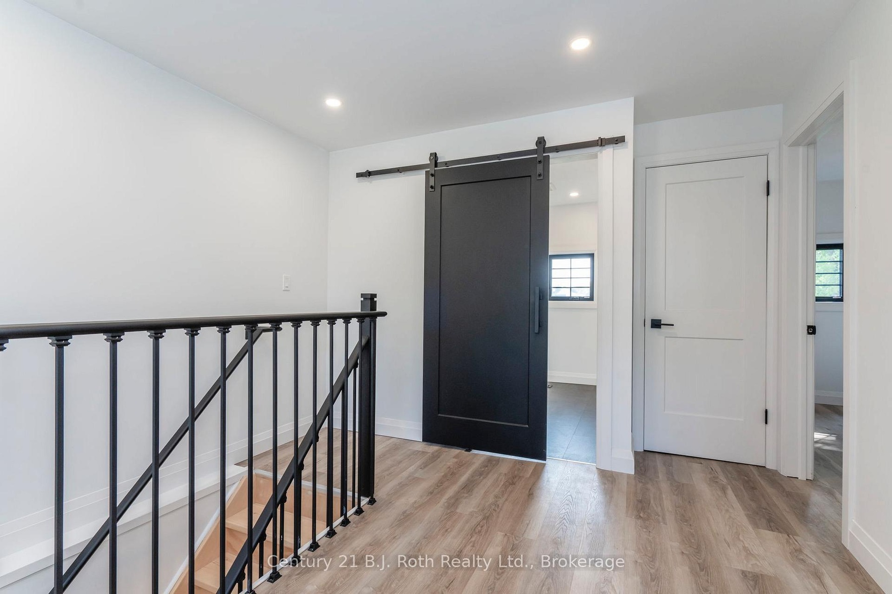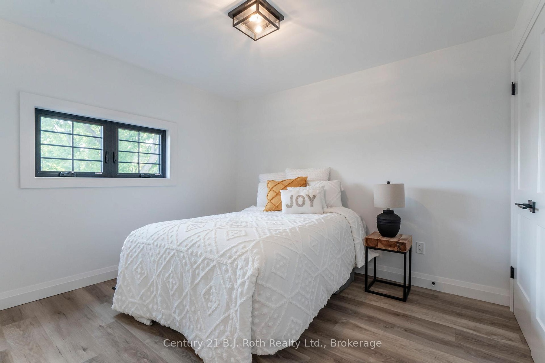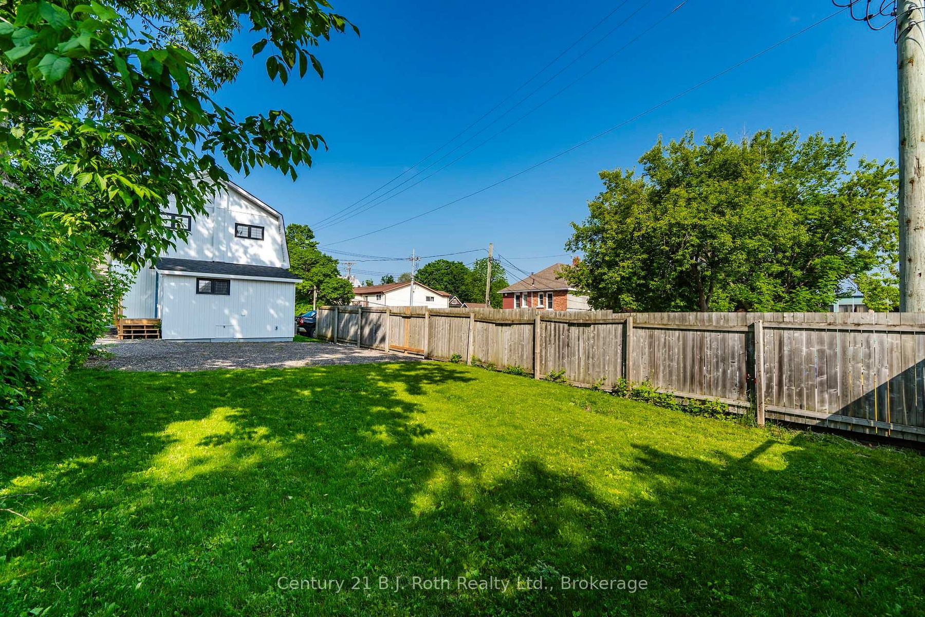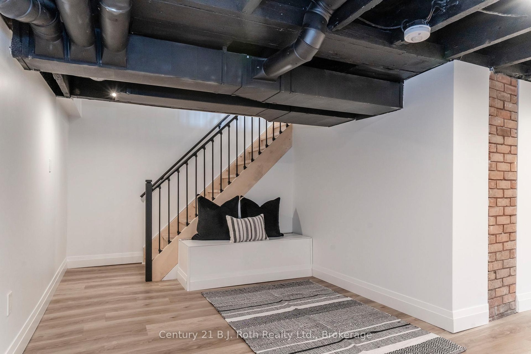 Chic Downtown Midland Retreat, located in Beautiful Georgian Bay. Fully Renovated, Zoned Commercial/Residential. Welcome to a home that truly checks all the boxes for modern living and prime location. Take a stroll to Midlands vibrant downtown core, cafés, boutiques, restaurants, waterfront and Marina. You'll be living in the heart of it all while enjoying the peace and charm of this home. Fully renovated 2-bedroom, 2-bathroom with a finished basement gem offers the perfect blend of barn-house charm and urban sophistication. 1,000 + sq.ft. of beautifully designed space. Stylish & Smart Living. Step inside to discover 9-foot ceilings, sleek black-framed windows, and a stunning exposed brick feature wall that anchors the home with warmth and character. Black barn doors and modern black hardware throughout the kitchen and baths complete the Barnhouse aesthetic. Bright, Airy, & Inviting. Natural light fills the open-concept living and dining area, creating a vibrant atmosphere that feels as good as it looks. Whether you're enjoying a quiet morning or hosting friends this summer, the layout is both functional and stylish. The main-floor laundry and all-new appliances add even more everyday convenience. Finished Basement for a home office, media room or great play-room. Turn your 115 ft deep backyard to a summer retreat. This home offers exceptional flexibility for professionals, young family or entrepreneurs looking to live and work in one dynamic space.